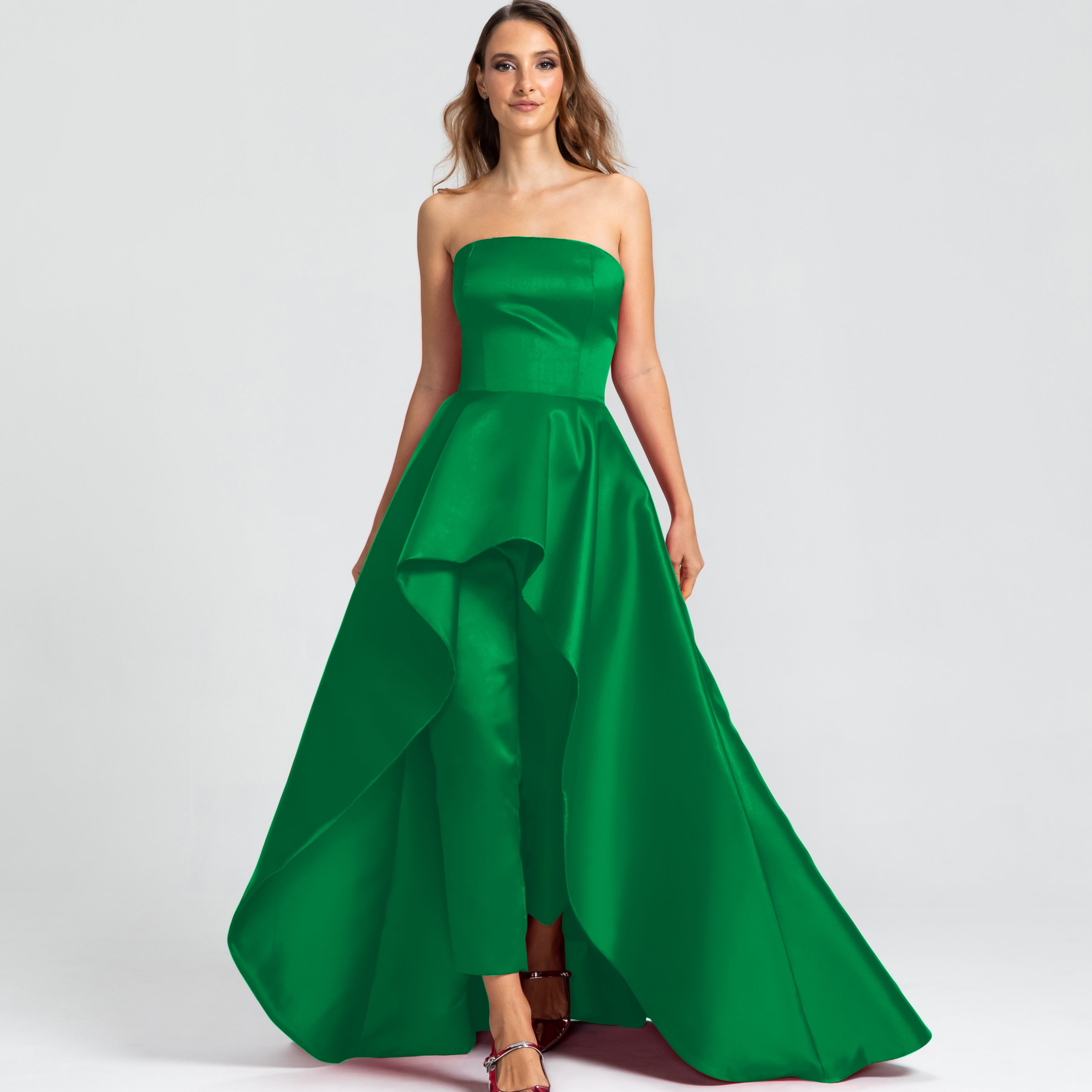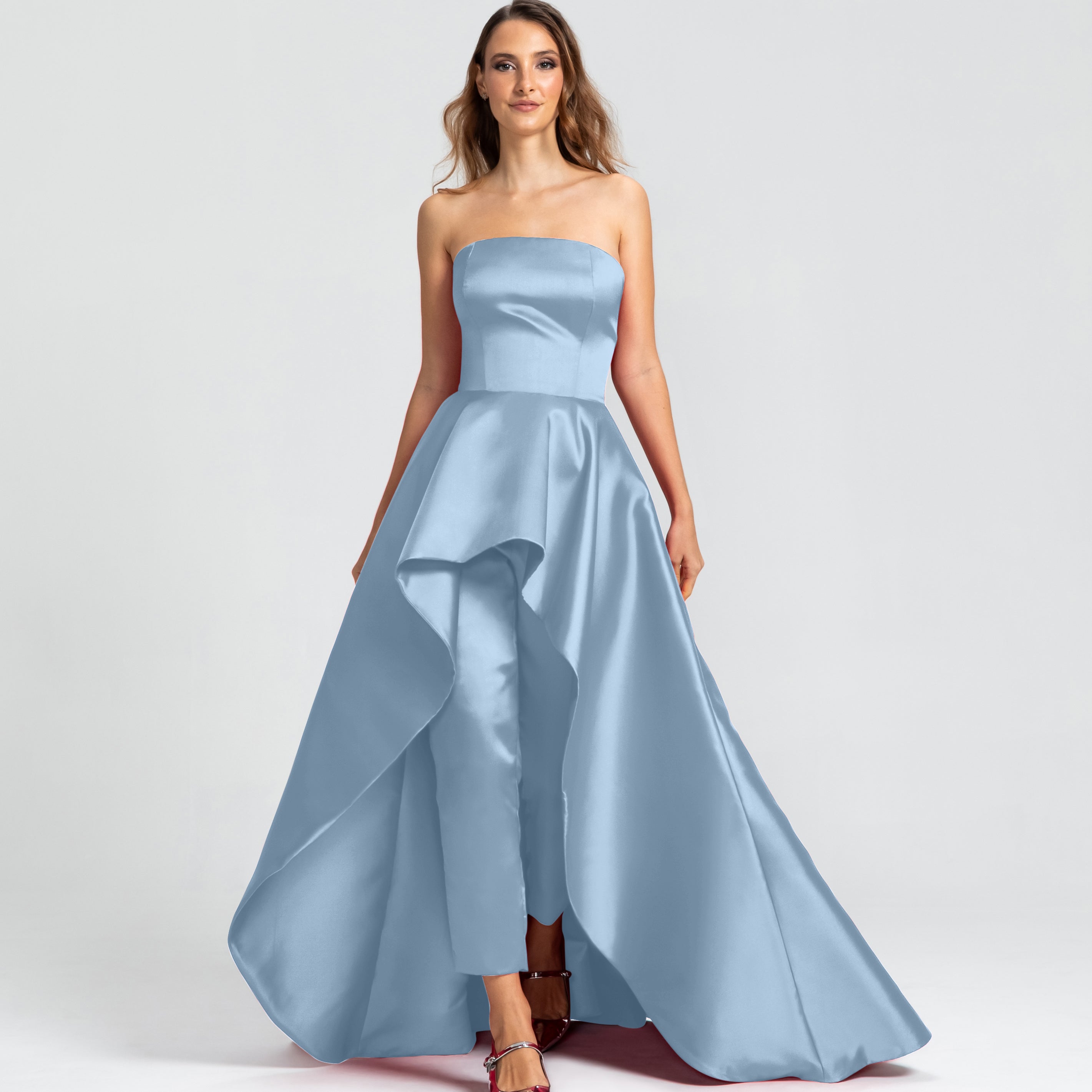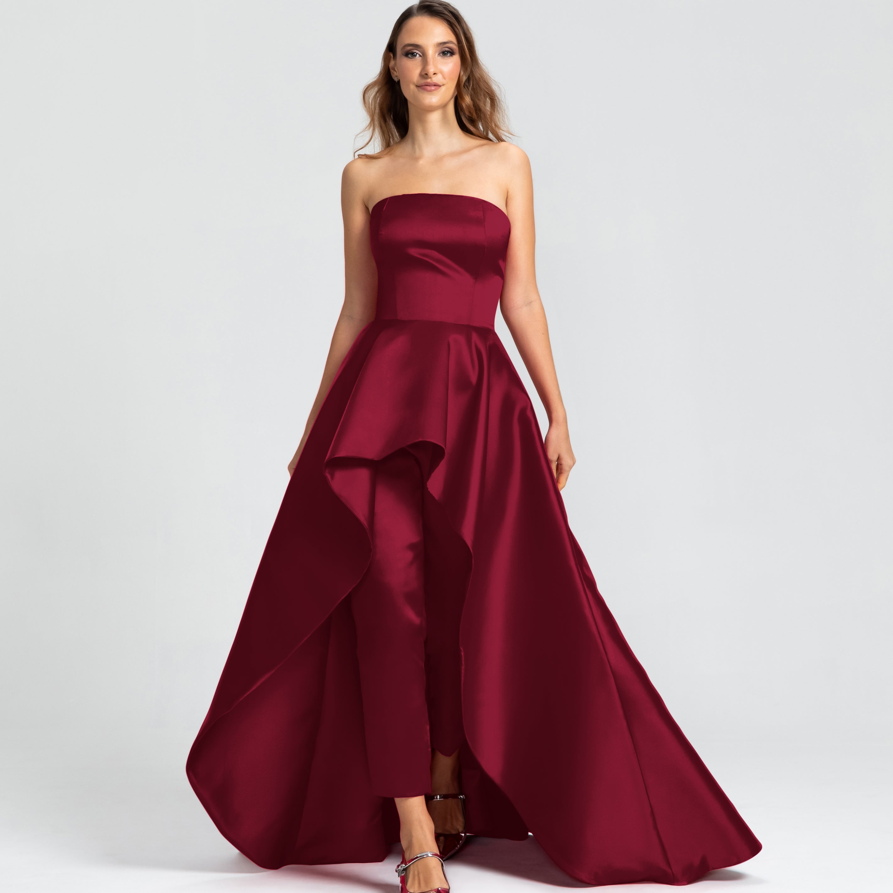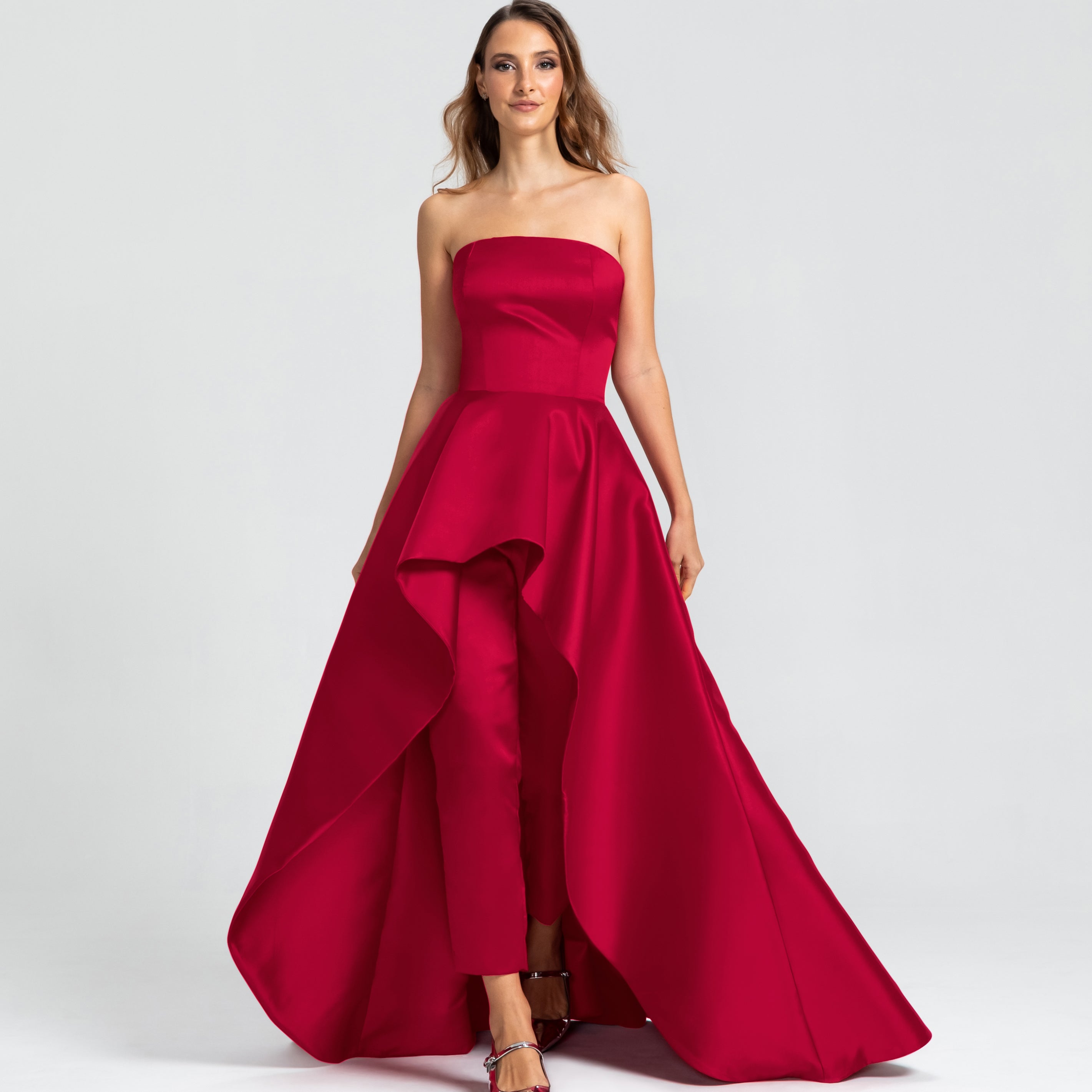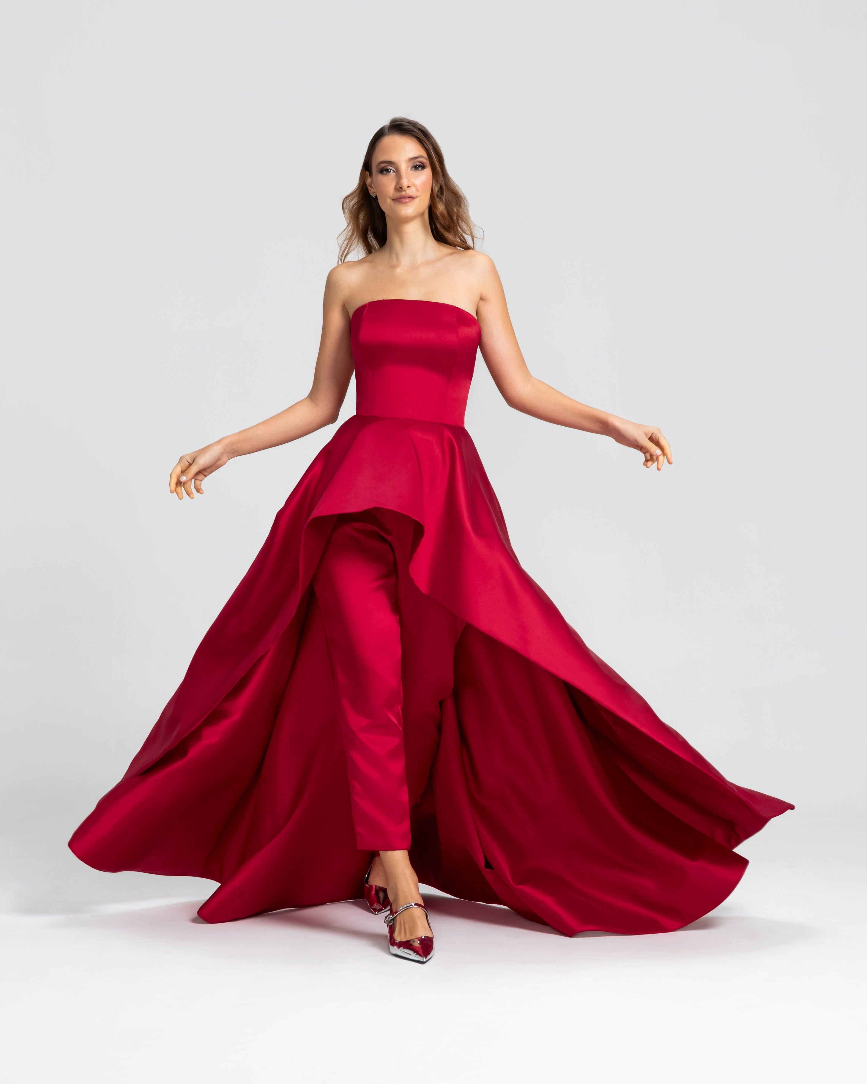 Este modelo é super irreverente! Visualmente é um vestido ou um macacão, mas sua construção é separada em duas peças. A parte de cima tem um decote tomara que caia e o corpo ajustado, a cintura marcada que realça a silhueta. Acompanhado de uma calça que aparece na parte frontal do vestido, enquanto a parte de trás se estende até o chão, oferecendo conforto e um visual surpreendente. Perfeito para quem busca ousadia e um toque fashionista sem abrir mão do bem-estar.
