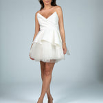 Vestido de Noiva Mini com Peplum Escultural e Tule em Pontas – REF: OD77CT