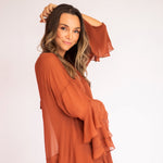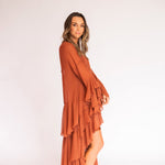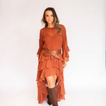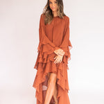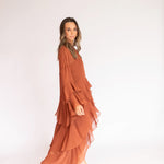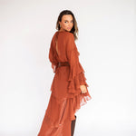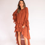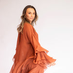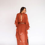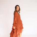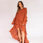 Esse vestido é diferente dos outros modelos disponíveis no site: como tem um caimento todo soltinho no corpo, trabalhamos com uma grade de tamanhos mais reduzida — P, M e G. Caso nenhuma das opções se encaixe perfeitamente nas suas medidas, também podemos customizá-lo especialmente para você.