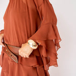 Infelizmente, não conseguimos enviar o vestido perfeitamente esticado no cabide. Mesmo com todo o cuidado na embalagem, é natural que ele chegue com alguns amassados. Por isso, caprichem na passadoria! Esse cuidado faz toda a diferença para que o vestido fique impecável.