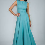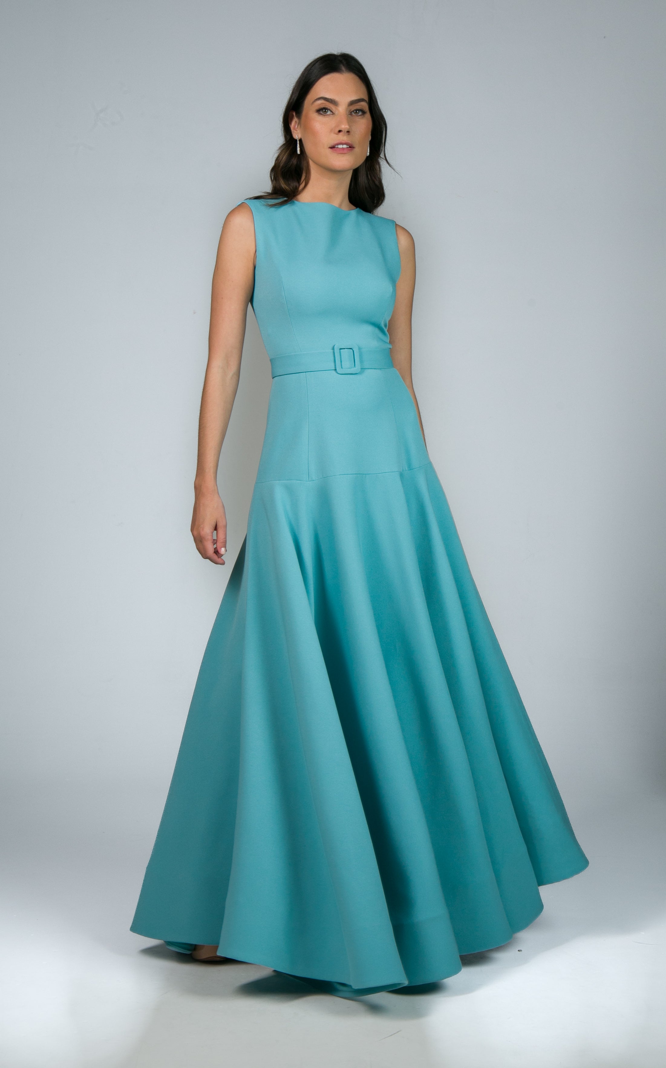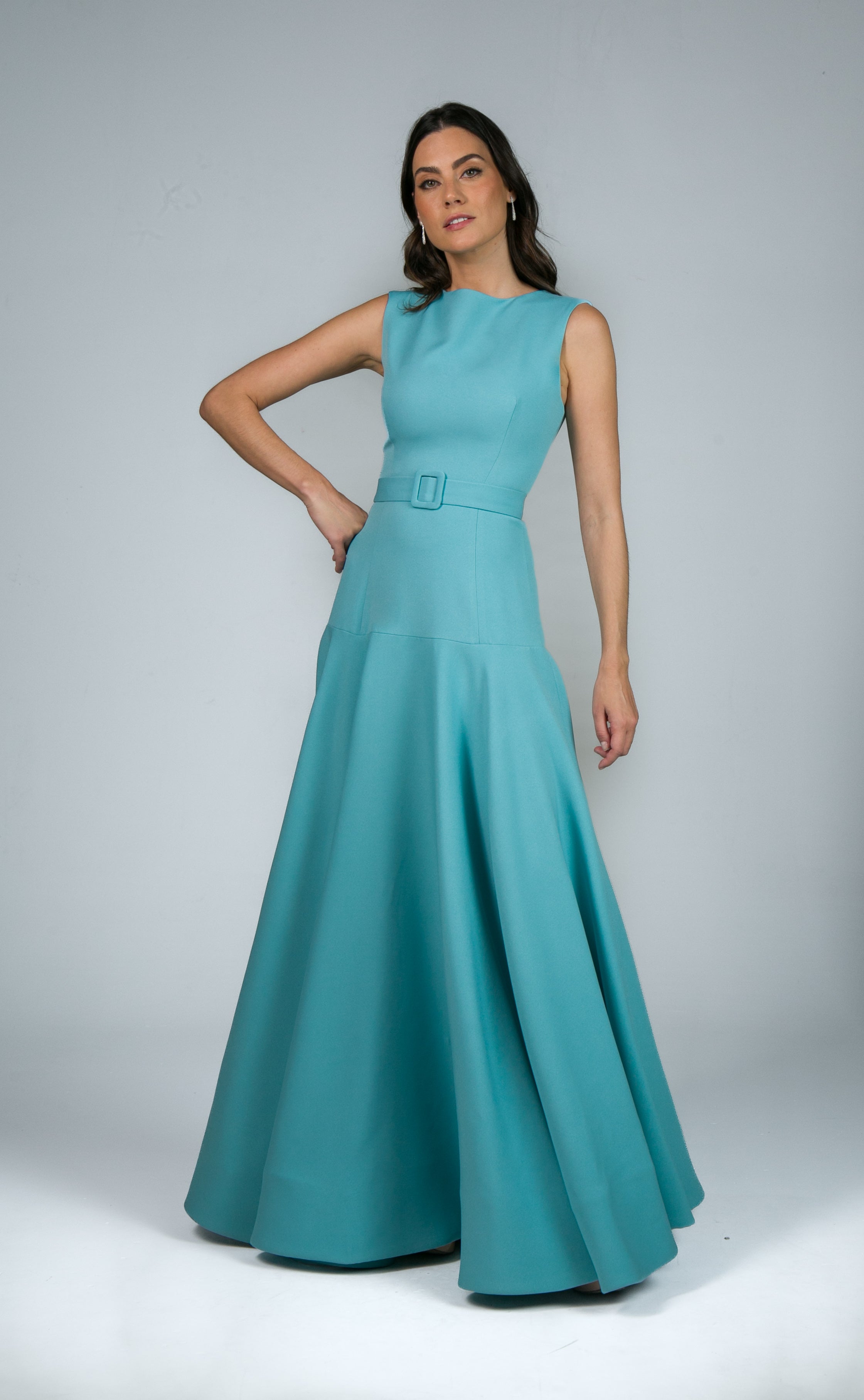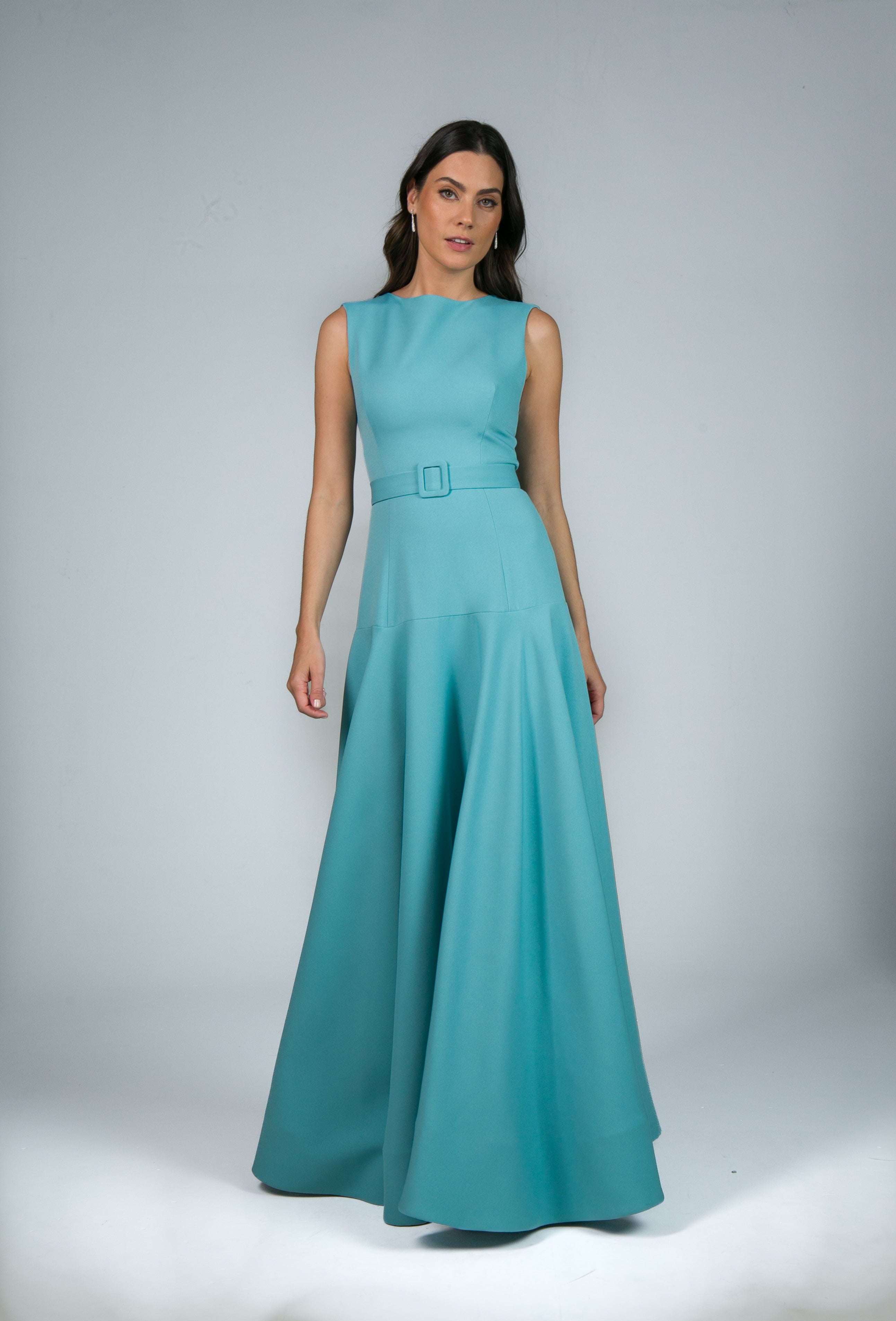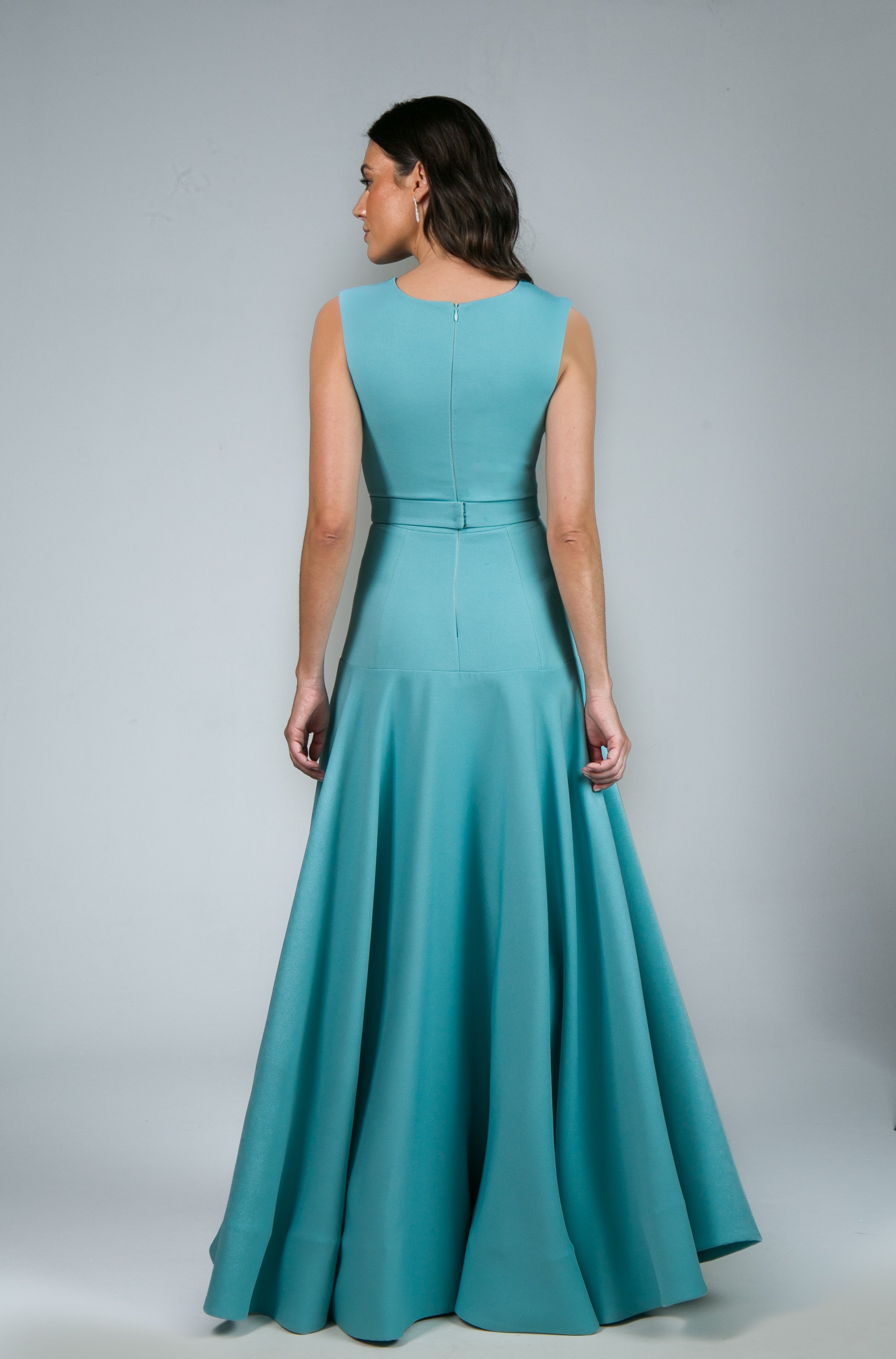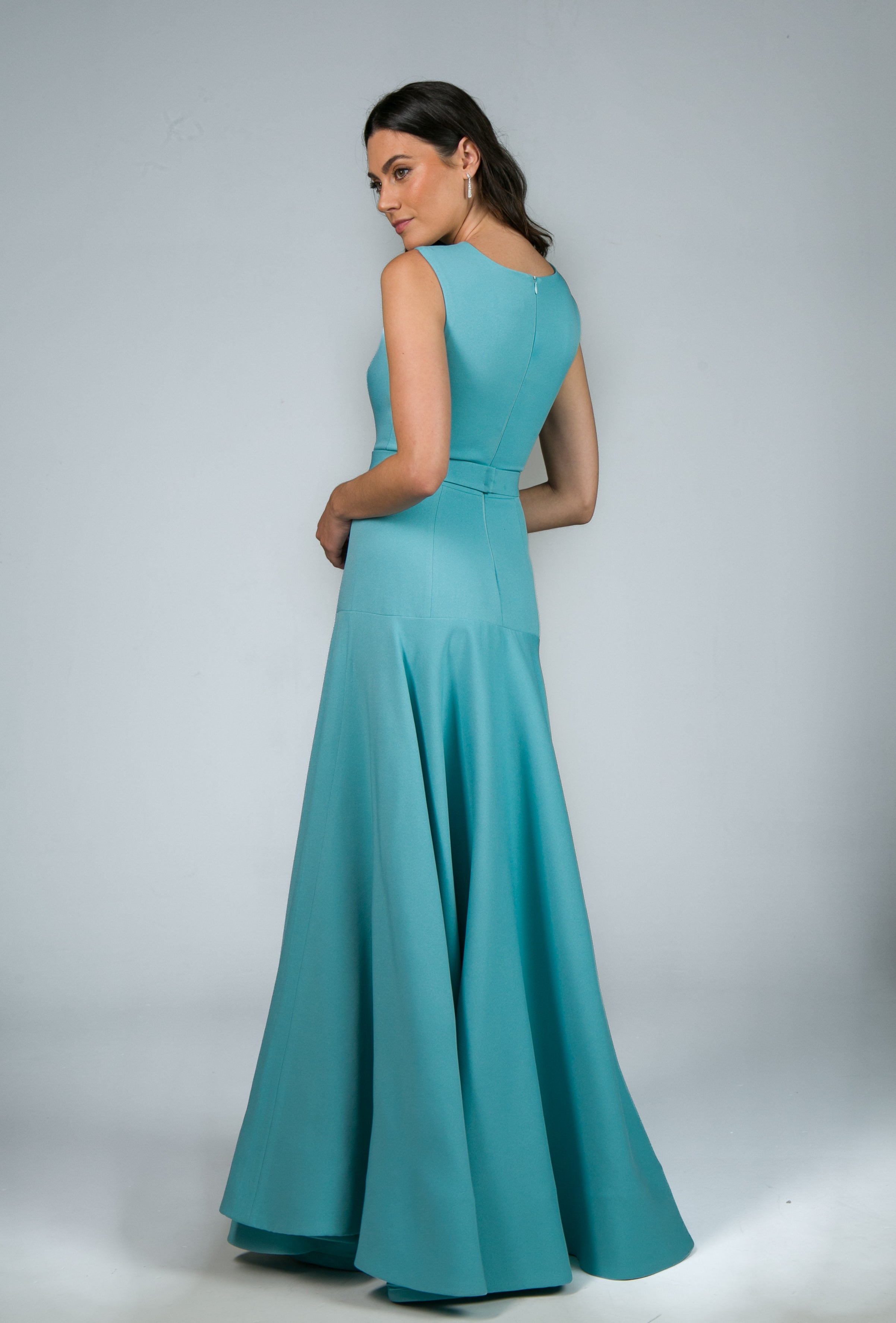 Vestido Longo em Crepe com Decote Alto e Saia Ampla – REF: OD83