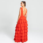 Vestido Longo em Crepe com Babados Estruturados – REF: EG49