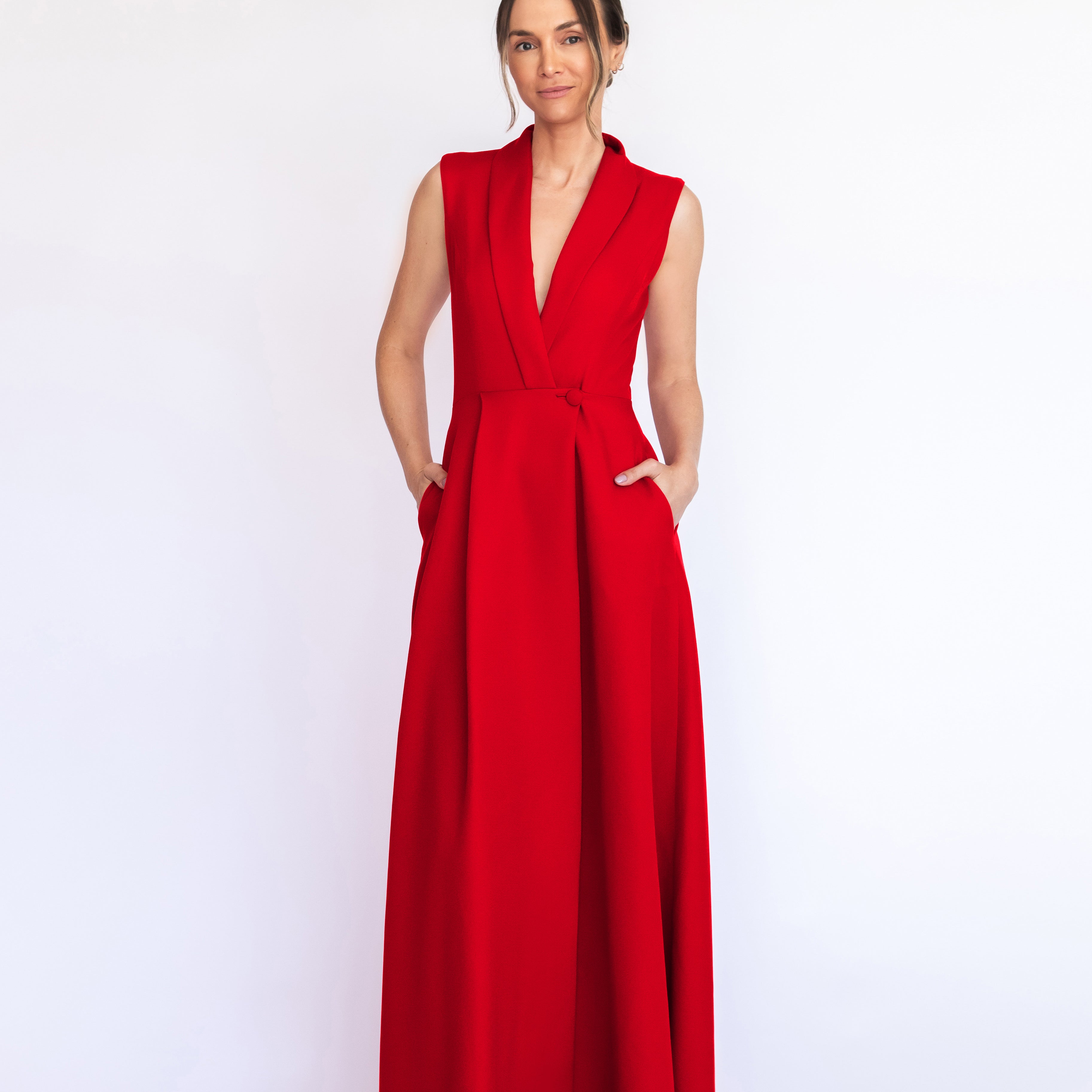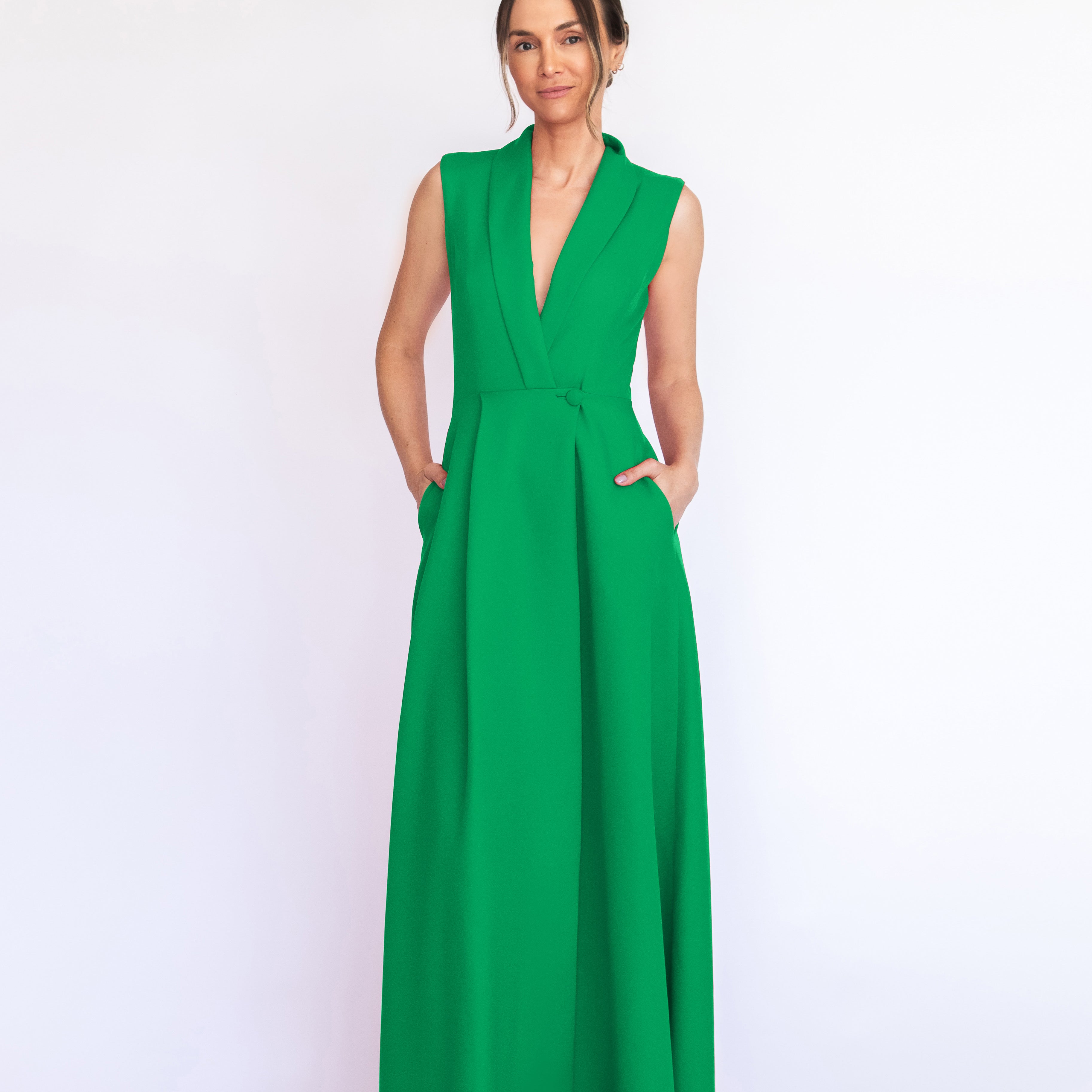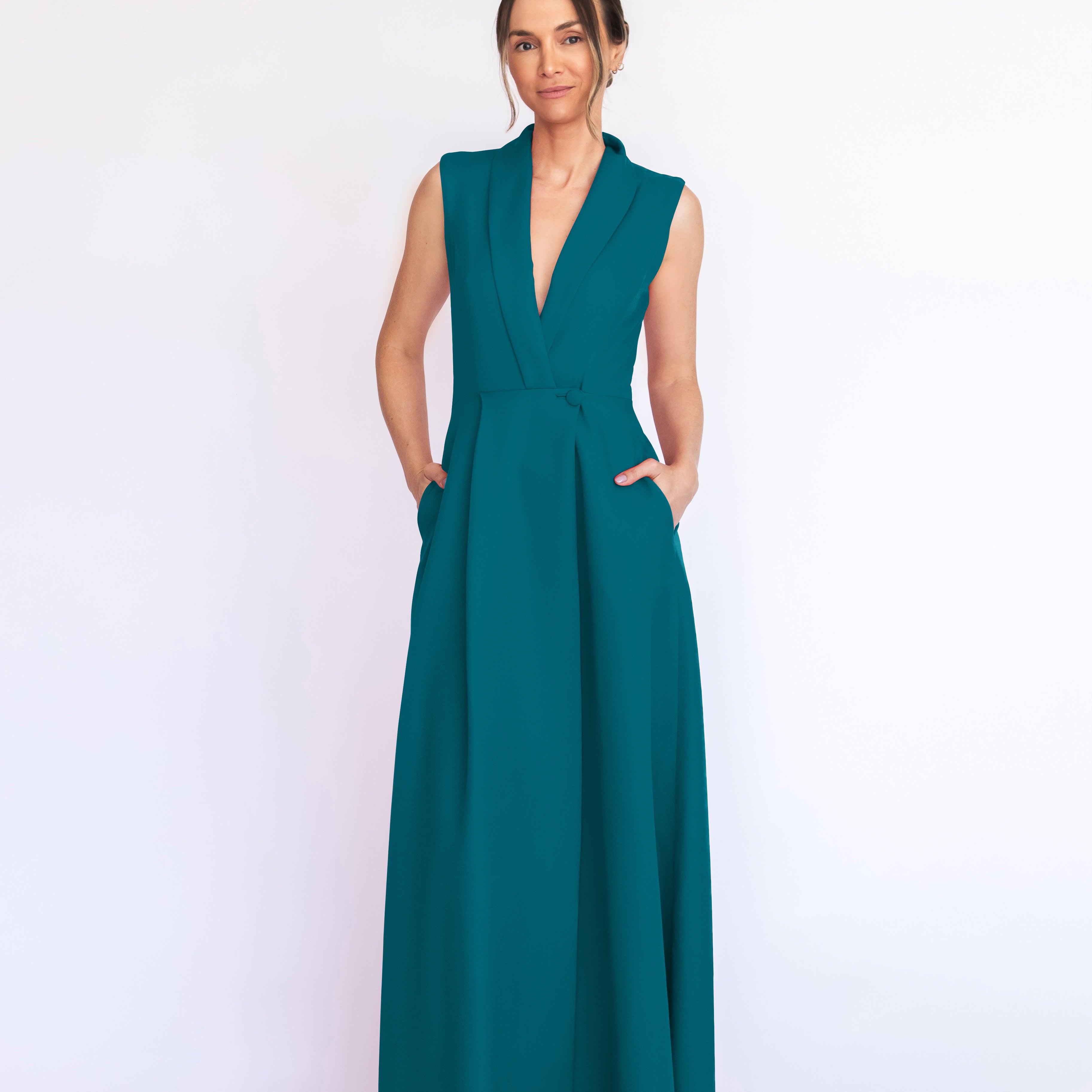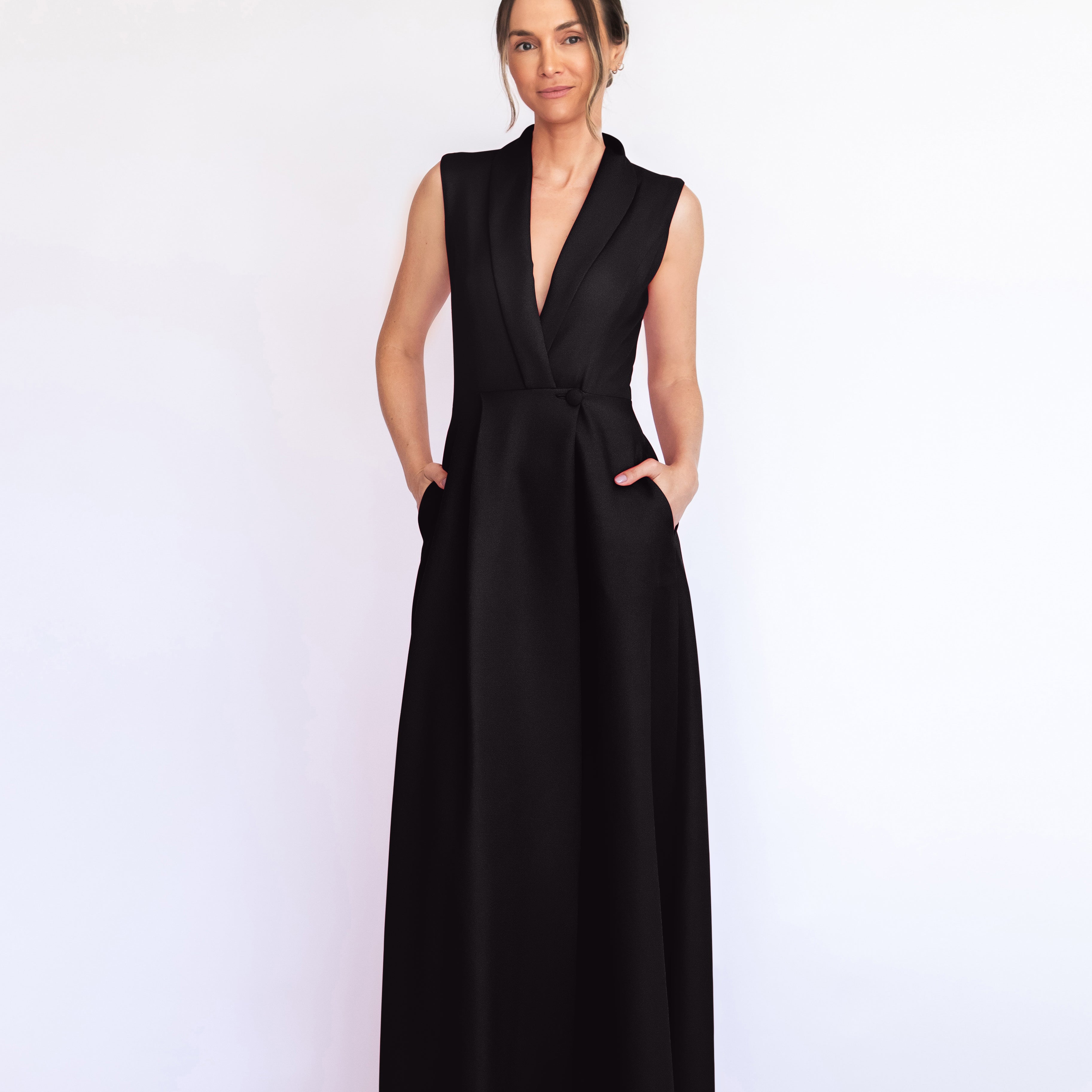 Vestido Longo em Crepe Estilo Alfaiataria com Decote V – REF: EG50