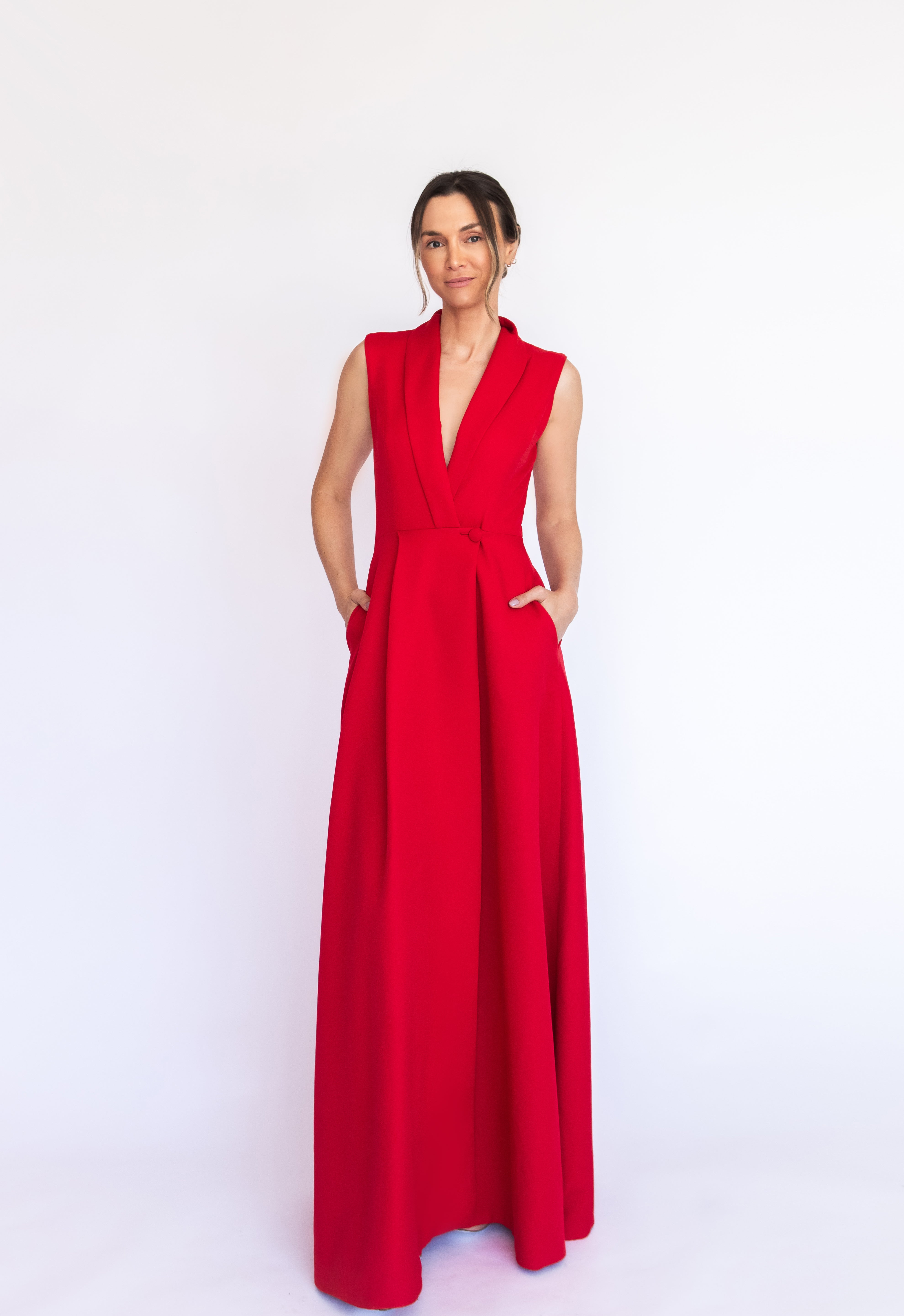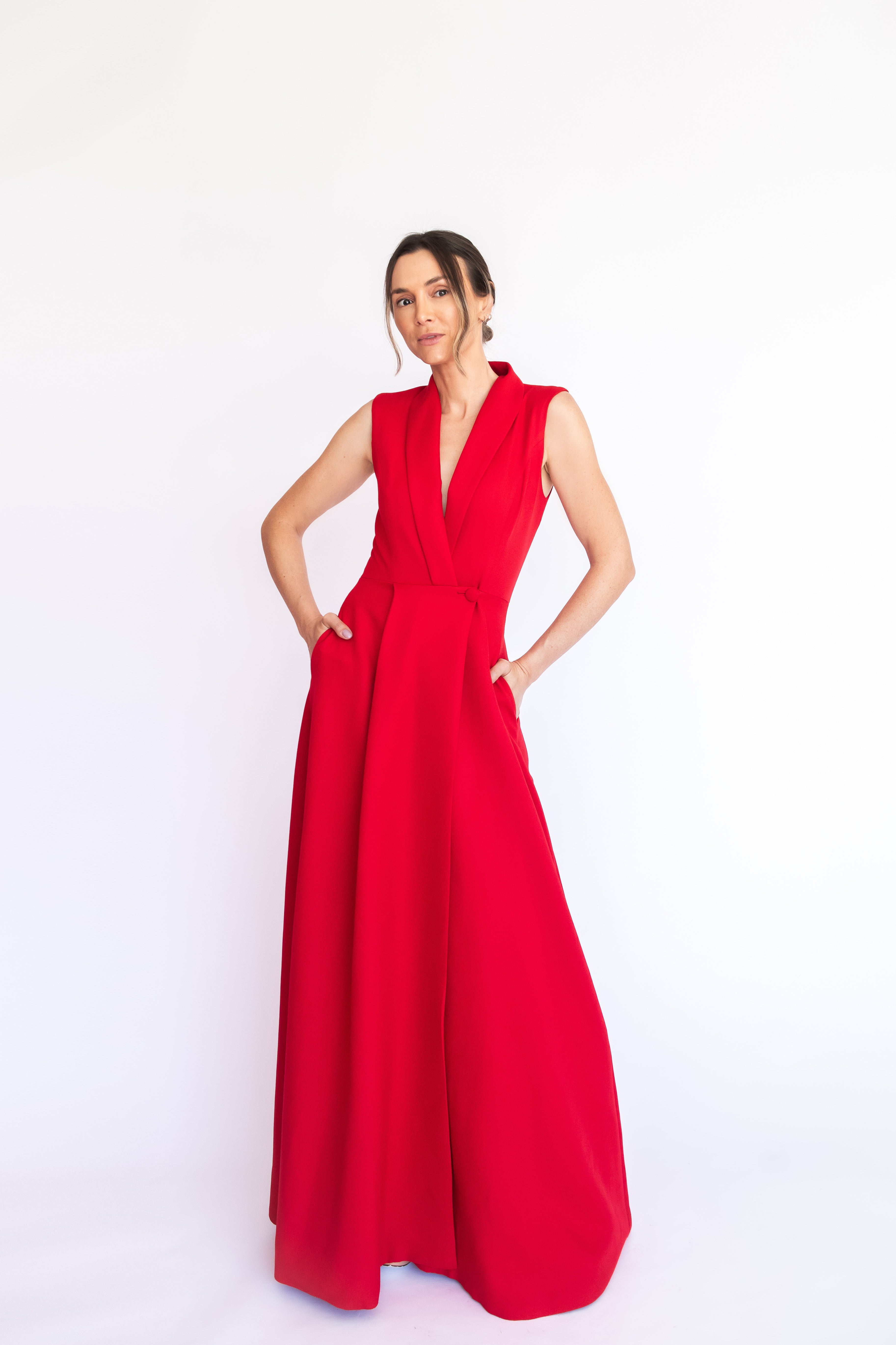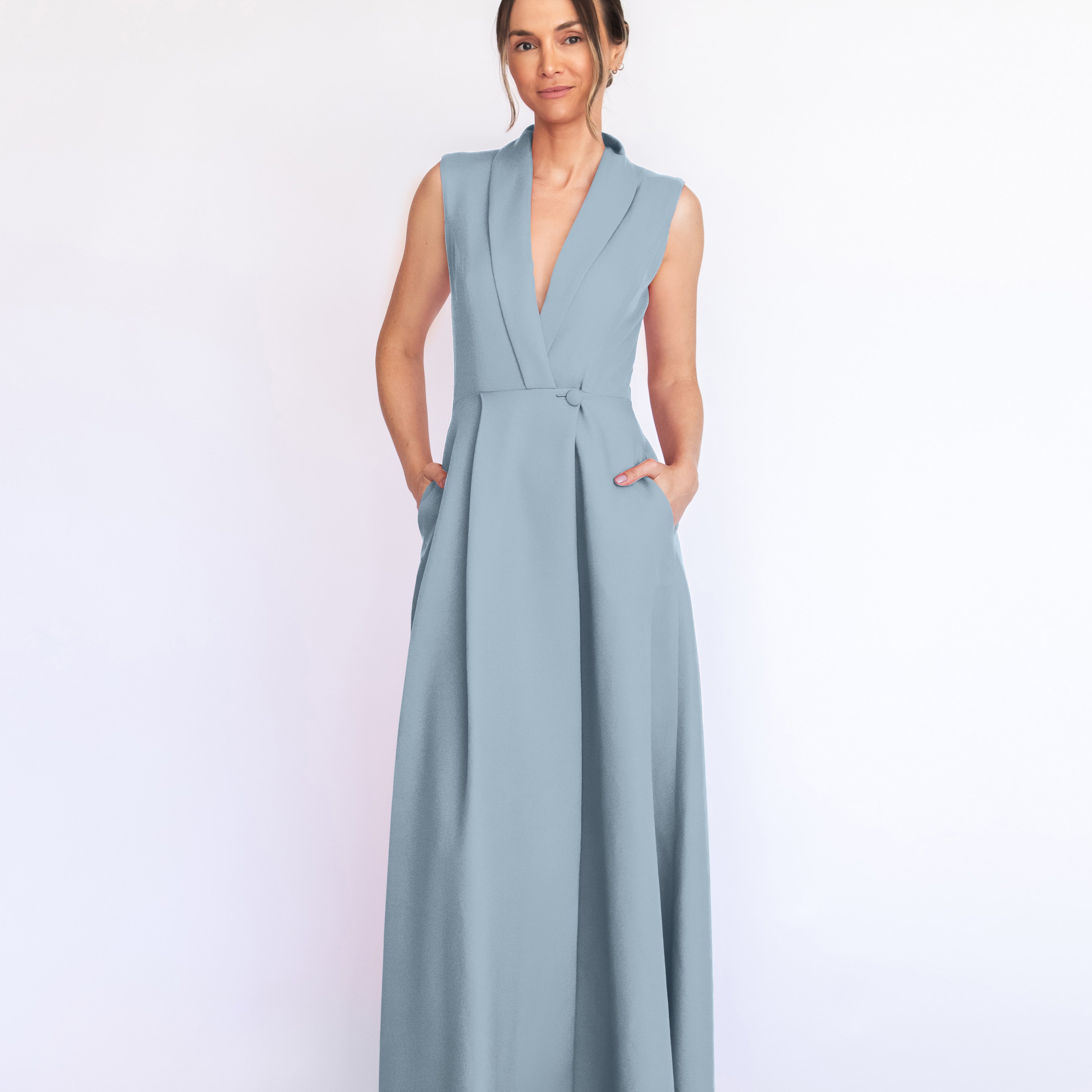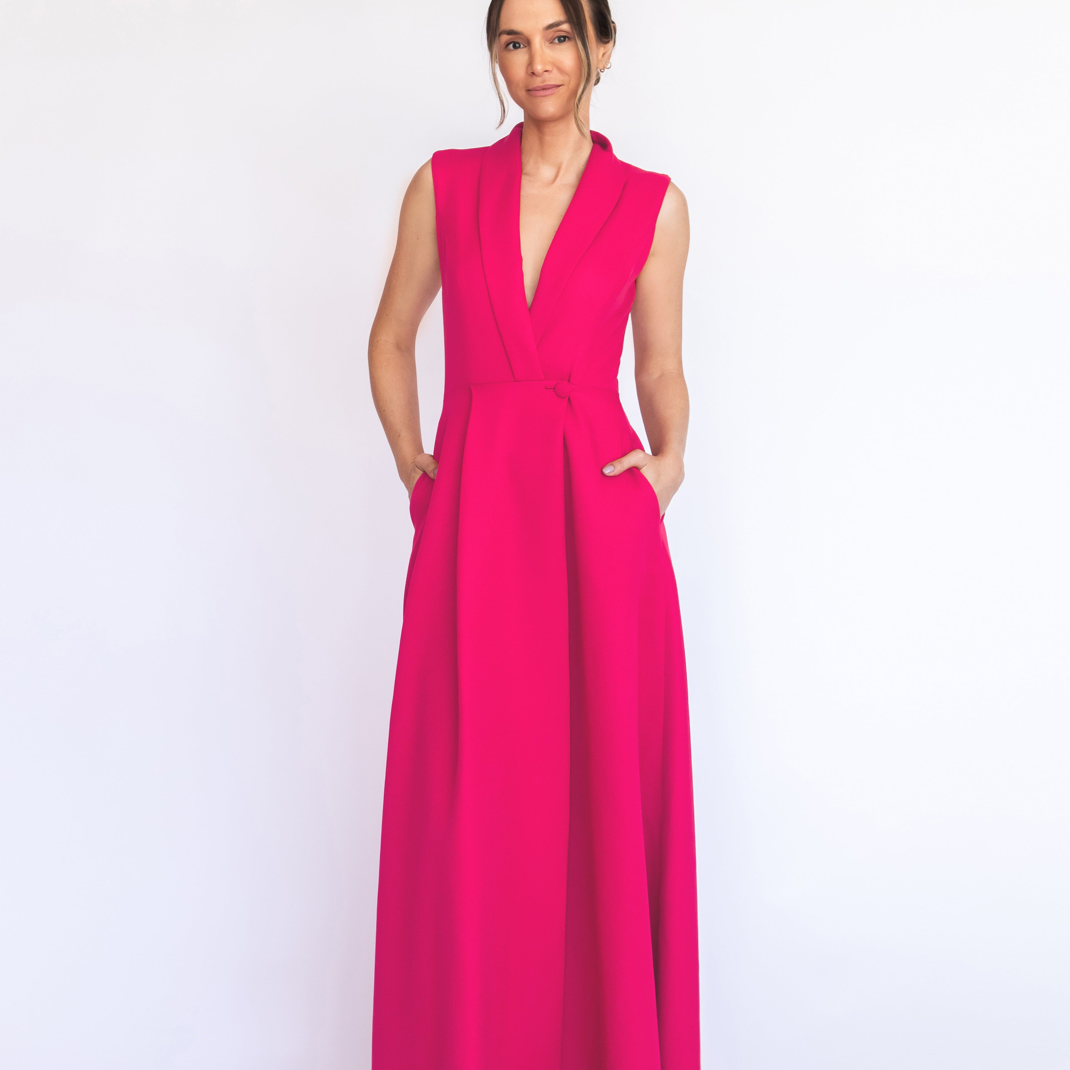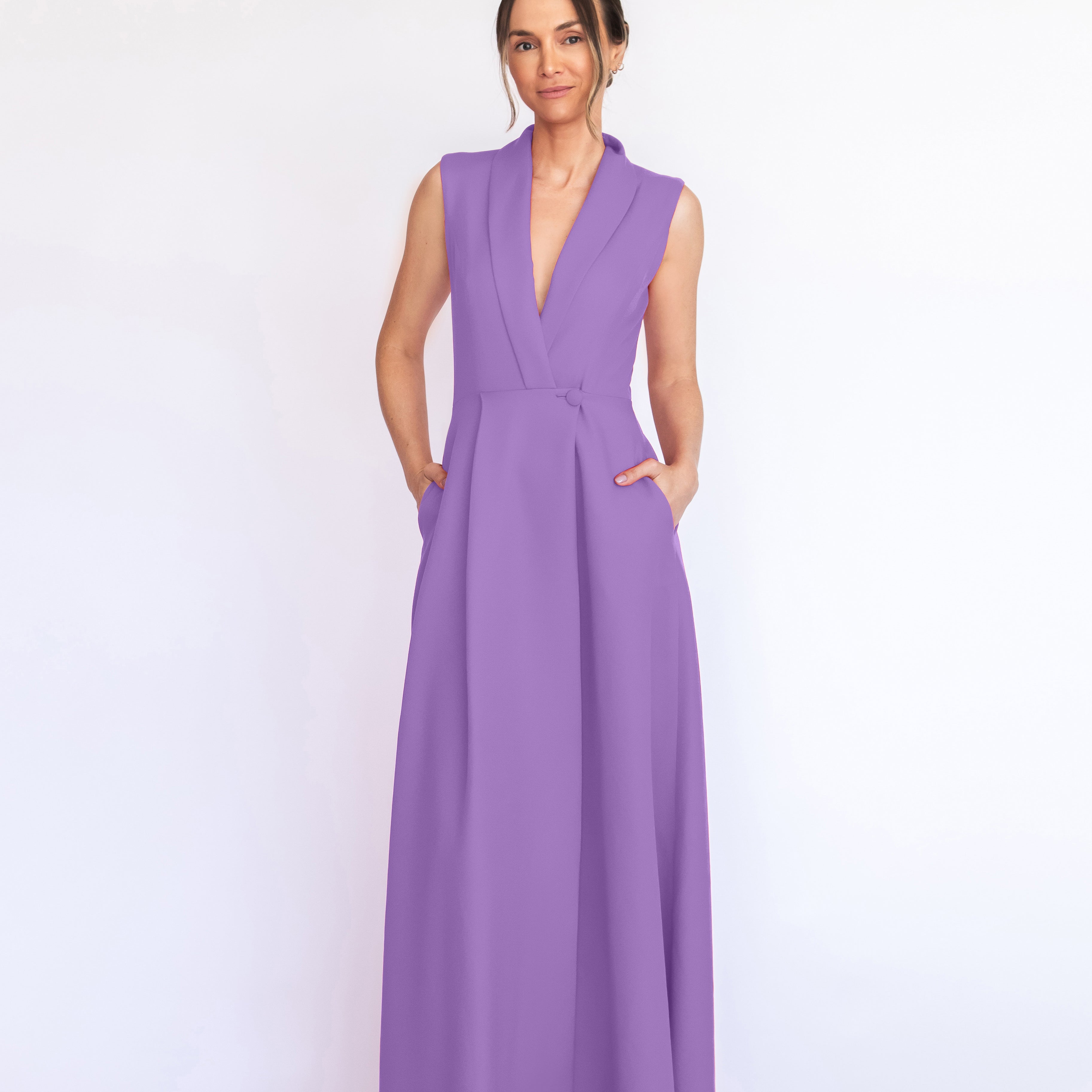 Vestido Longo em Crepe Estilo Alfaiataria com Decote V – REF: EG50