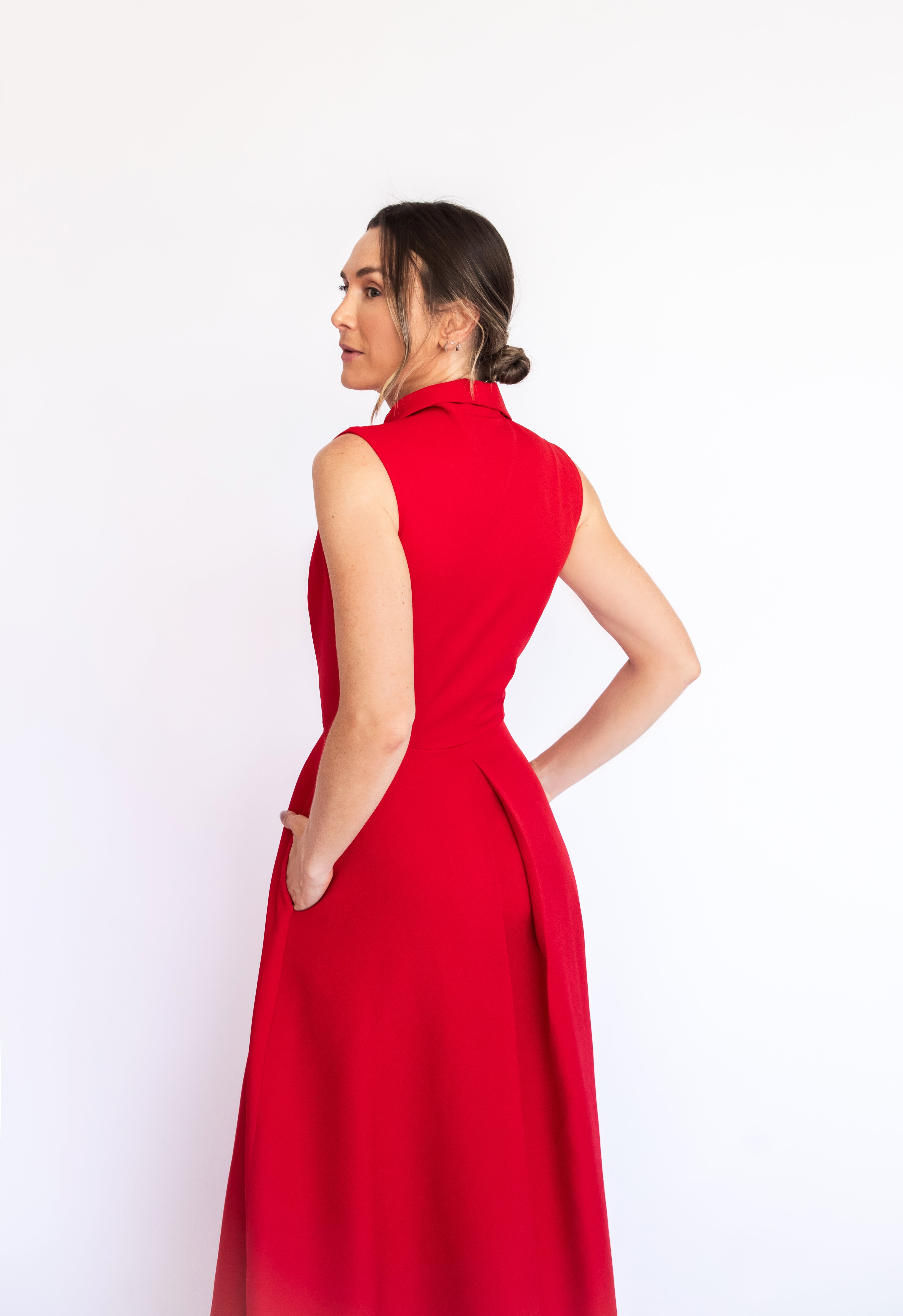 A elegância está na qualidade. Um vestido impecavelmente cortado, em tecido nobre, é a definição de sofisticação atemporal.