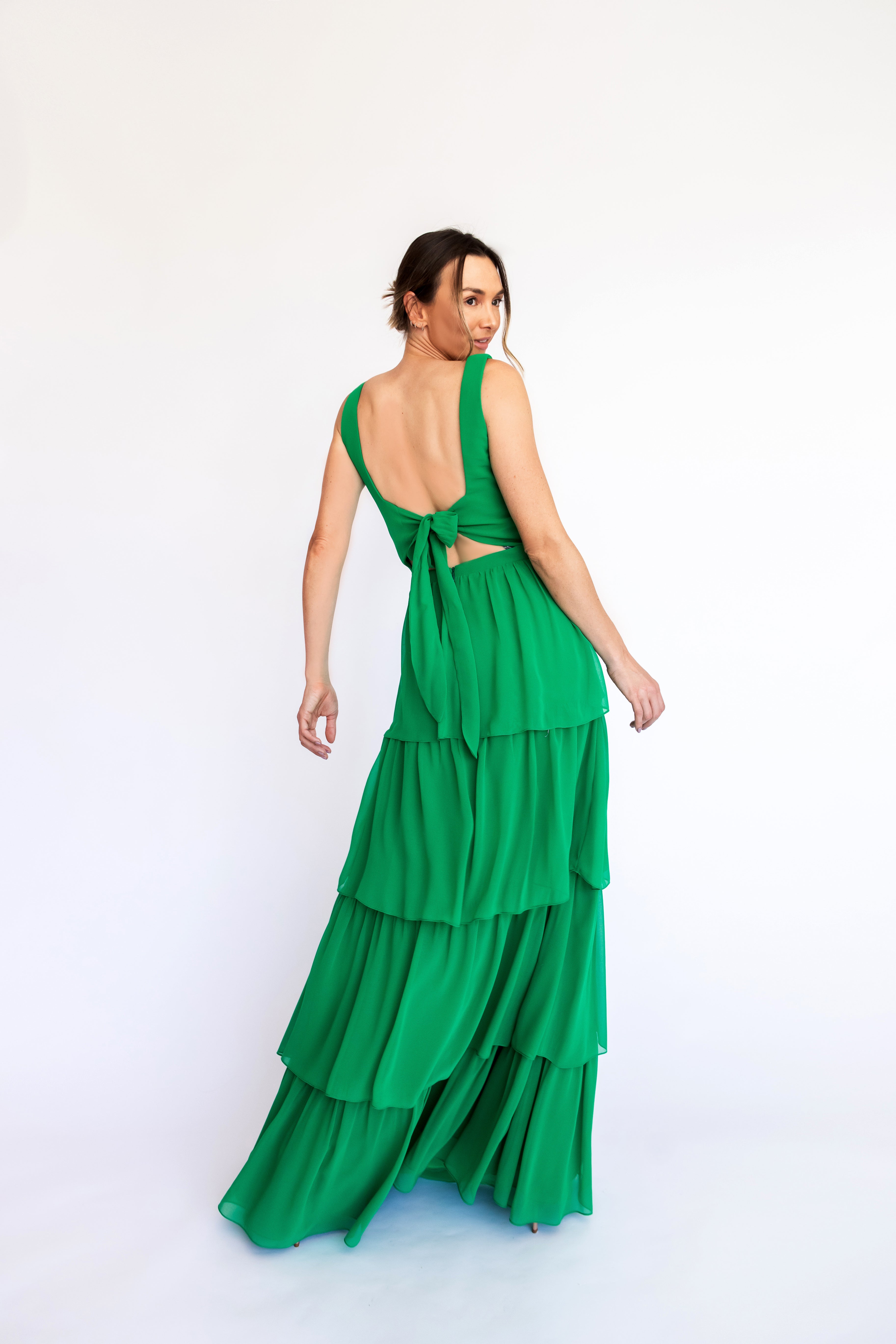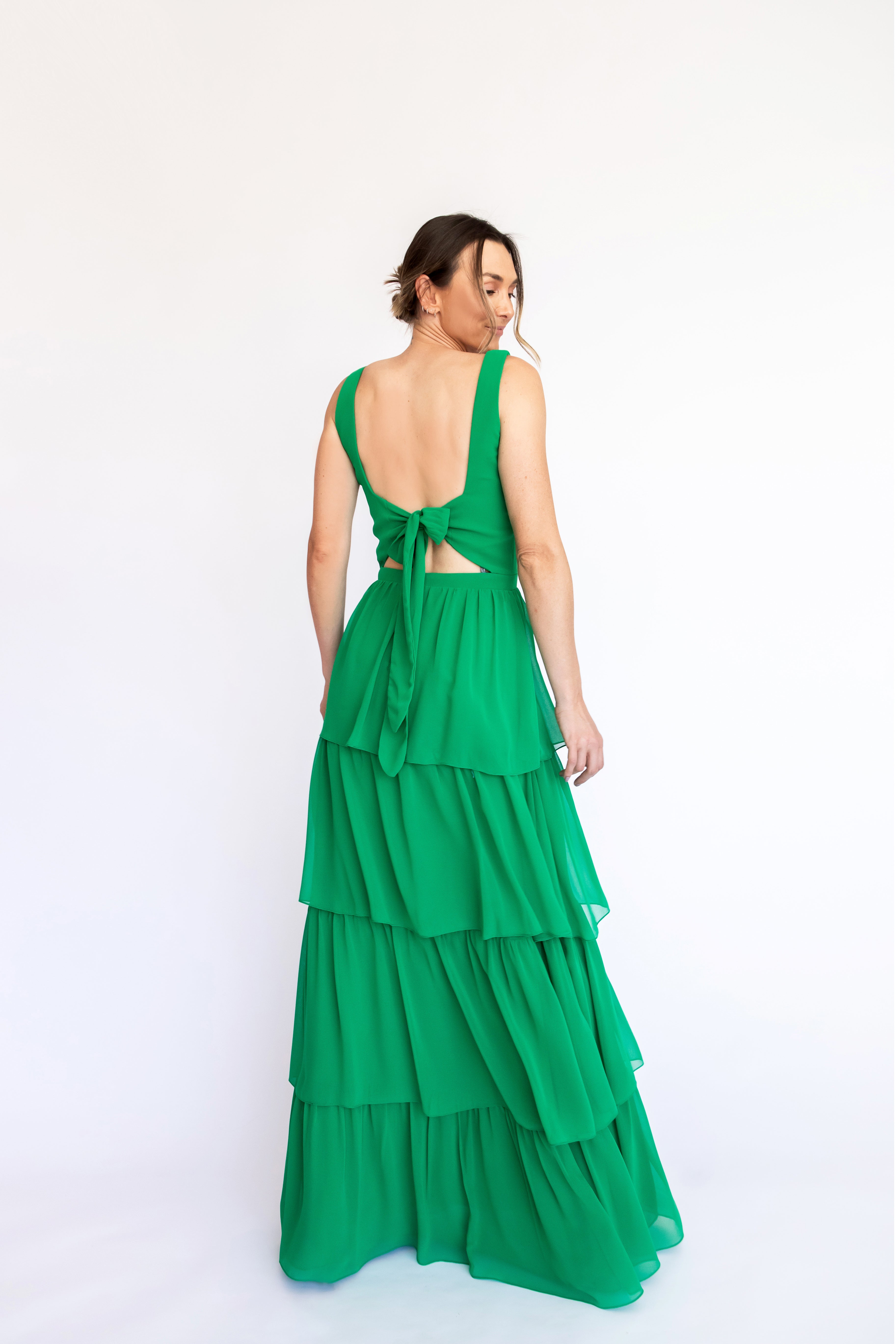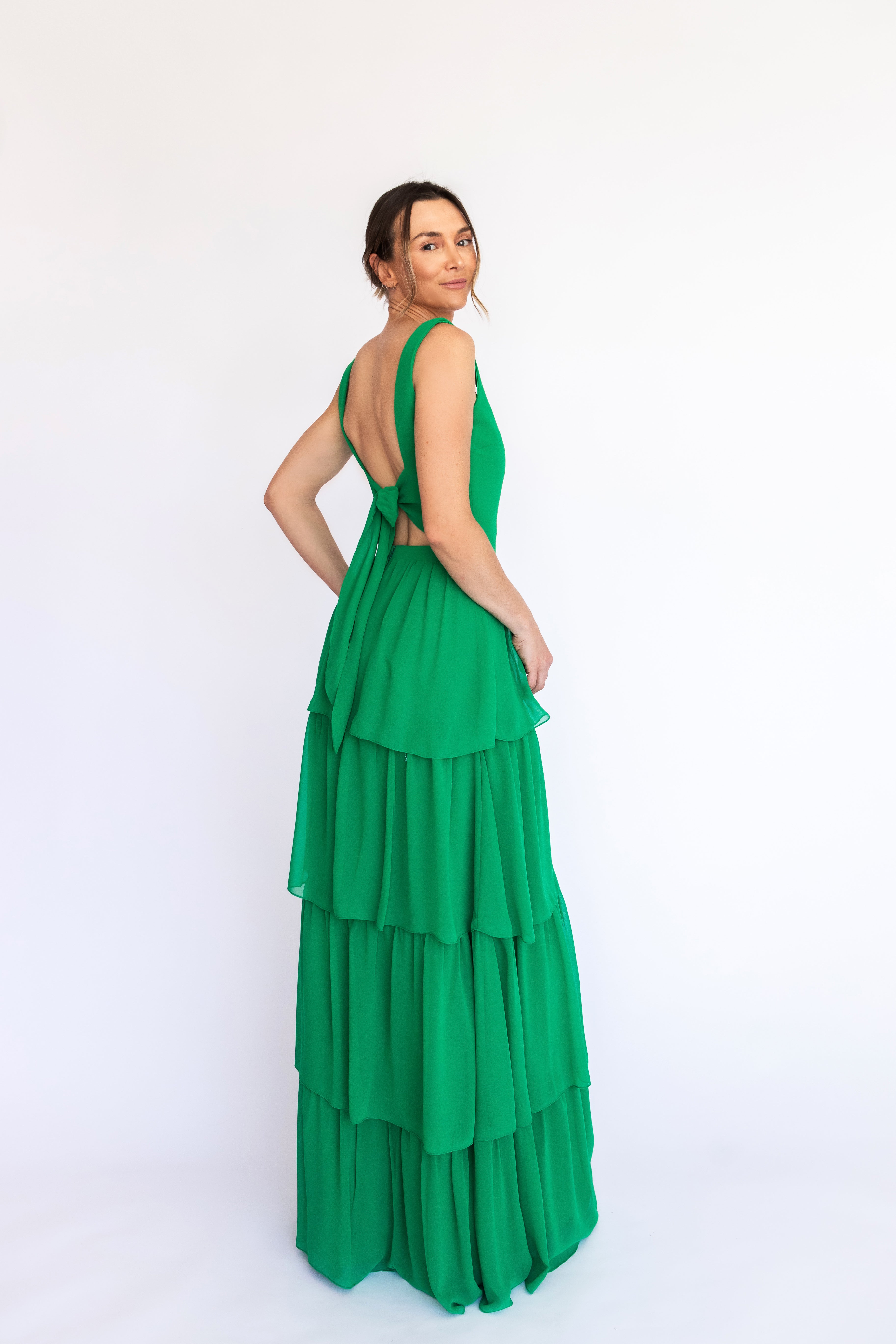 Vestido Longo em Musseline com Costas Abertas e Laço – REF: EG32