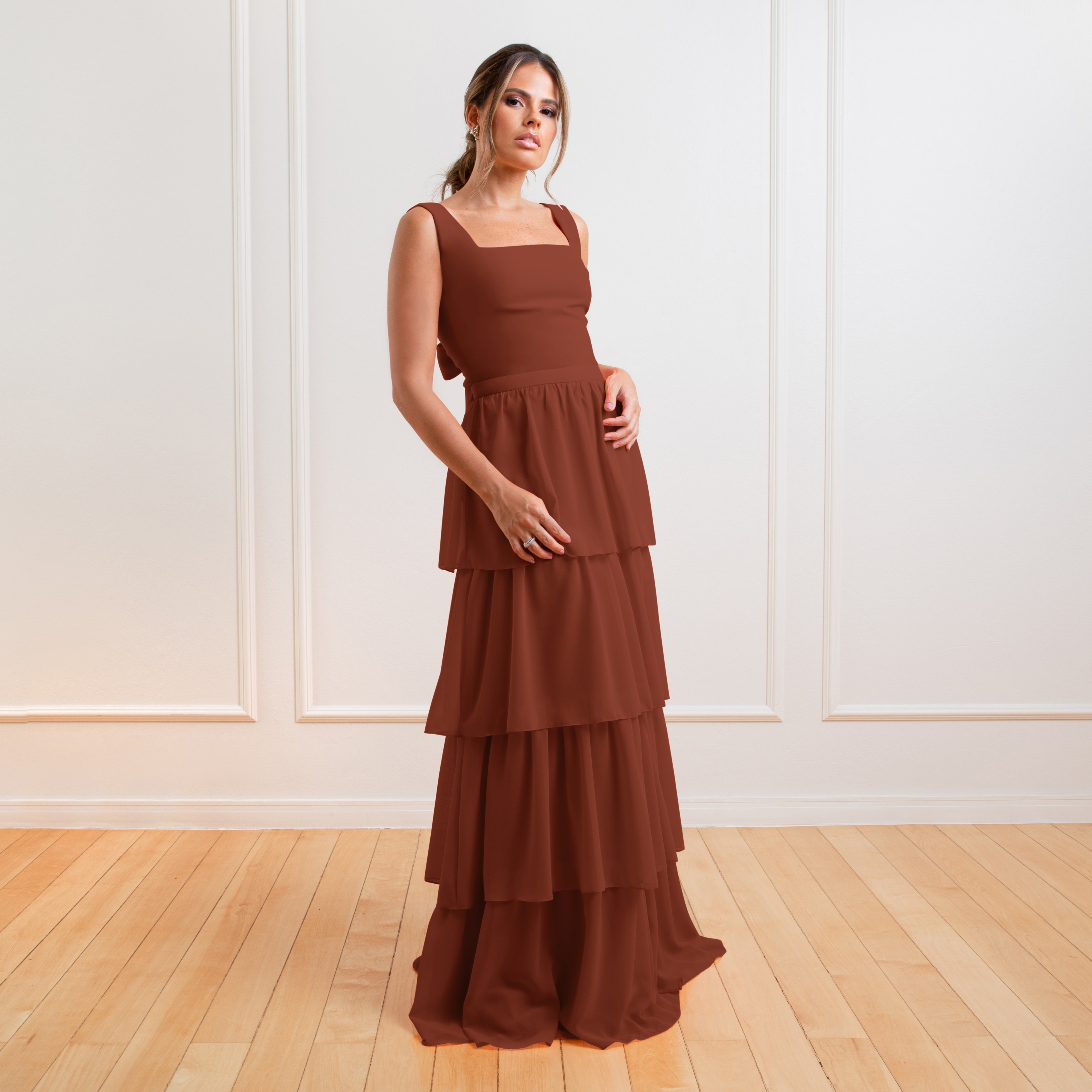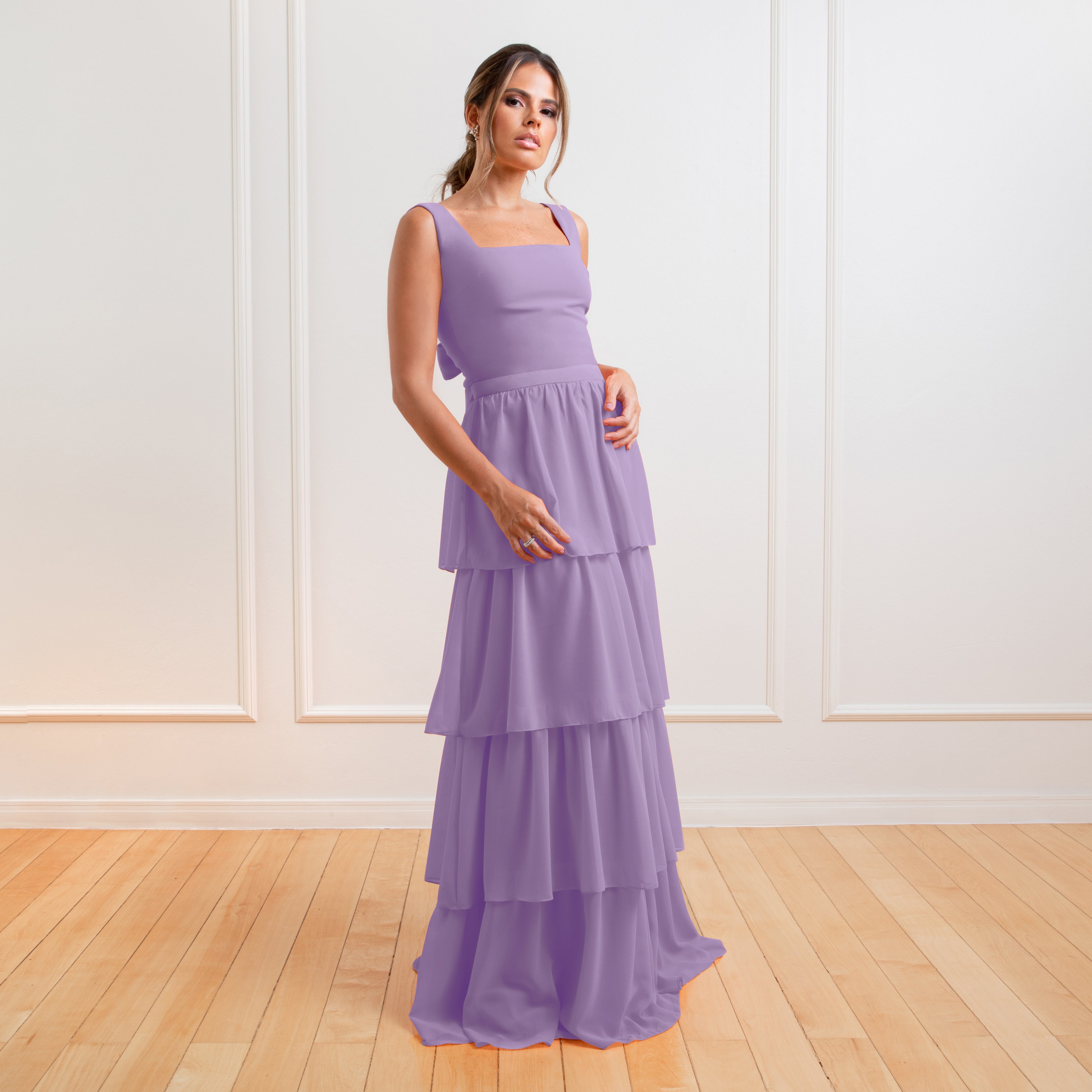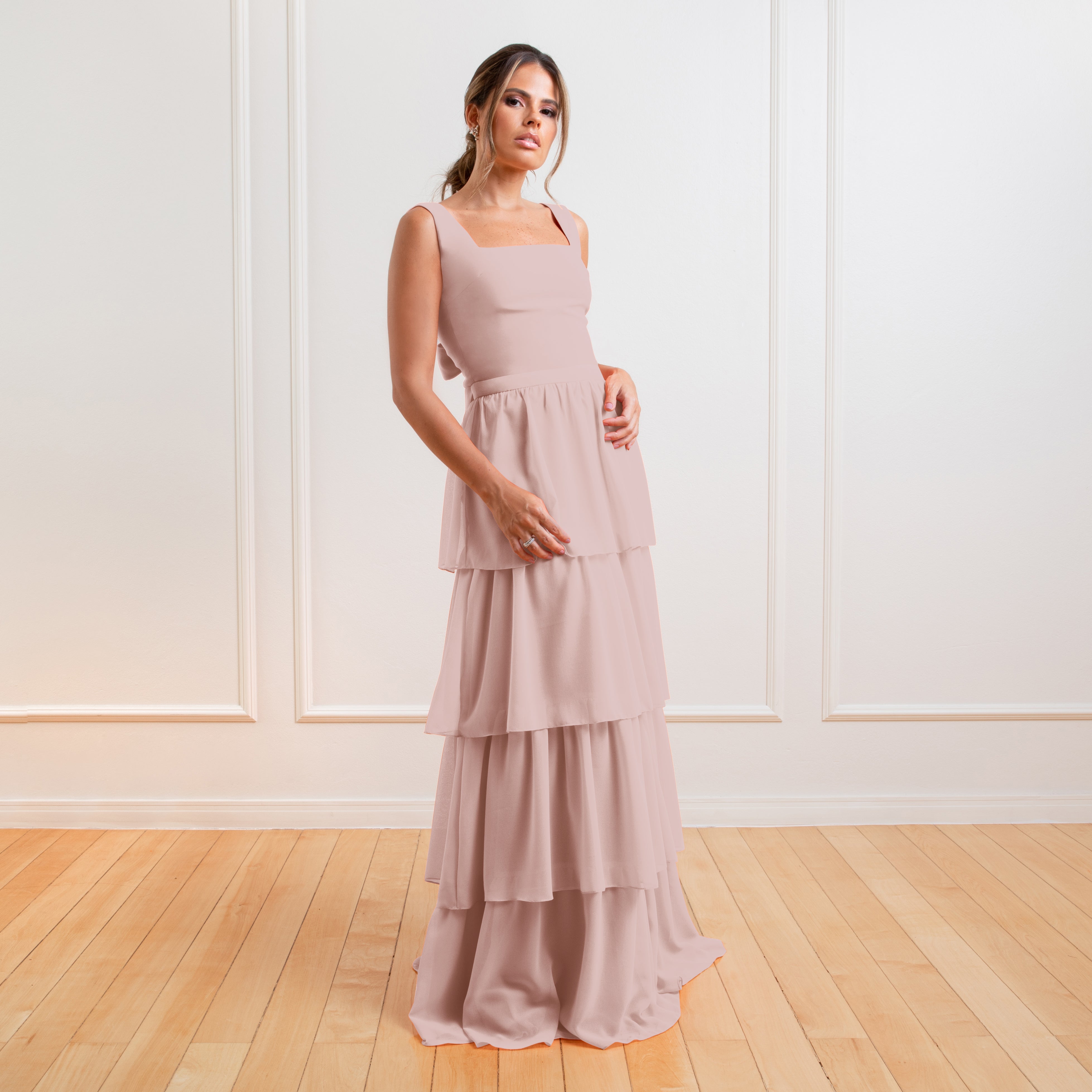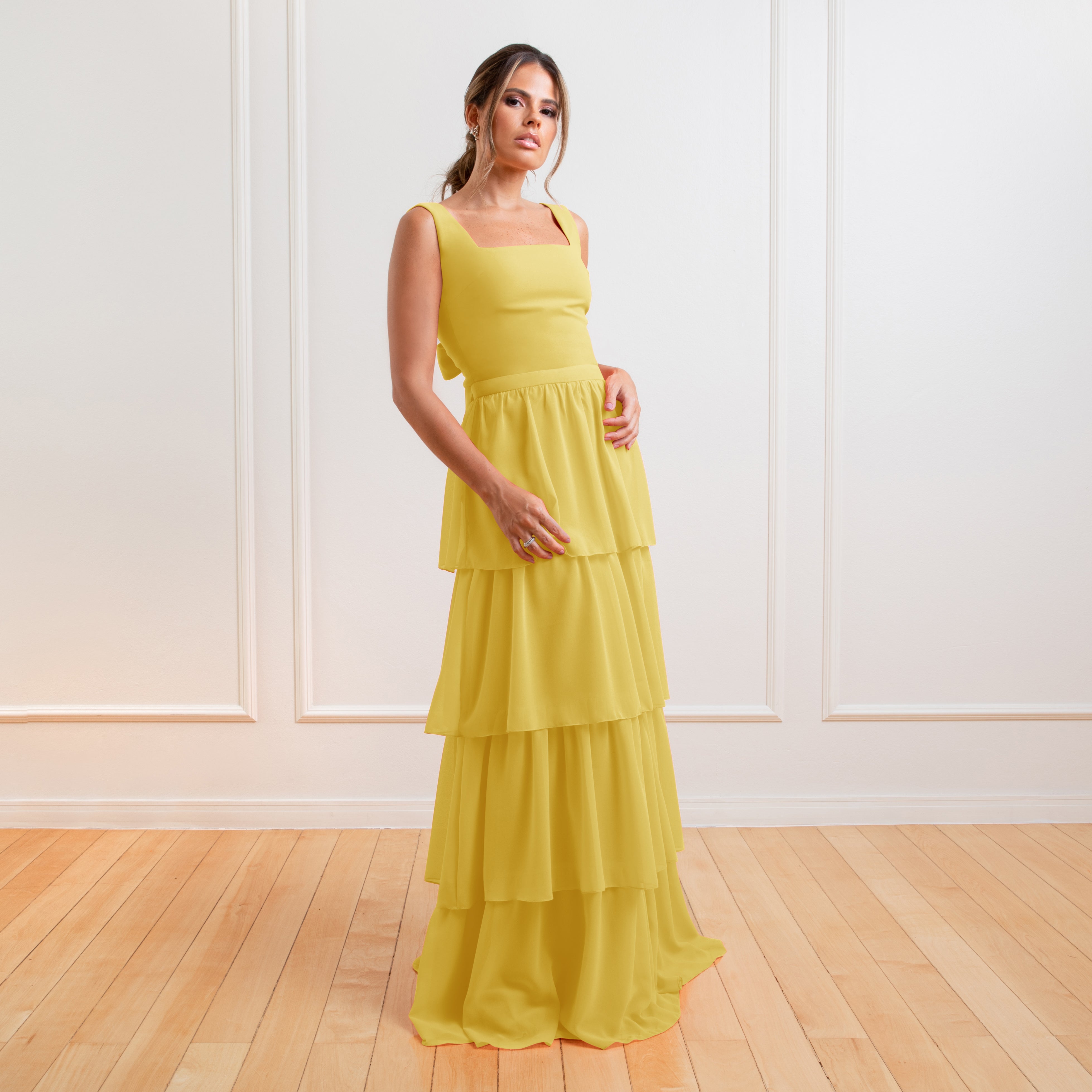 Vestido Longo em Musseline com Costas Abertas e Laço – REF: EG32