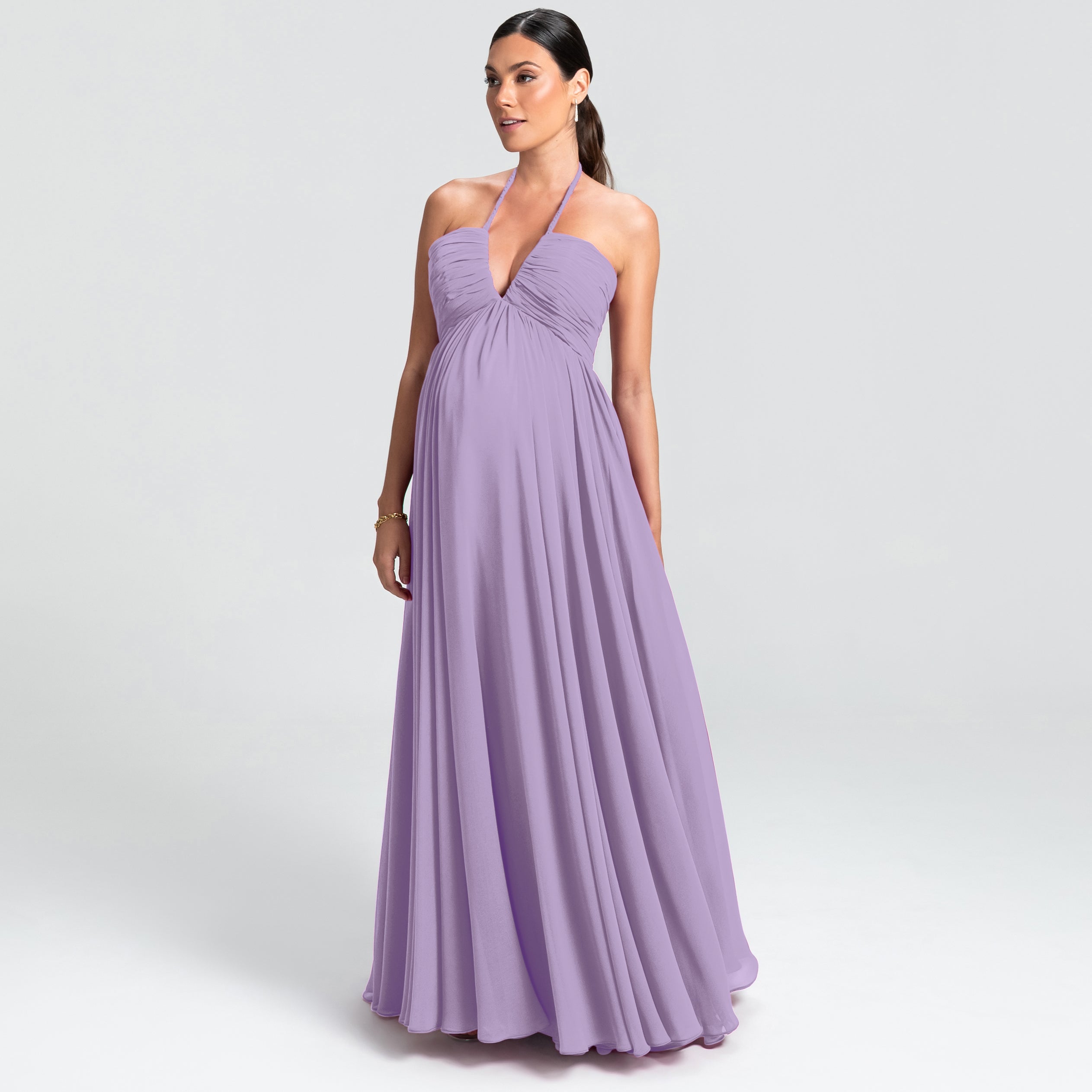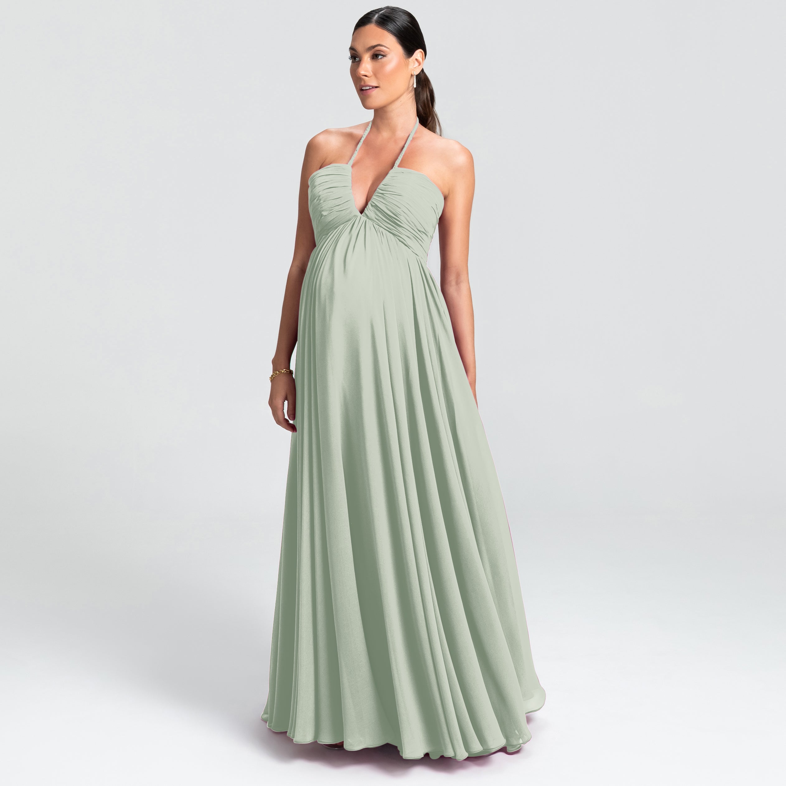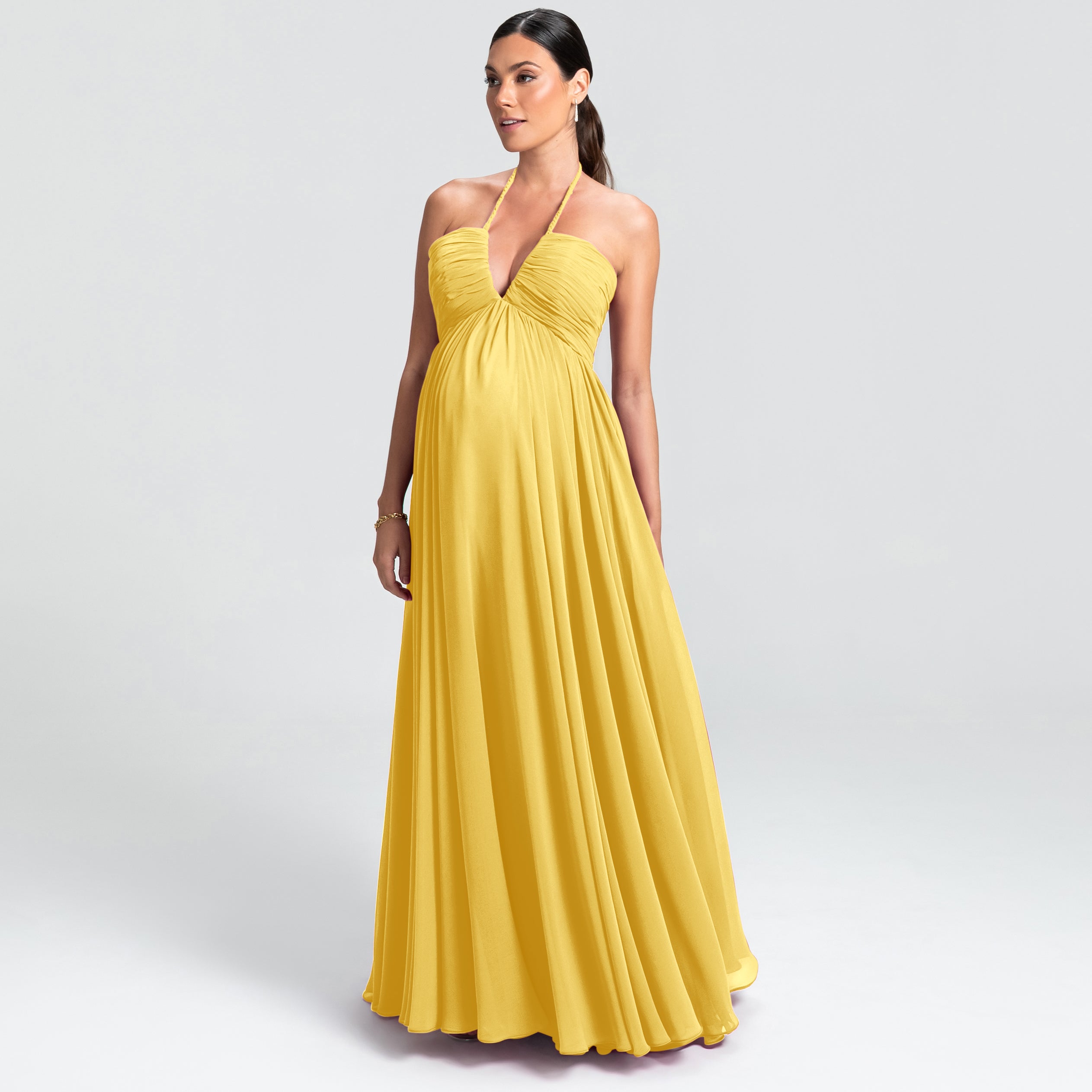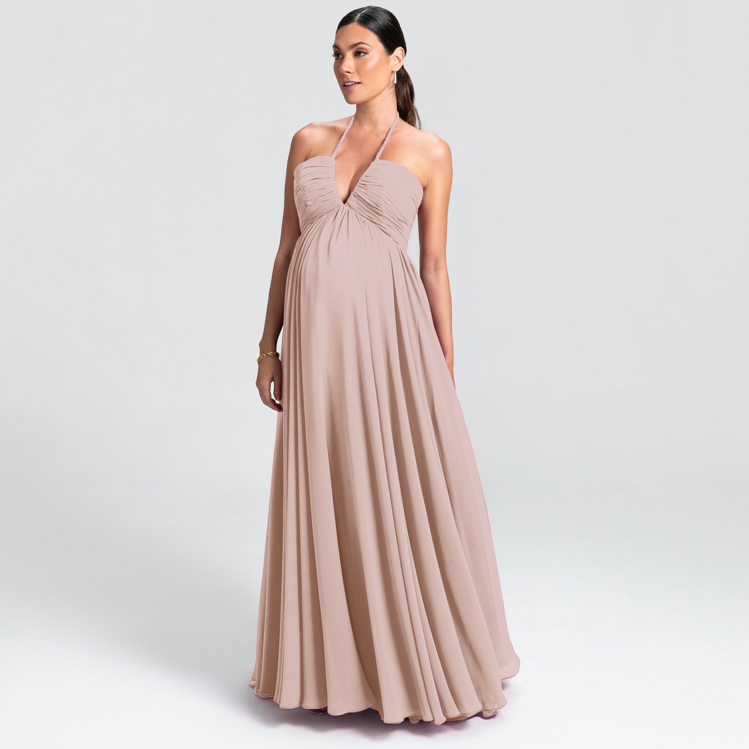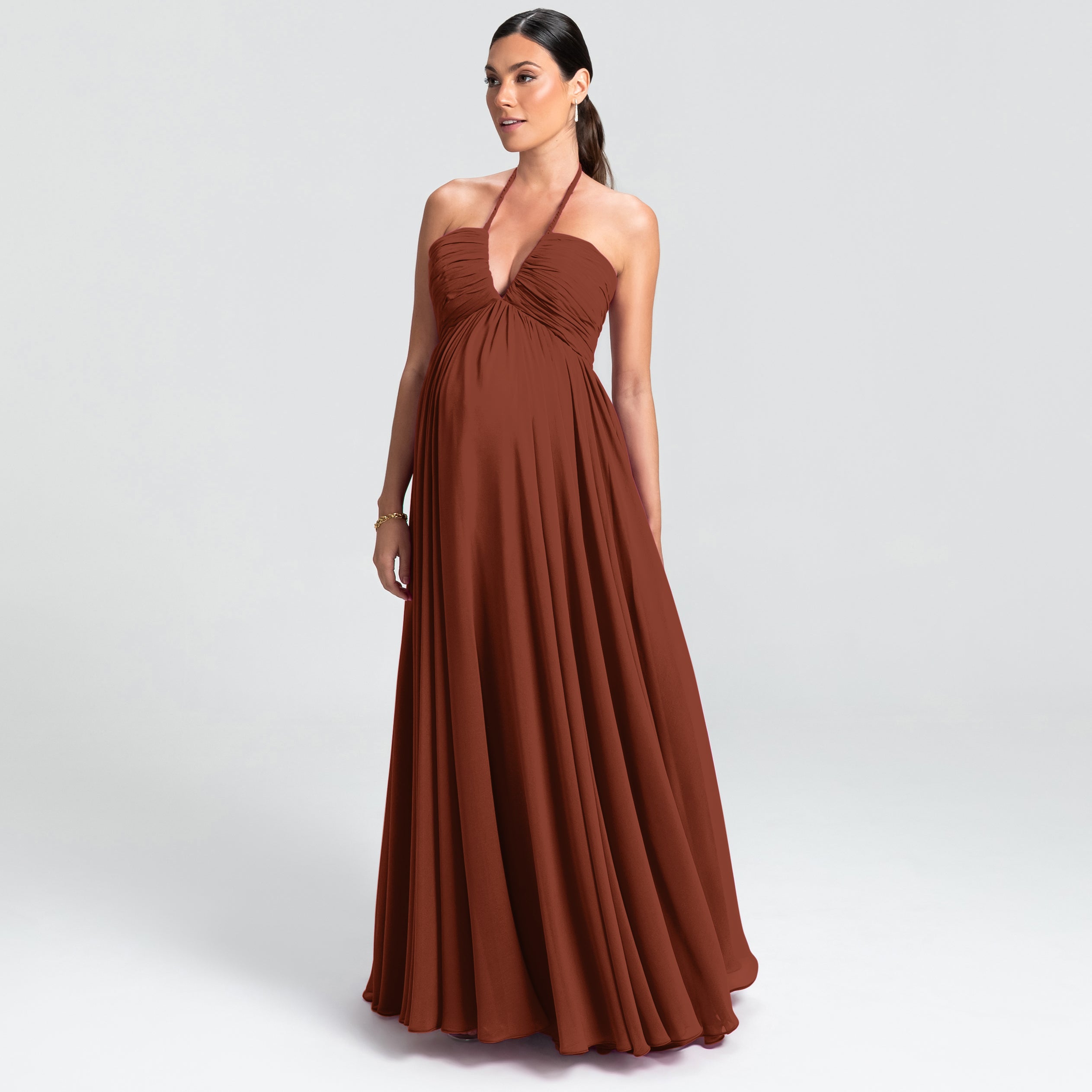 Nossos vestidos longos têm, por padrão, 117 cm de comprimento de saia, medidos a partir da cintura.