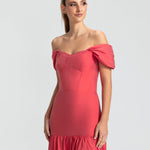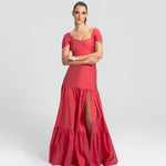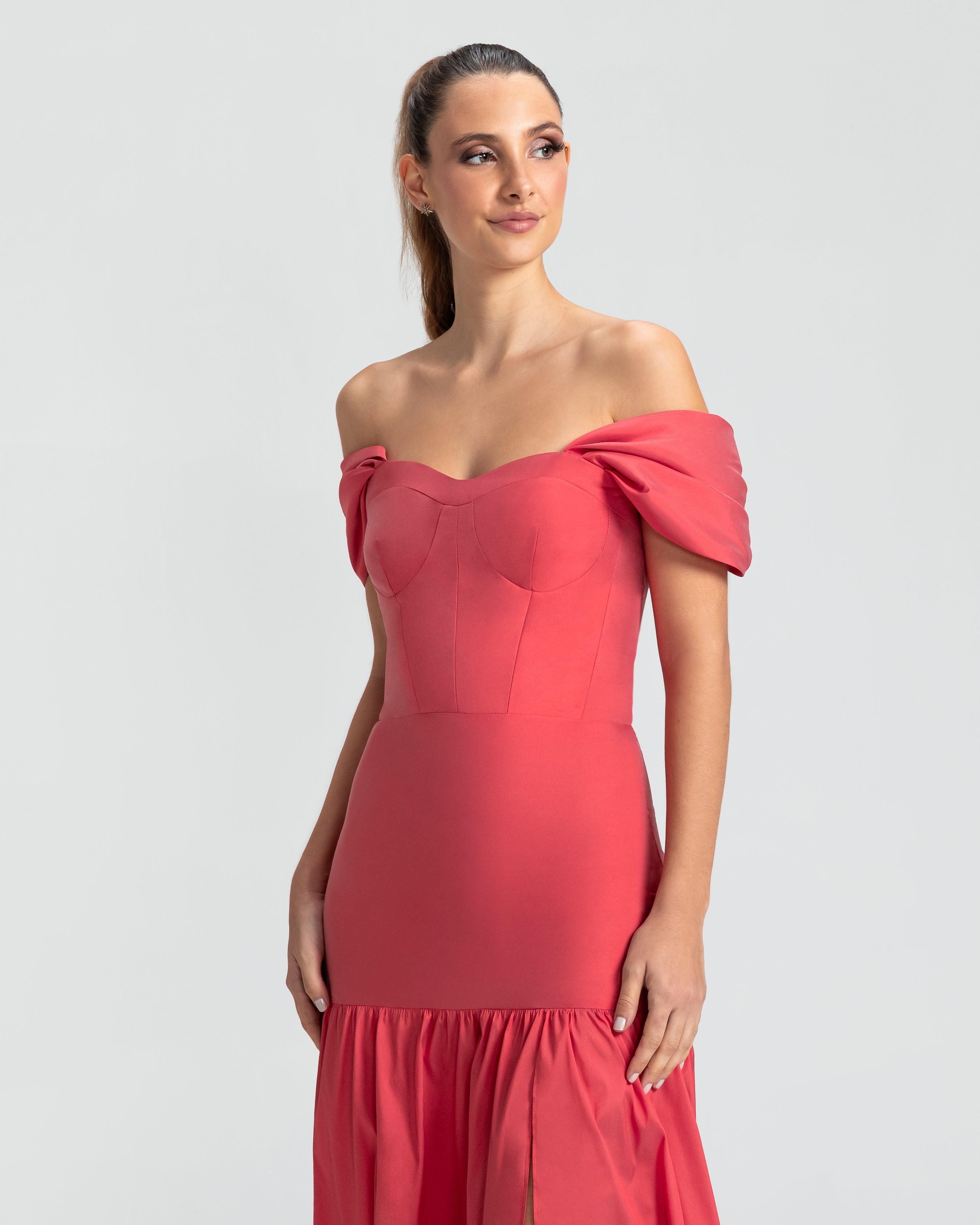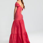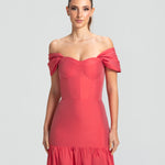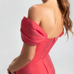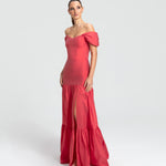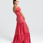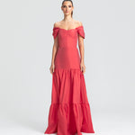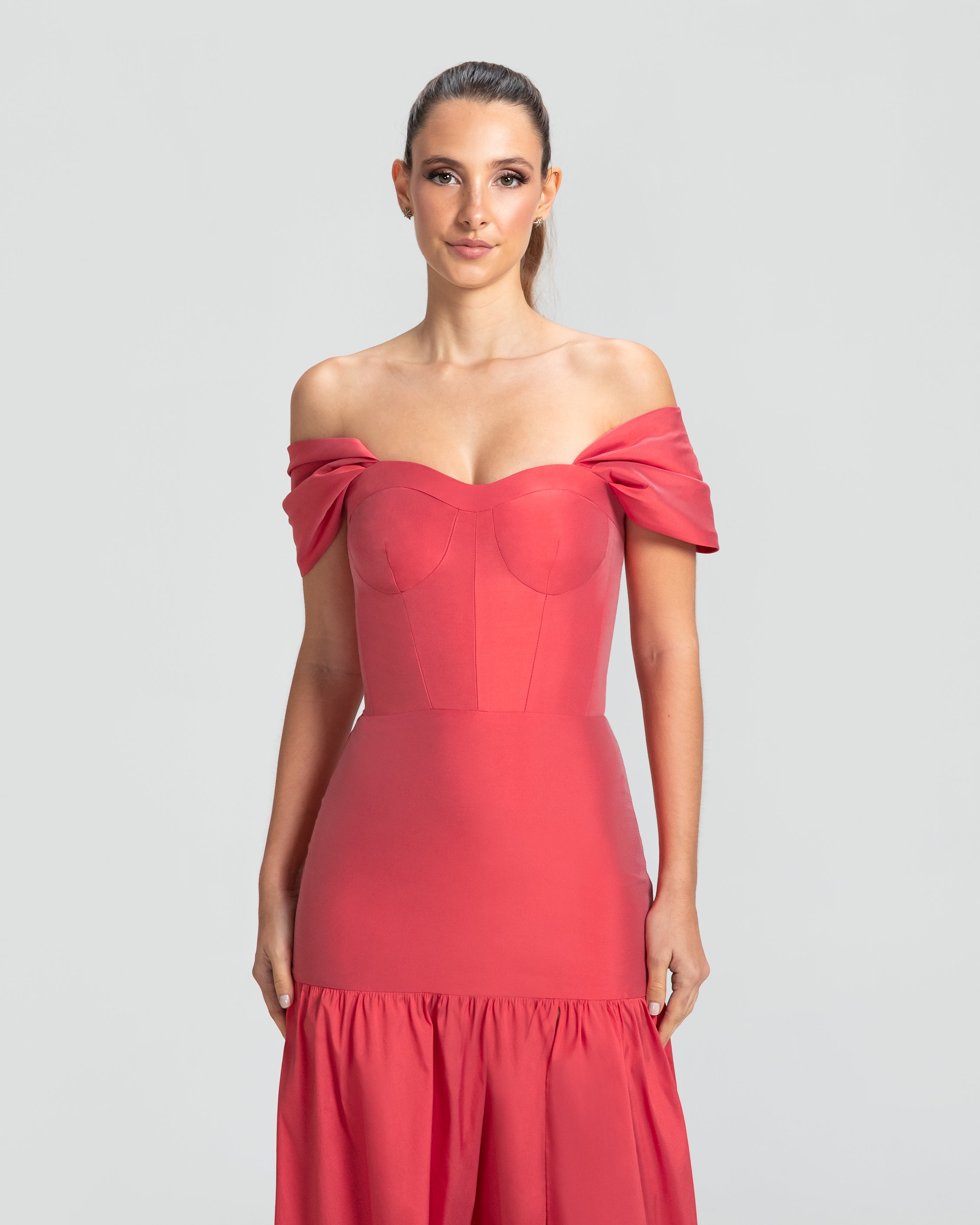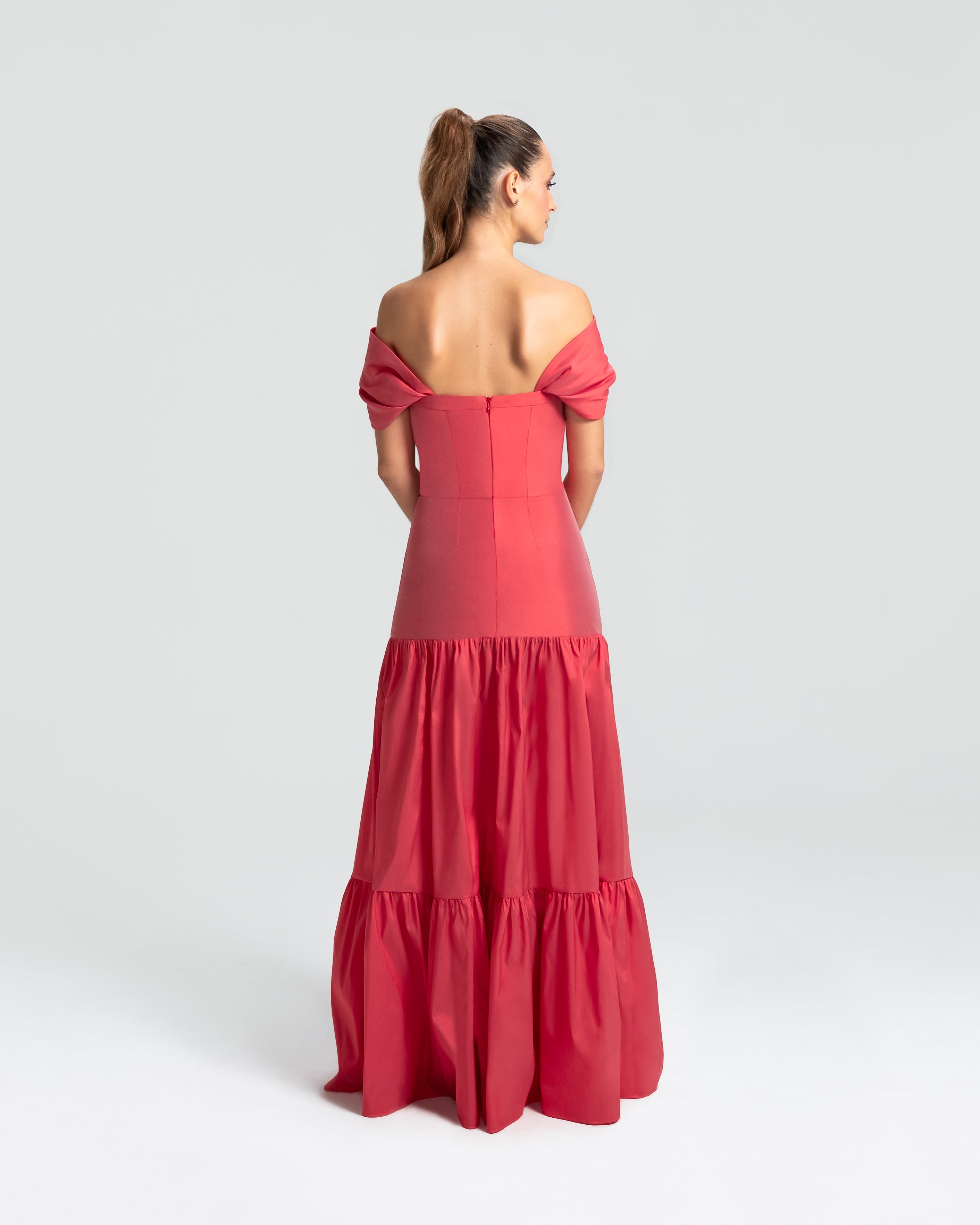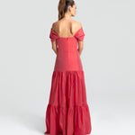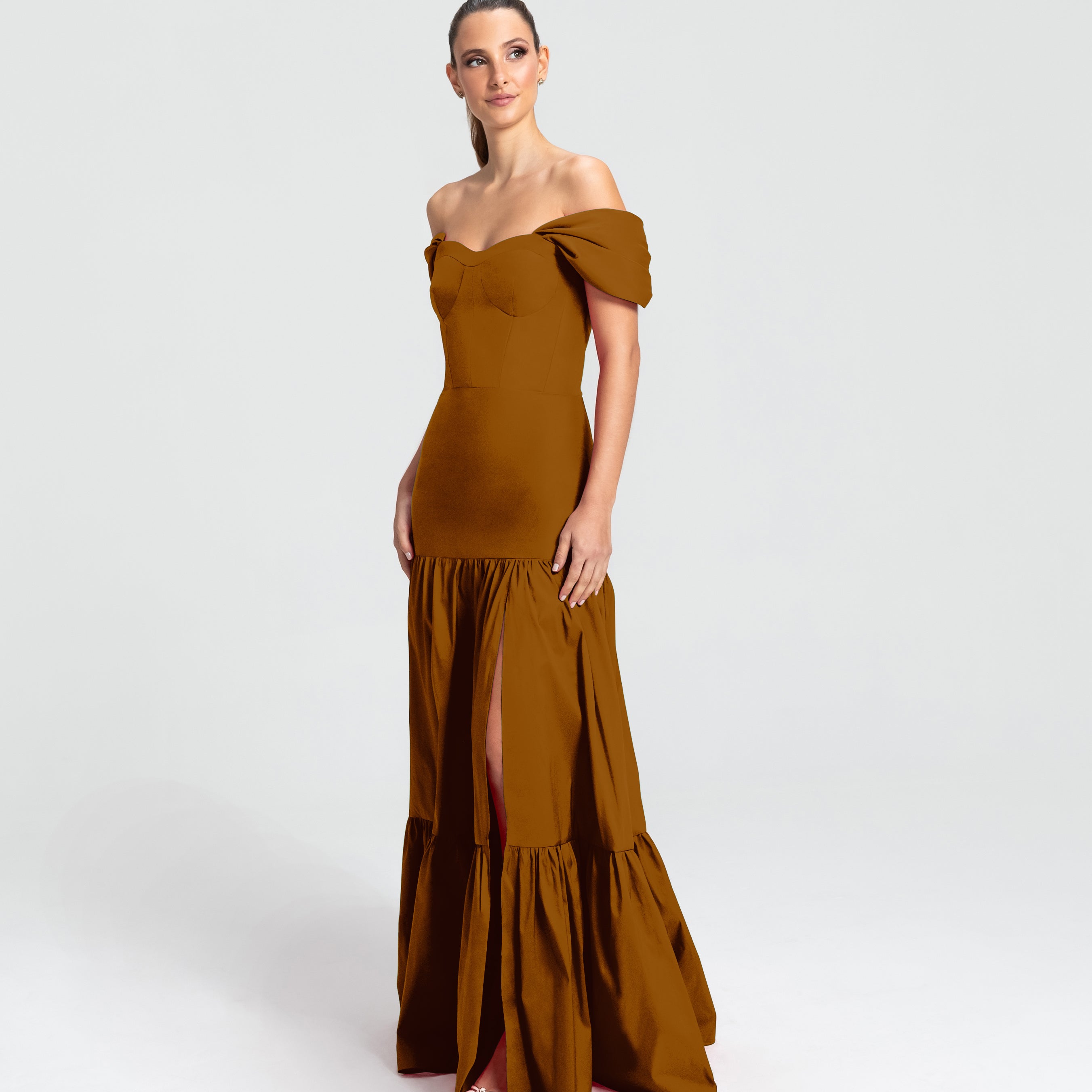 Vestido Longo em Tafetá Ombro a Ombro Cadeirão e Saia Franzida – REF: EG25