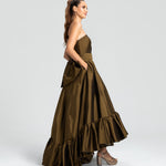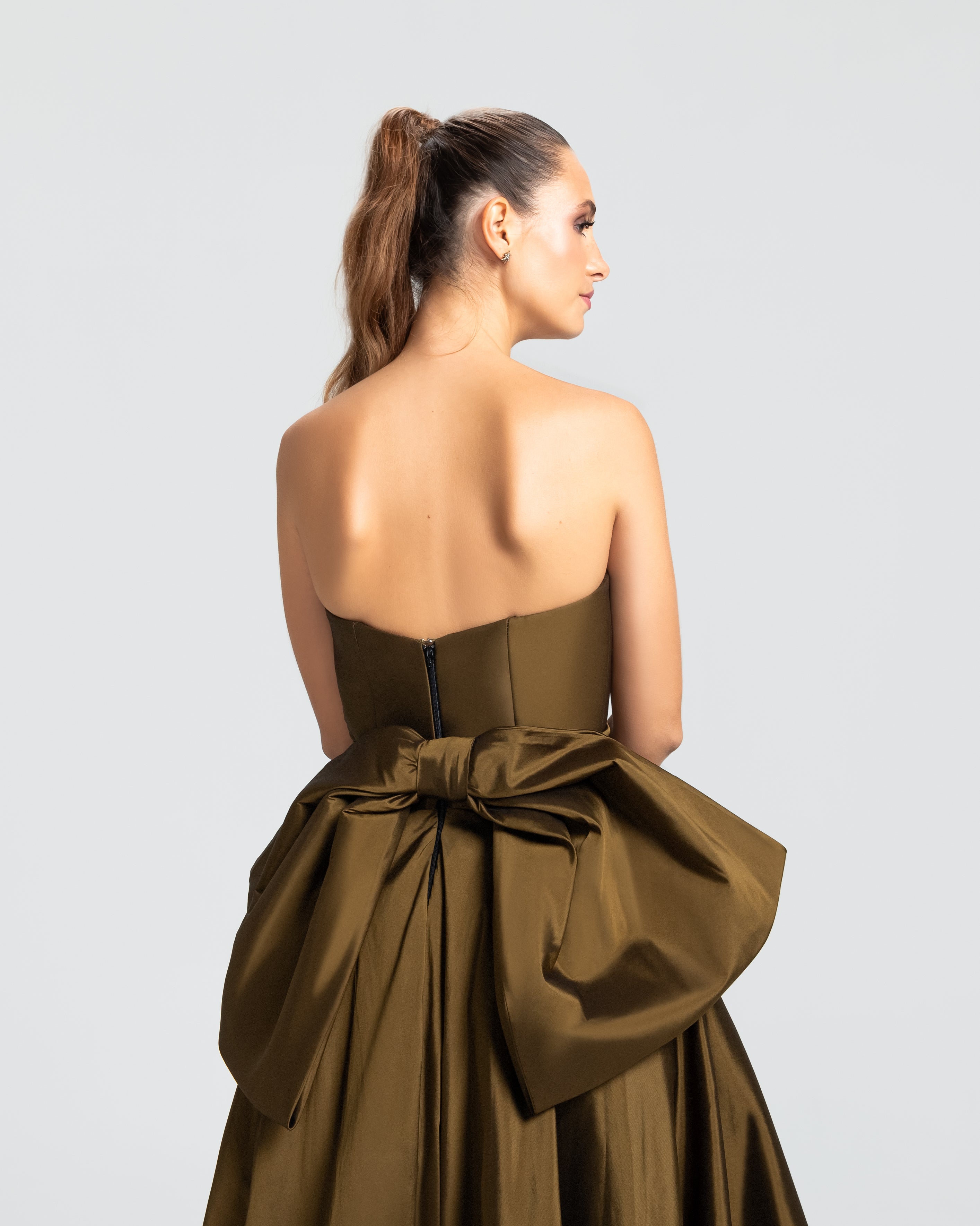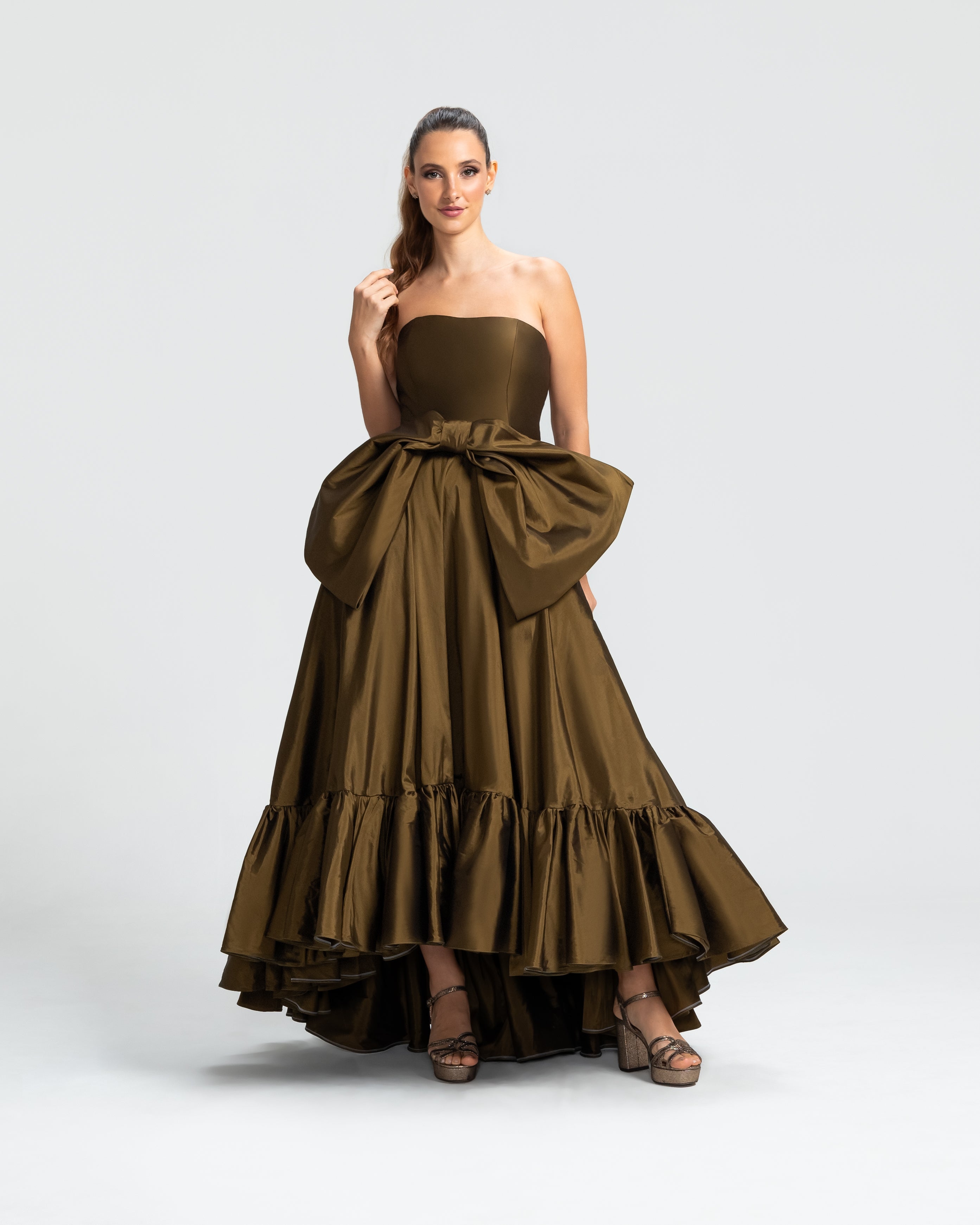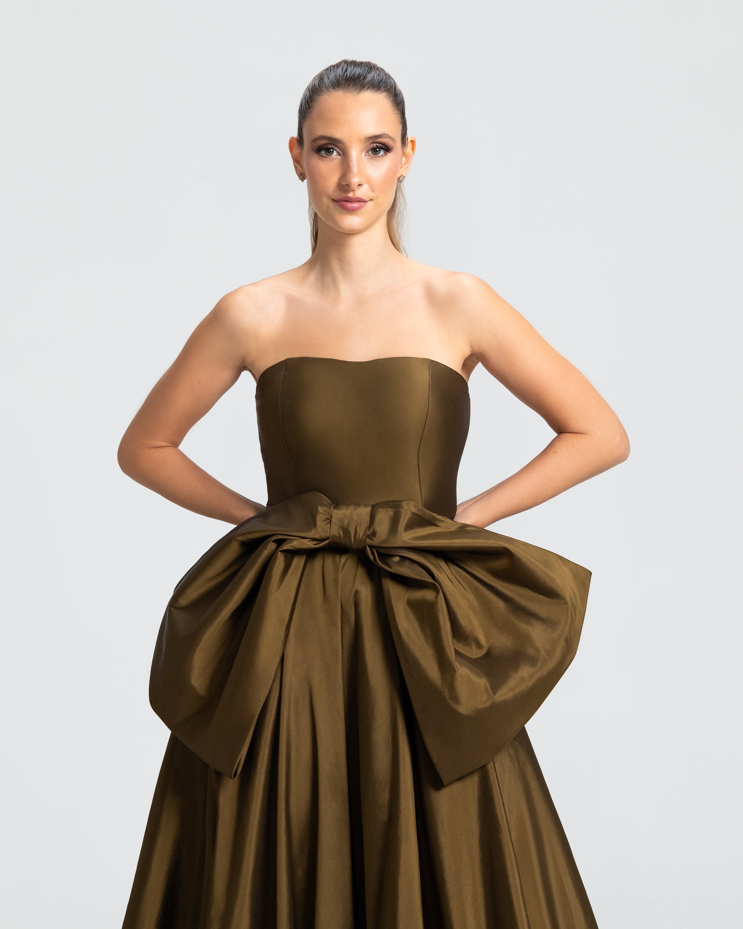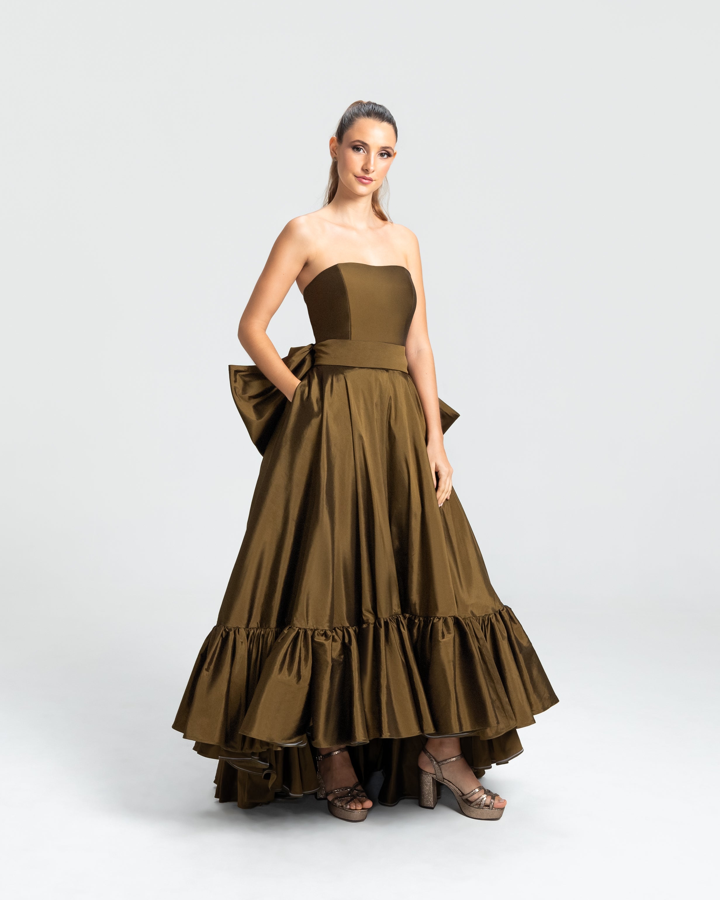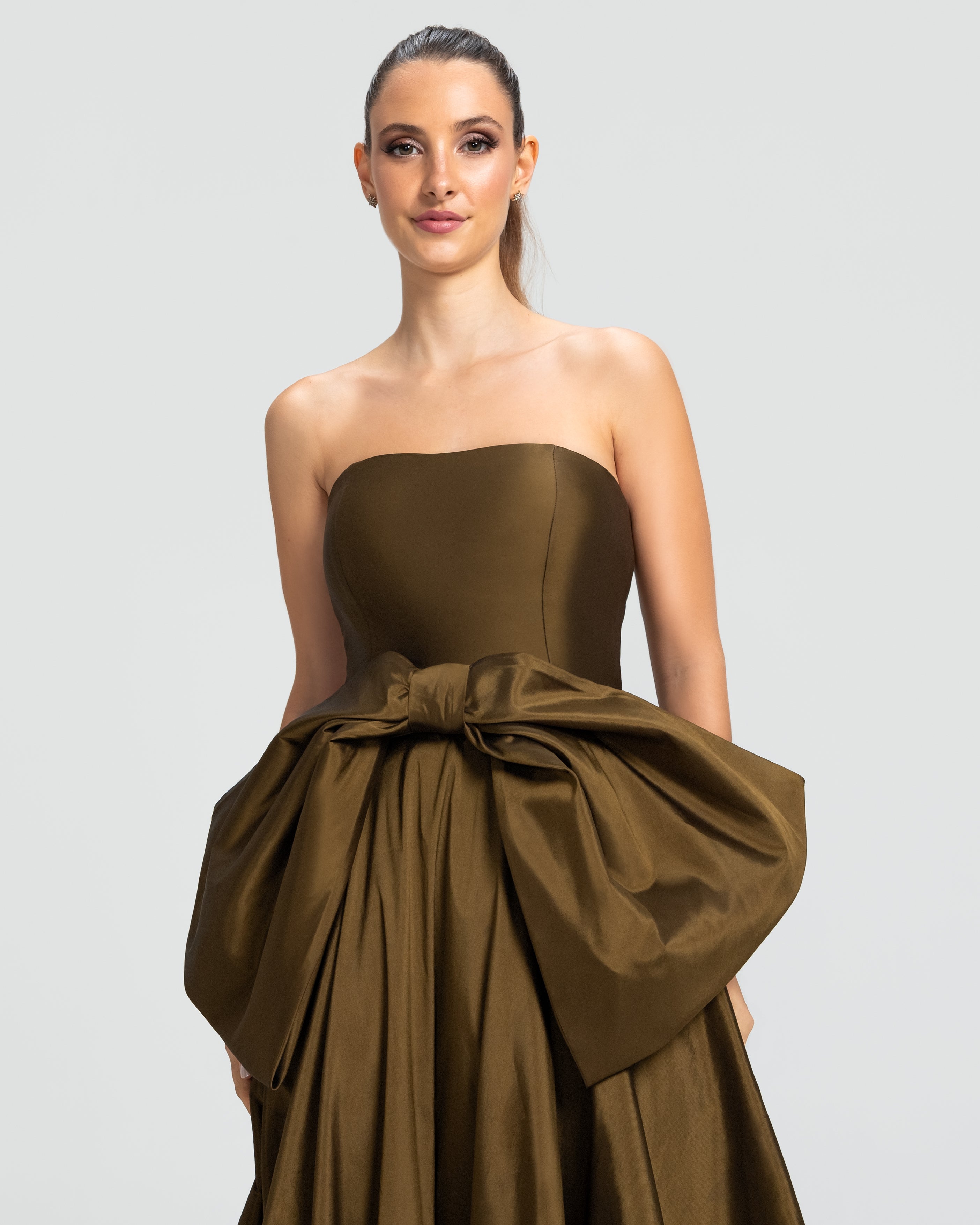 Vestido Longo em Tafetá Tomara que Caia com Laço Gigante – REF: EG58