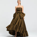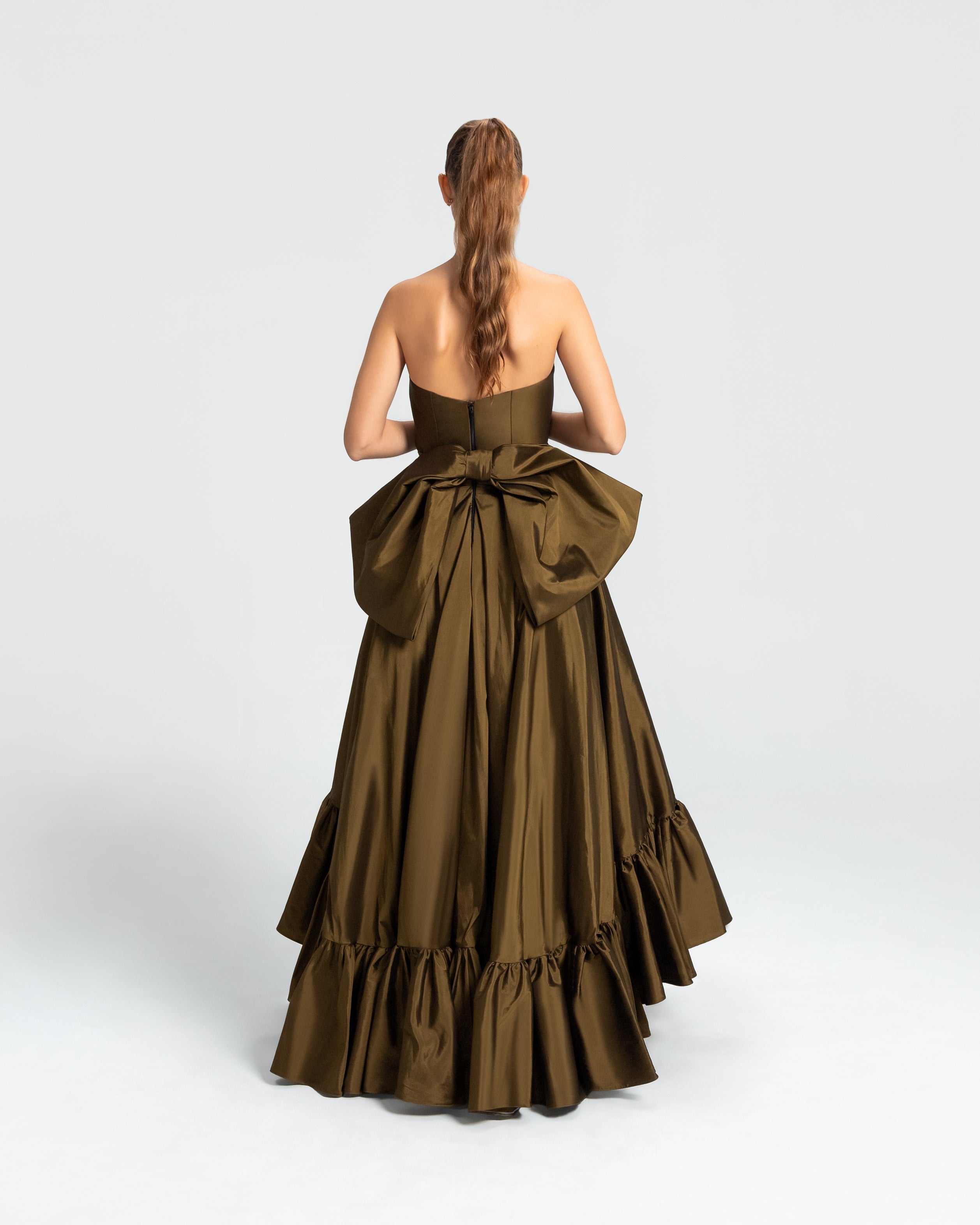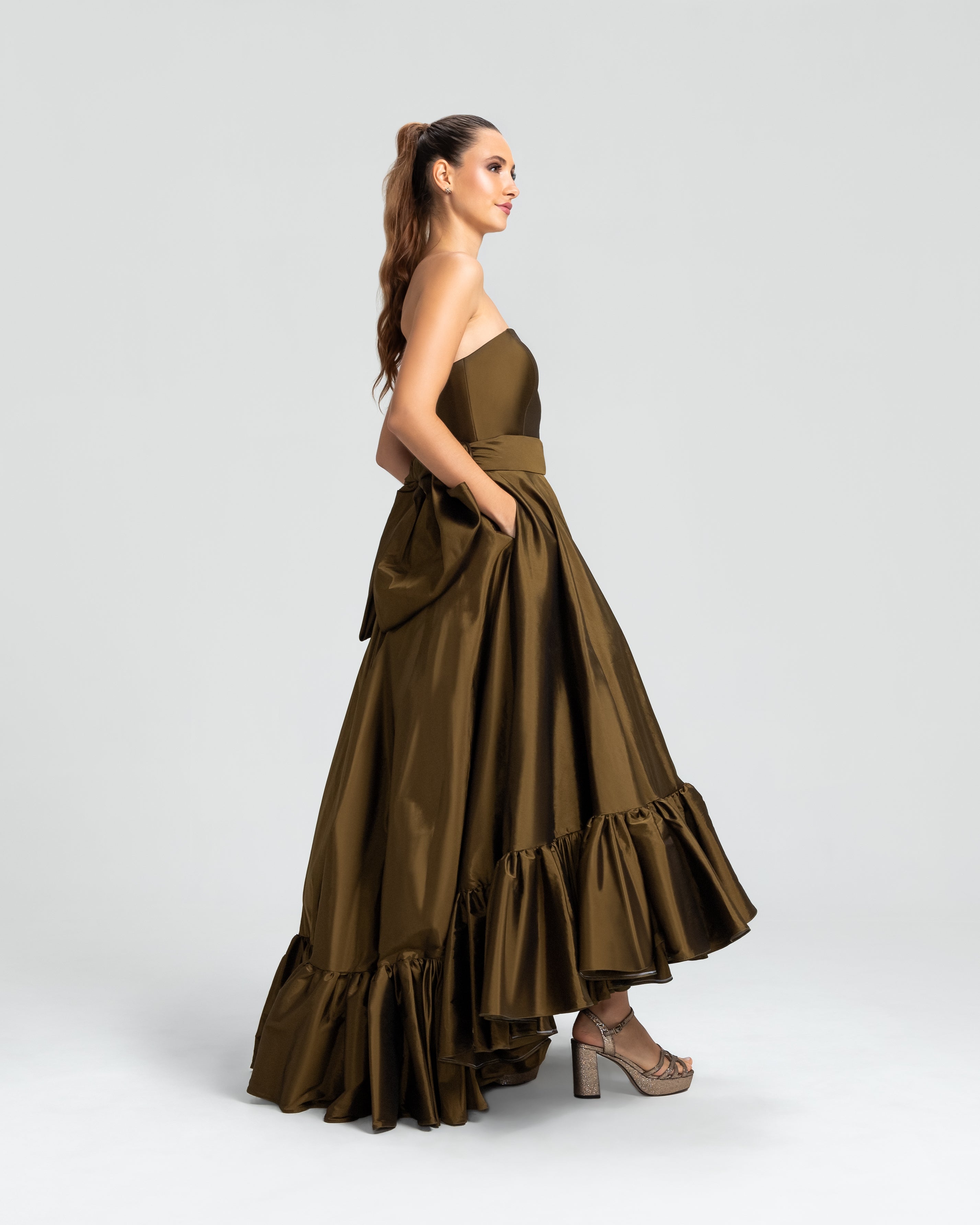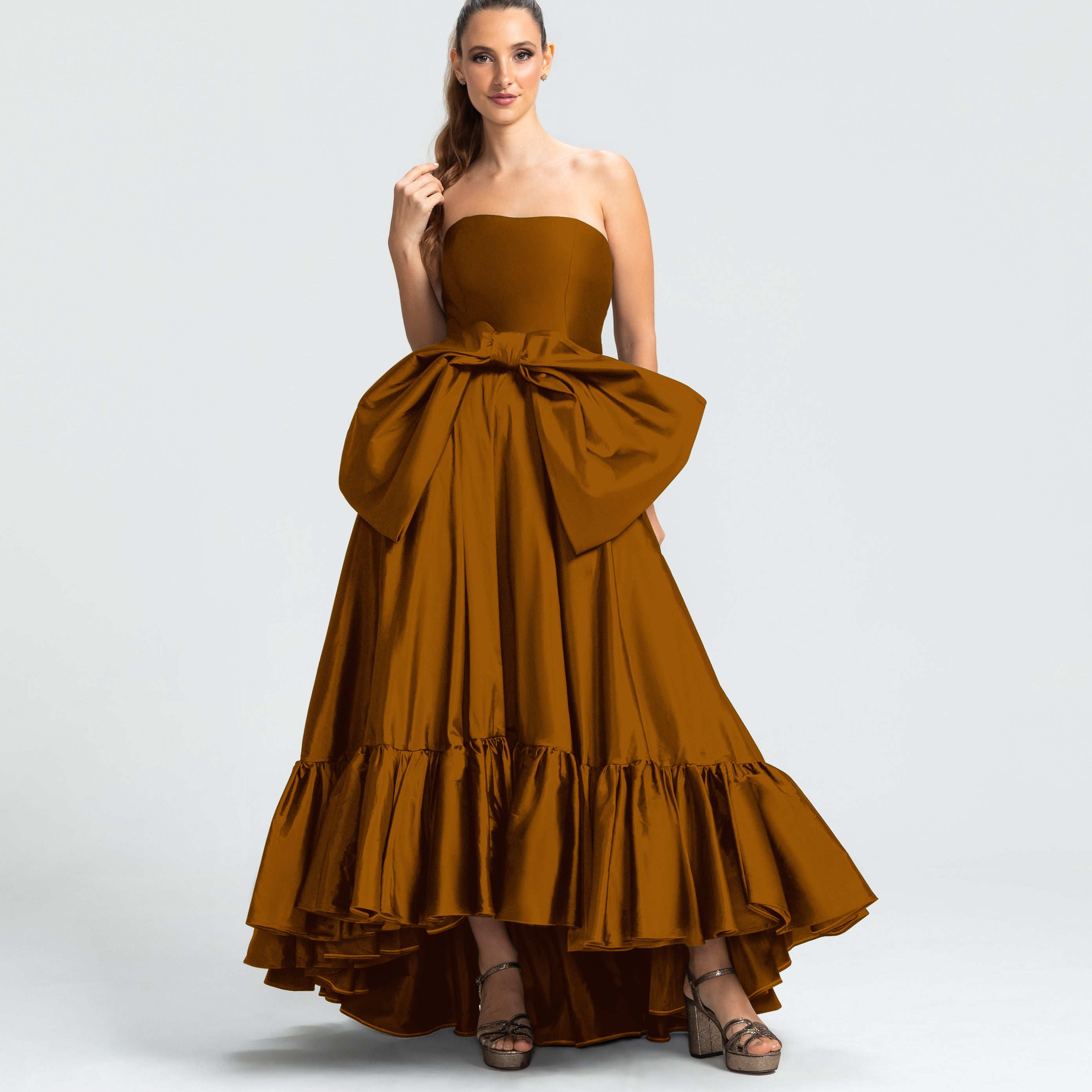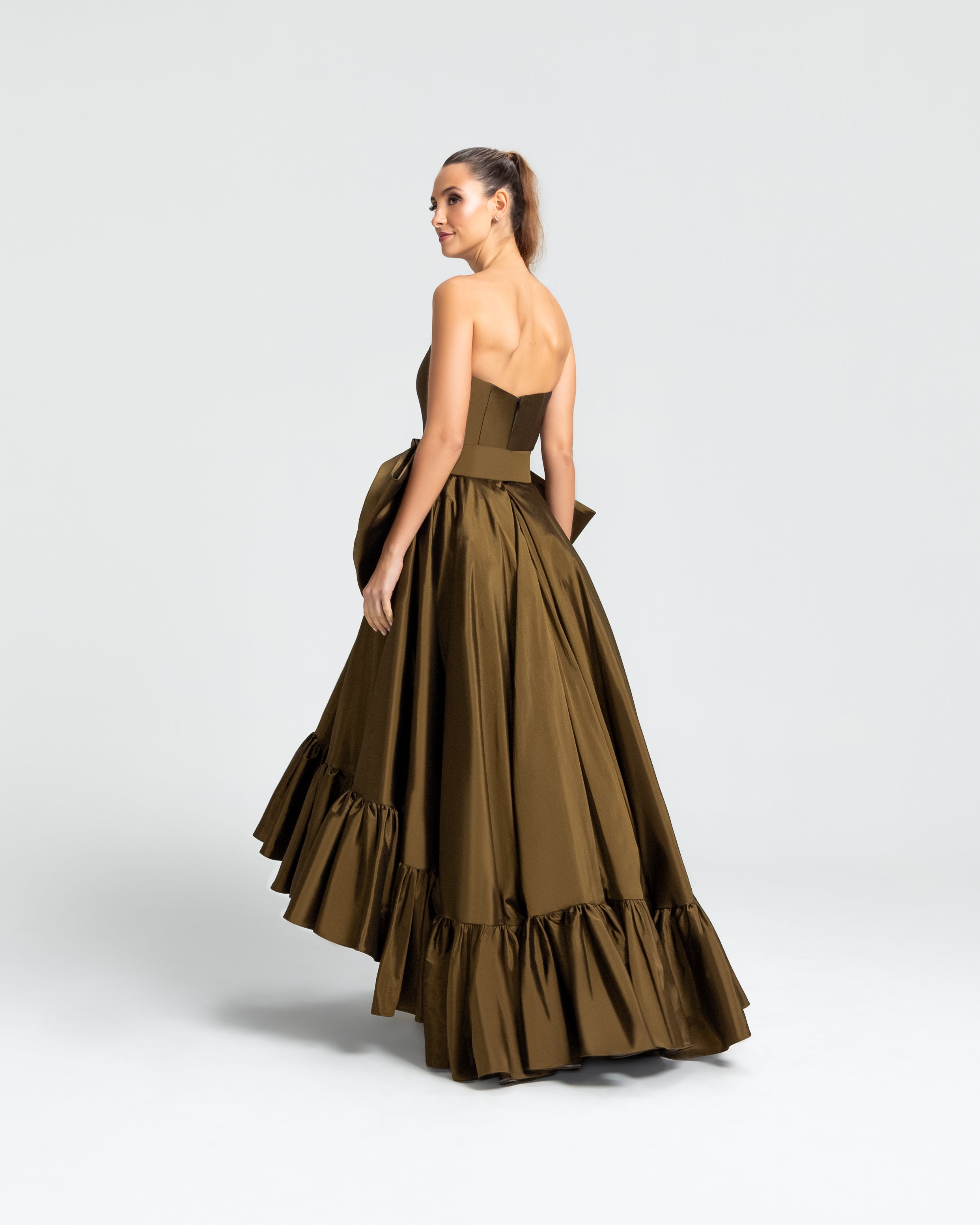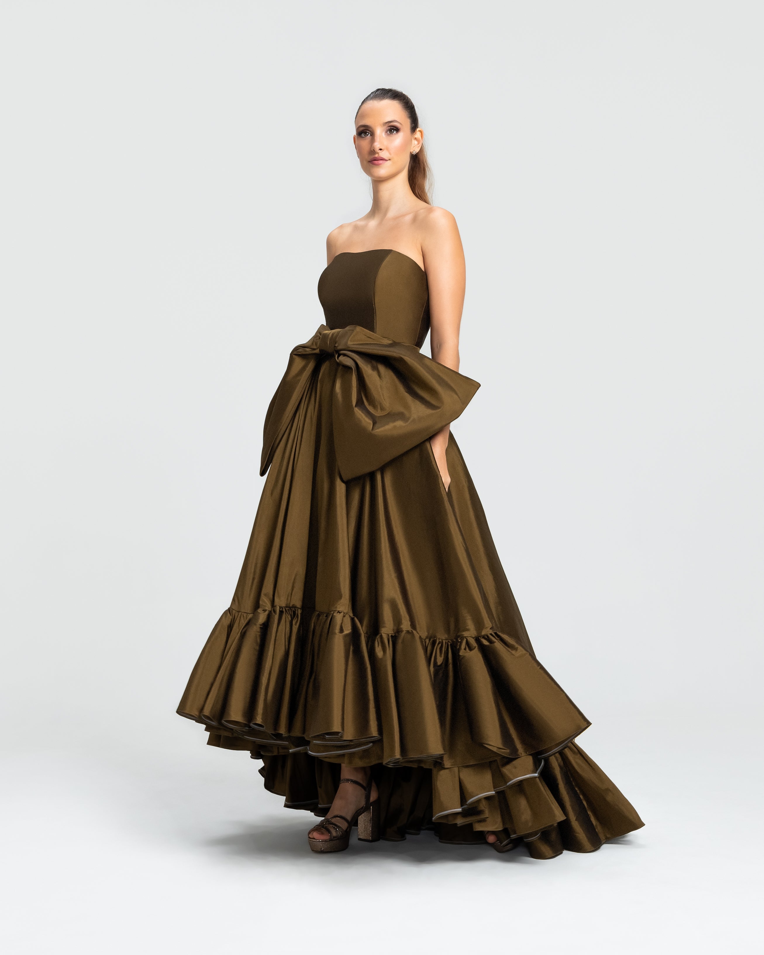 Vestido Longo em Tafetá Tomara que Caia com Laço Gigante – REF: EG58