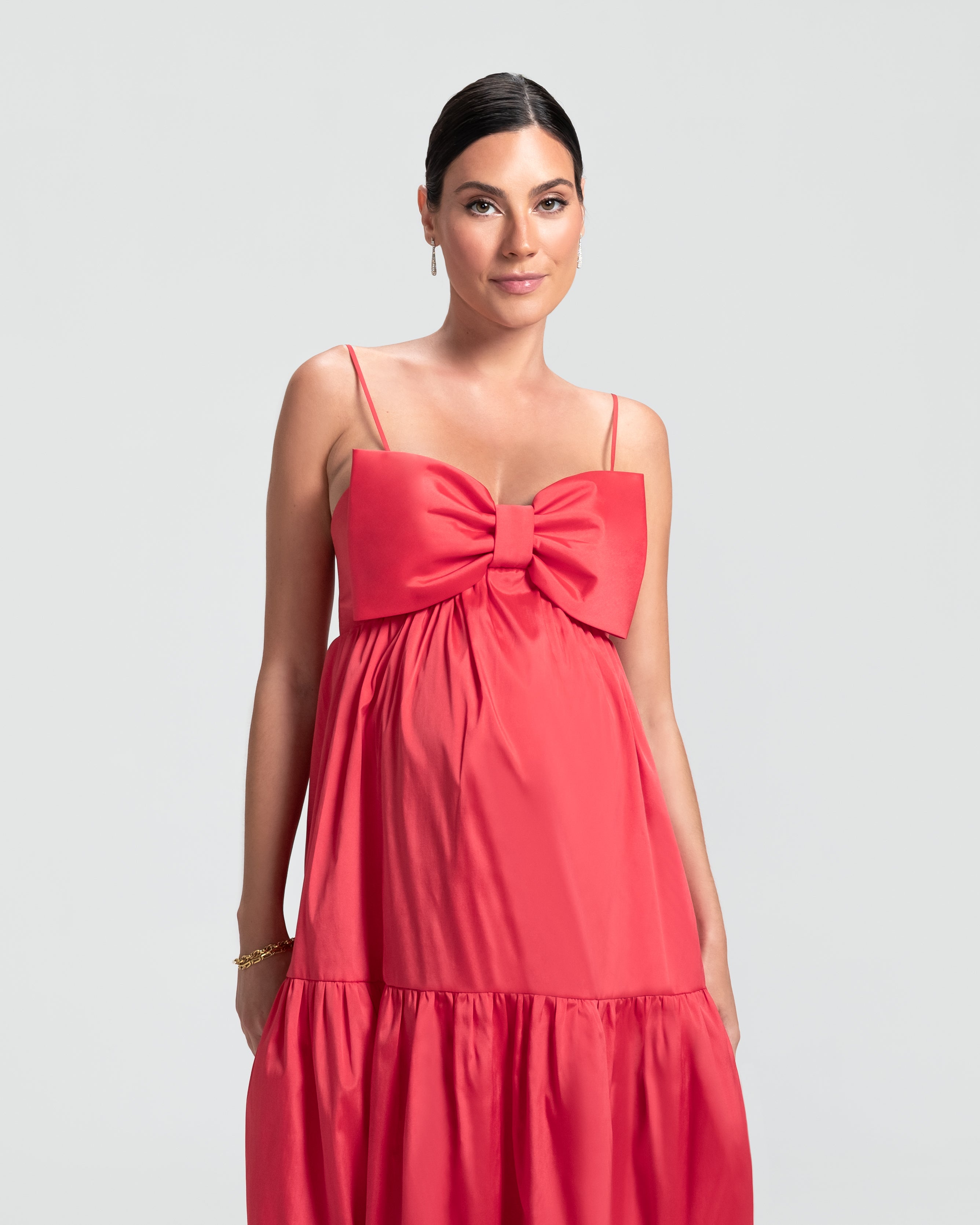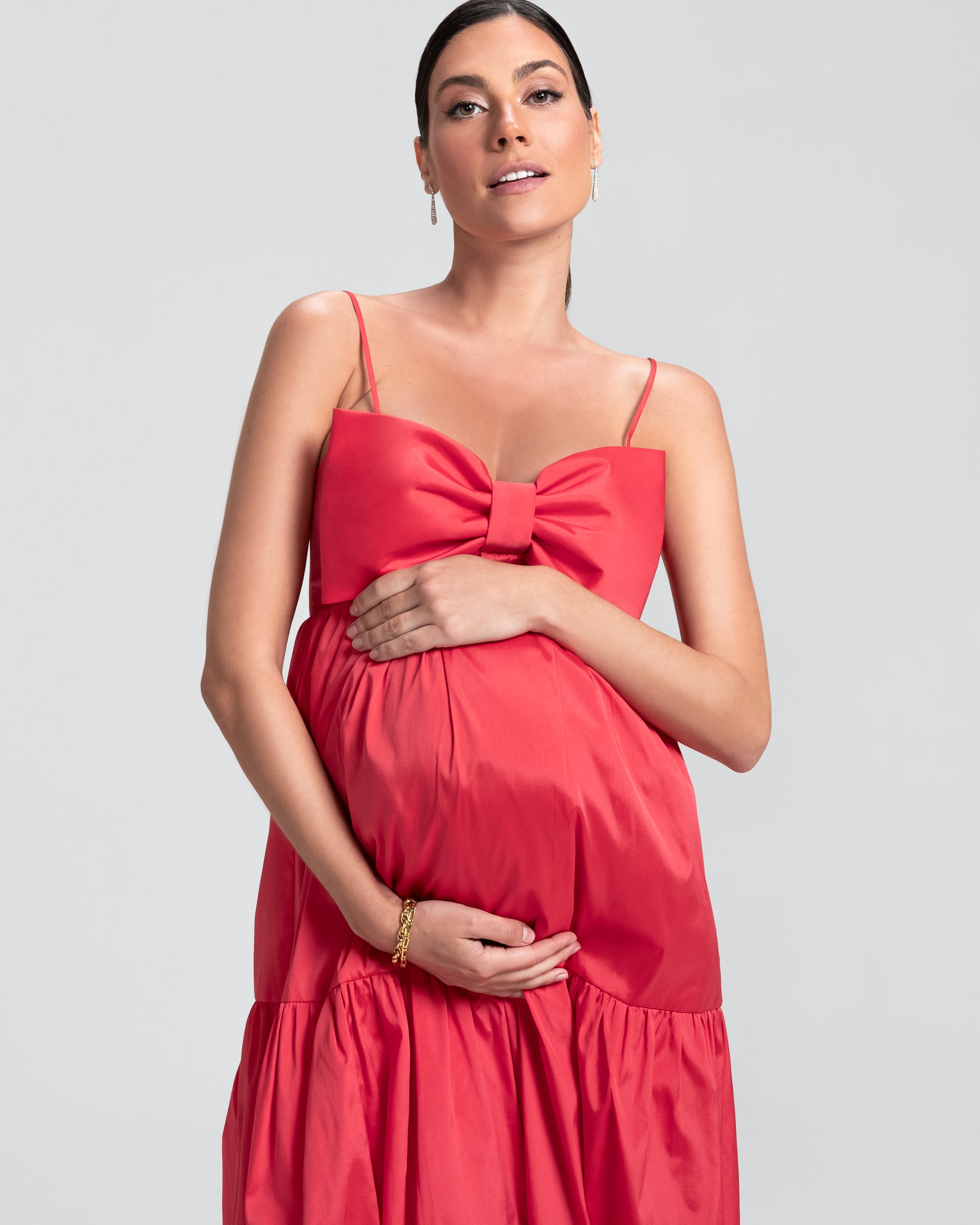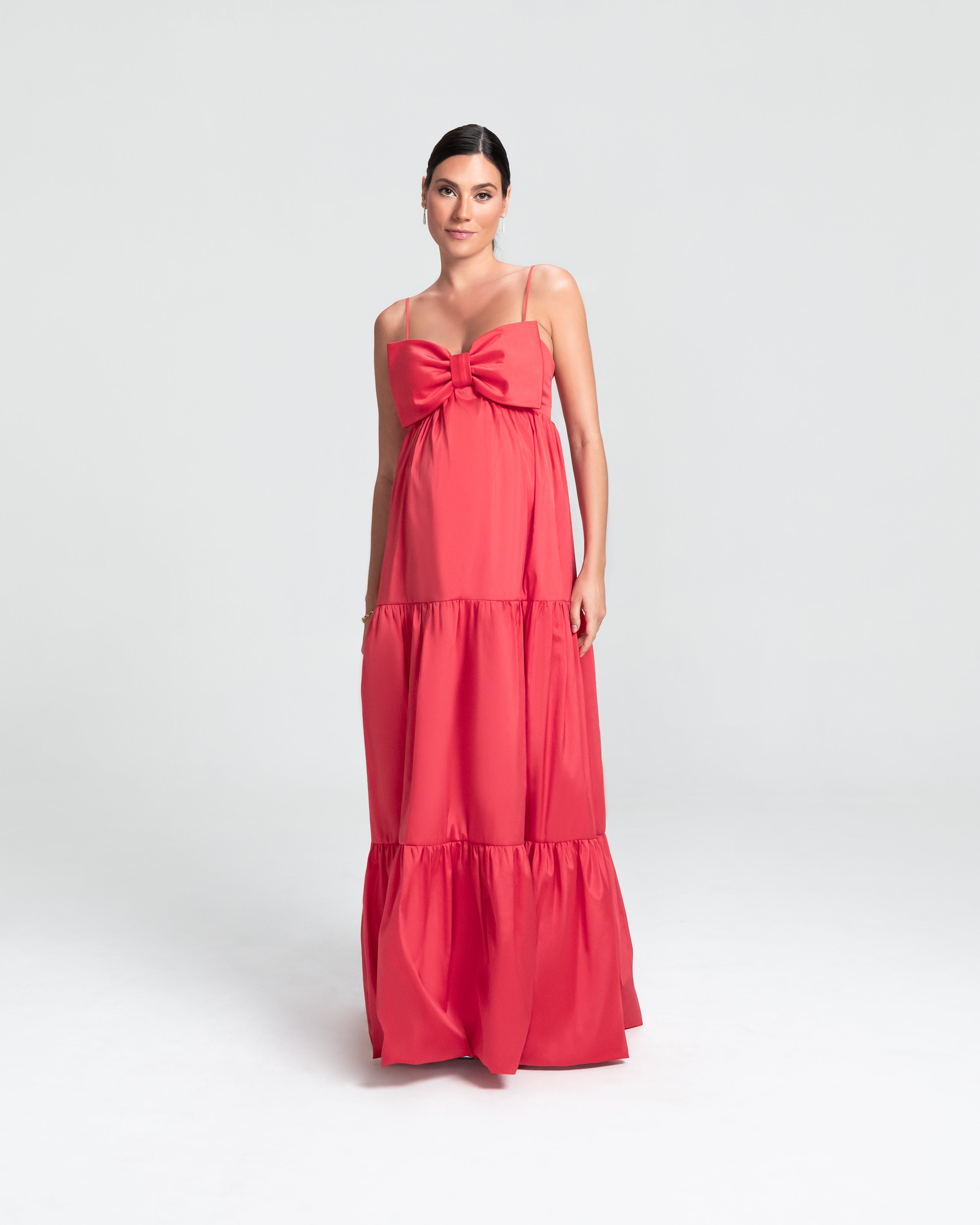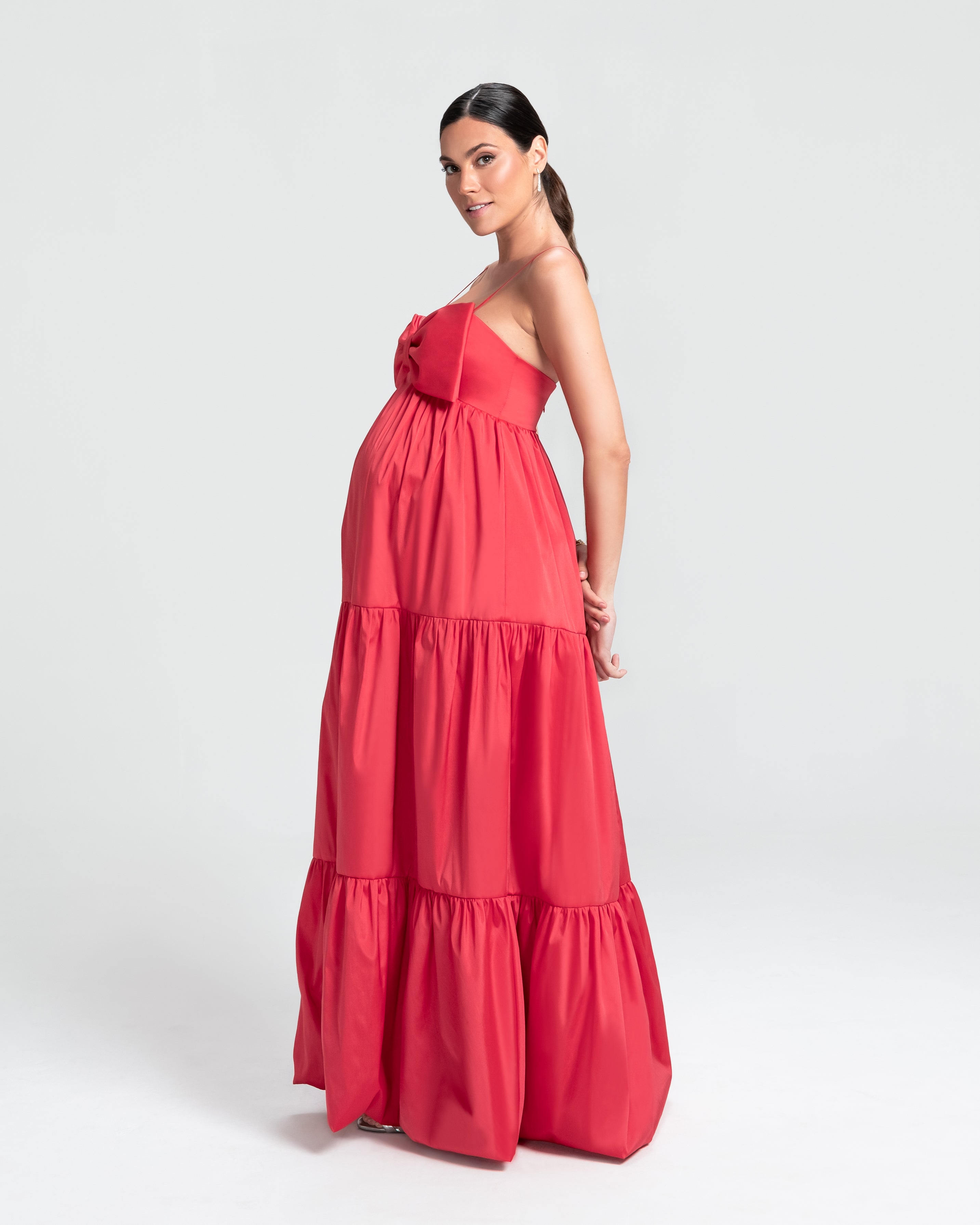 Elegante e despojado, este vestido apresenta um corpo solto no estilo império, sem cintura marcada, garantindo leveza e conforto. A saia em camadas estilo marias cria um movimento fluido, enquanto o laço moderno e charmoso no busto adiciona um toque sofisticado. Ideal para quem busca um vestido jovial sem perder a elegância. Por ser soltinho é perfeito para gestantes que podem aproveitar o vestido durante toda gravidez, e seguir usando depois.