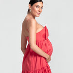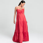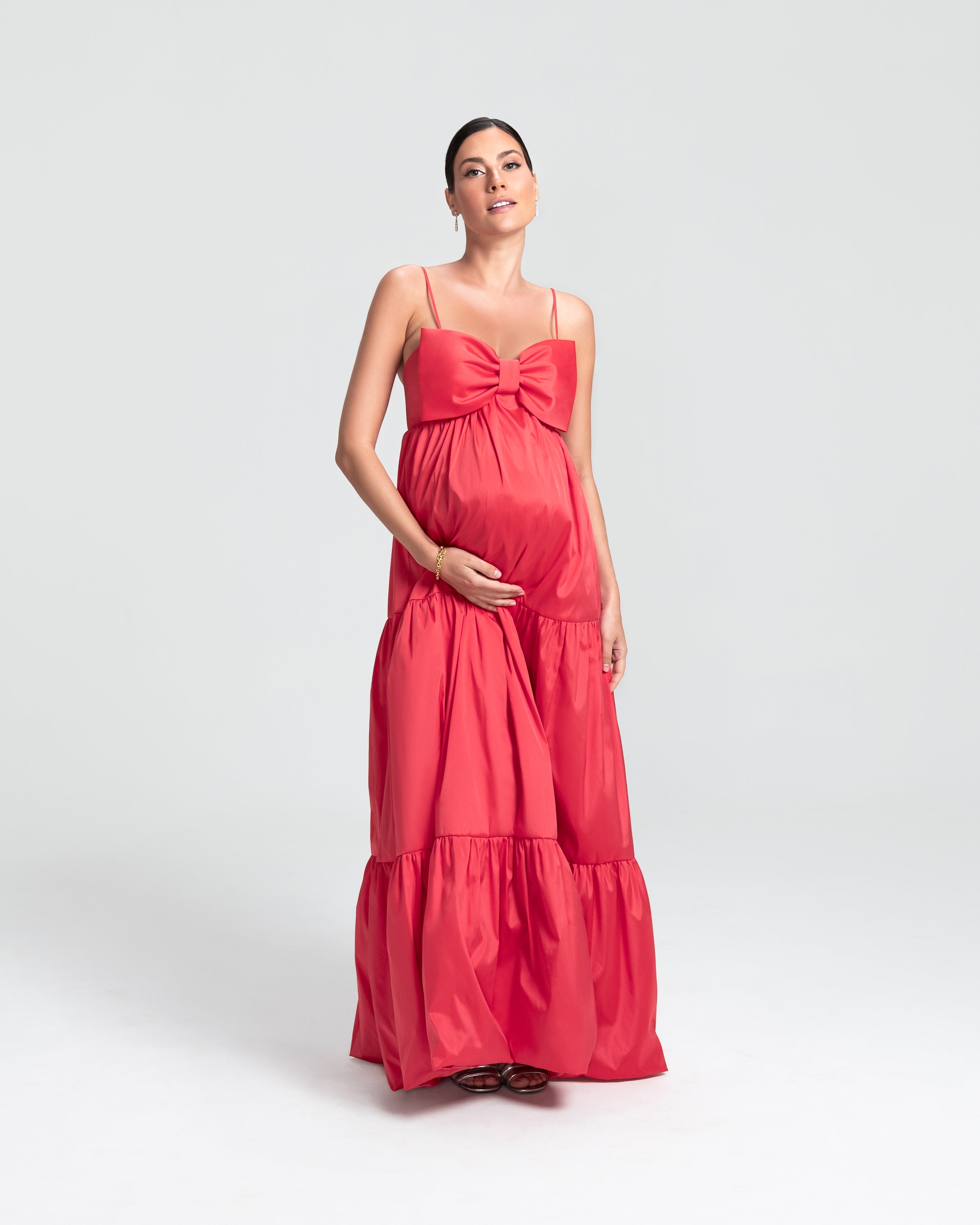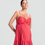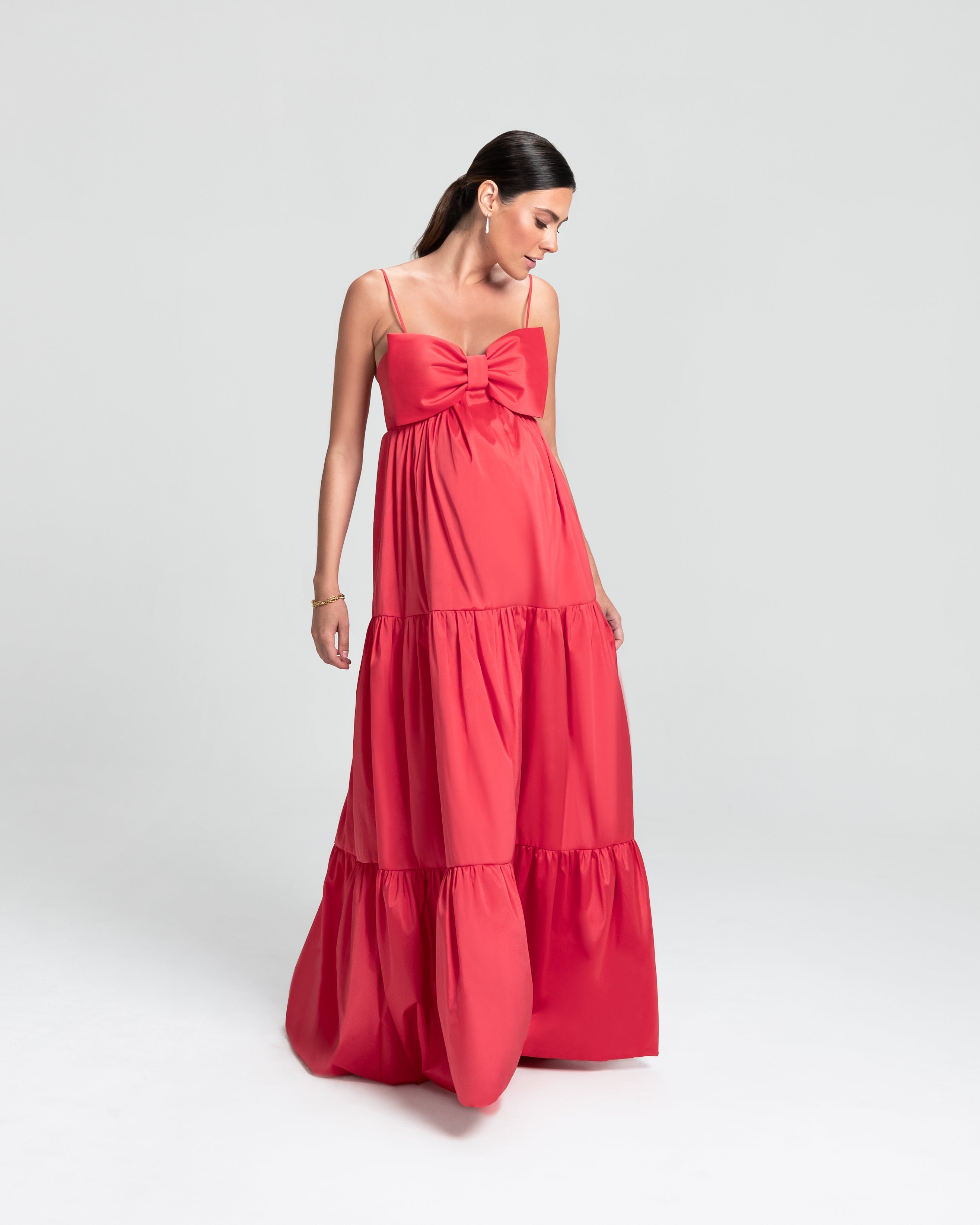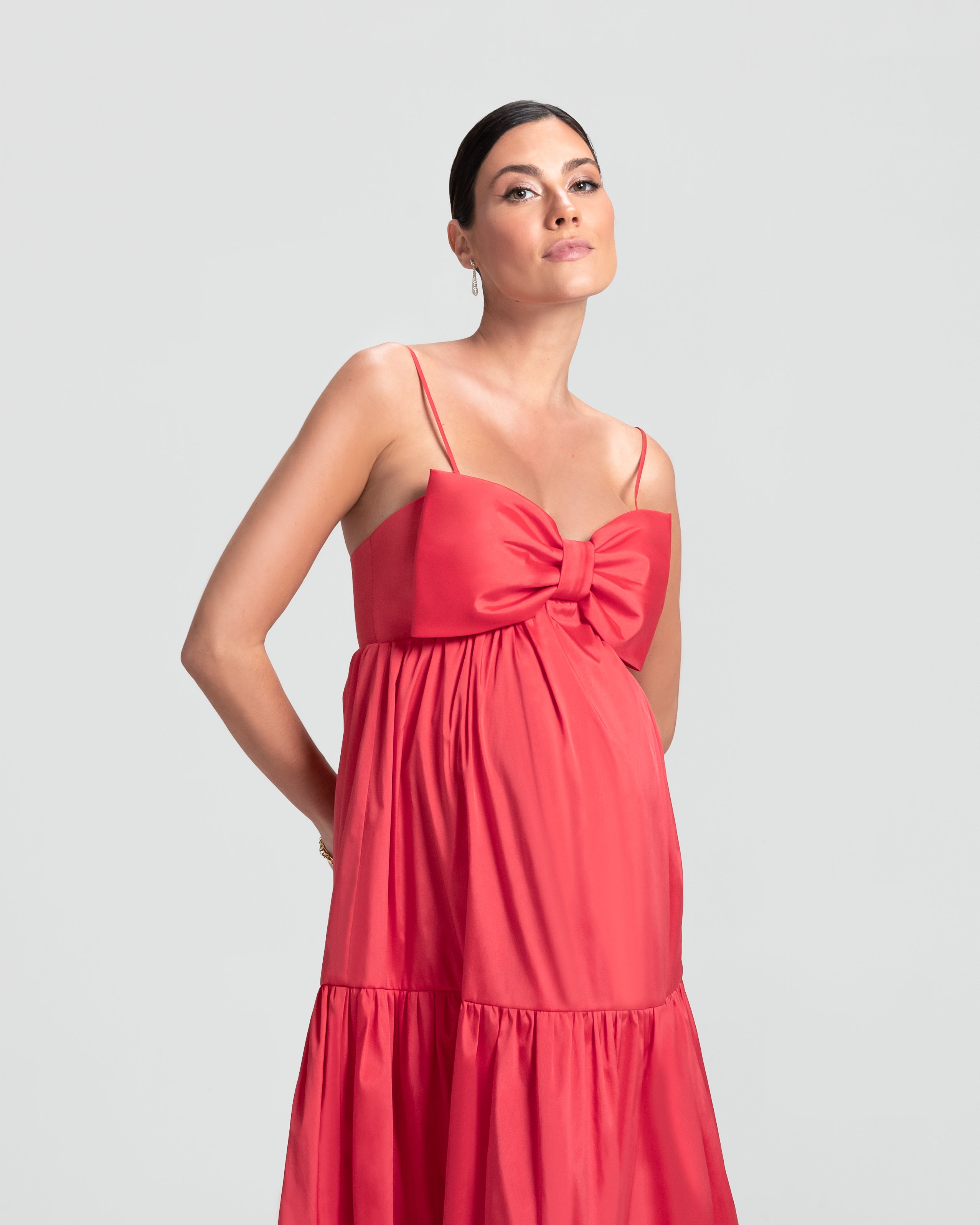 Elegante e despojado, este vestido apresenta um corpo solto no estilo império, sem cintura marcada, garantindo leveza e conforto. A saia em camadas estilo marias cria um movimento fluido, enquanto o laço moderno e charmoso no busto adiciona um toque sofisticado. Ideal para quem busca um vestido jovial sem perder a elegância. Por ser soltinho é perfeito para gestantes que podem aproveitar o vestido durante toda gravidez, e seguir usando depois.