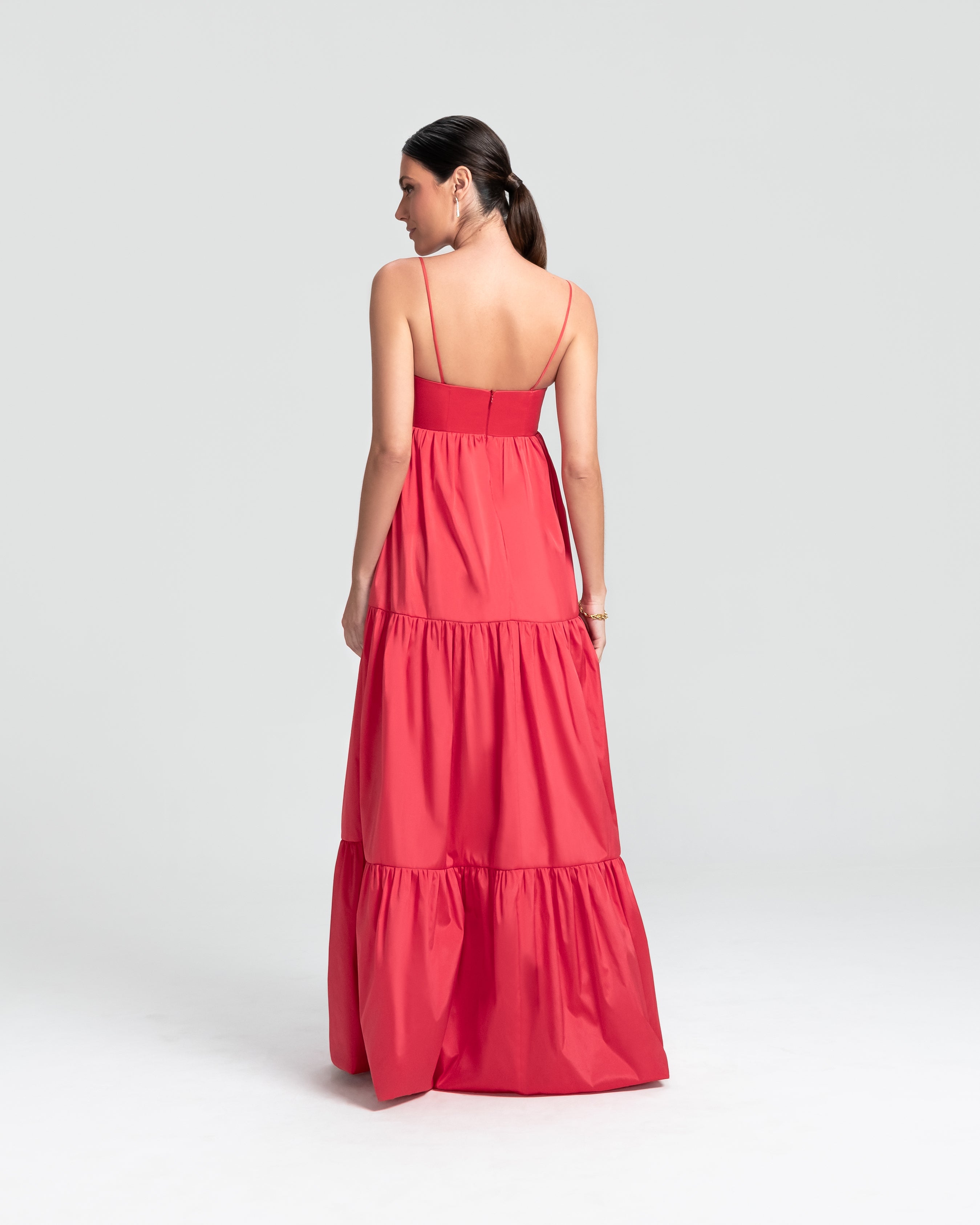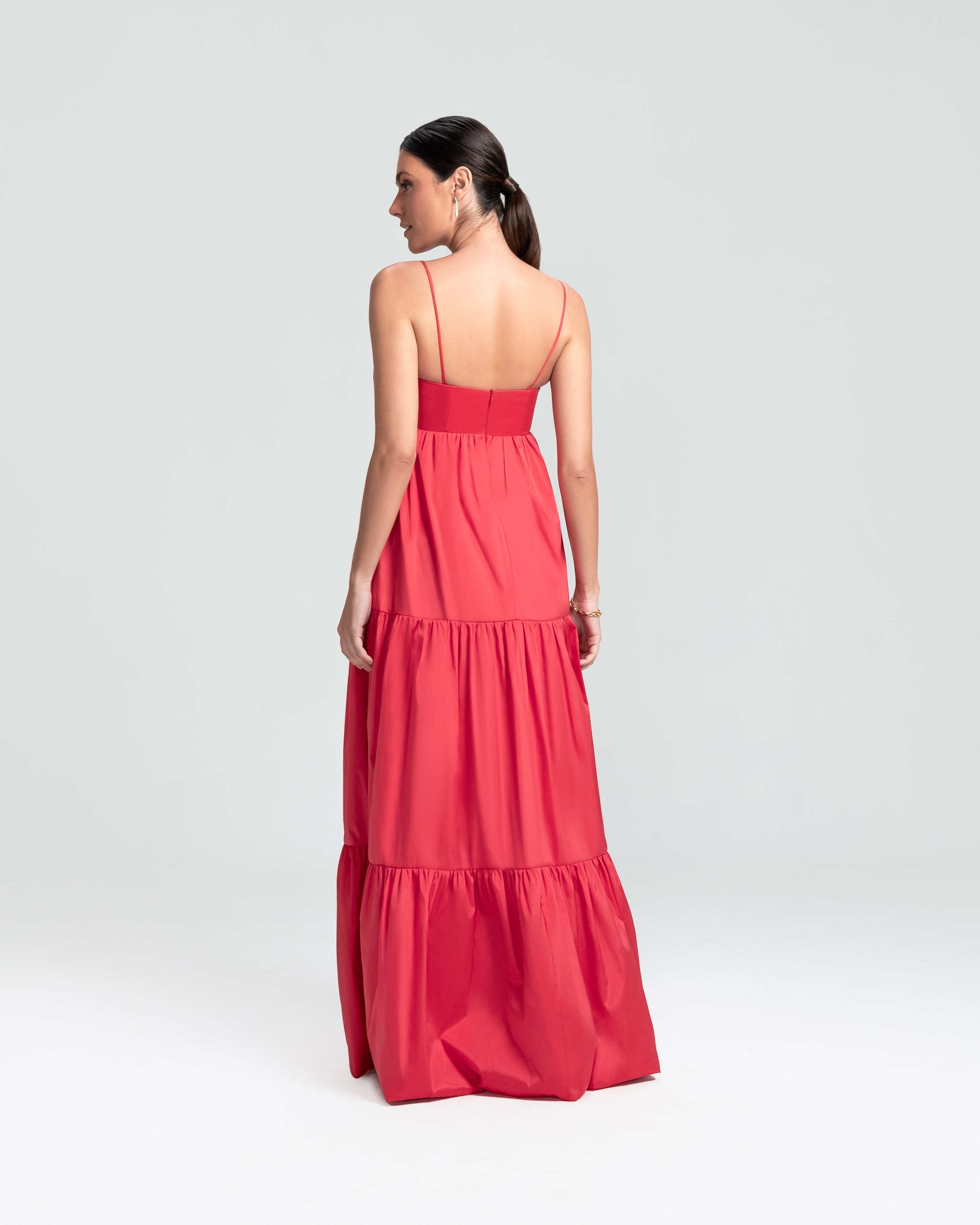 Vestido Longo em Tafetá Tomara que Caia com Saia em Camadas – REF: EG41