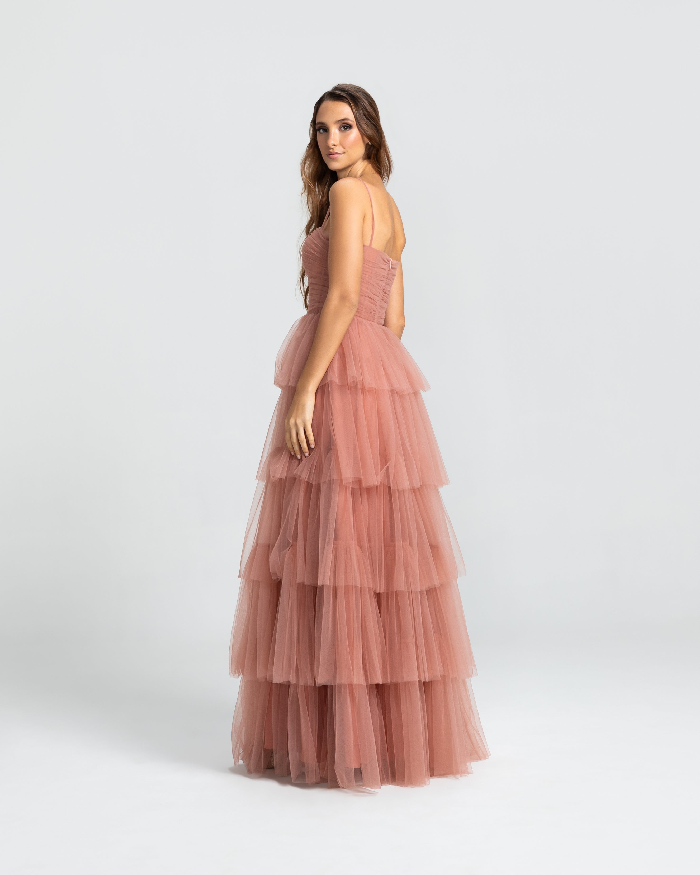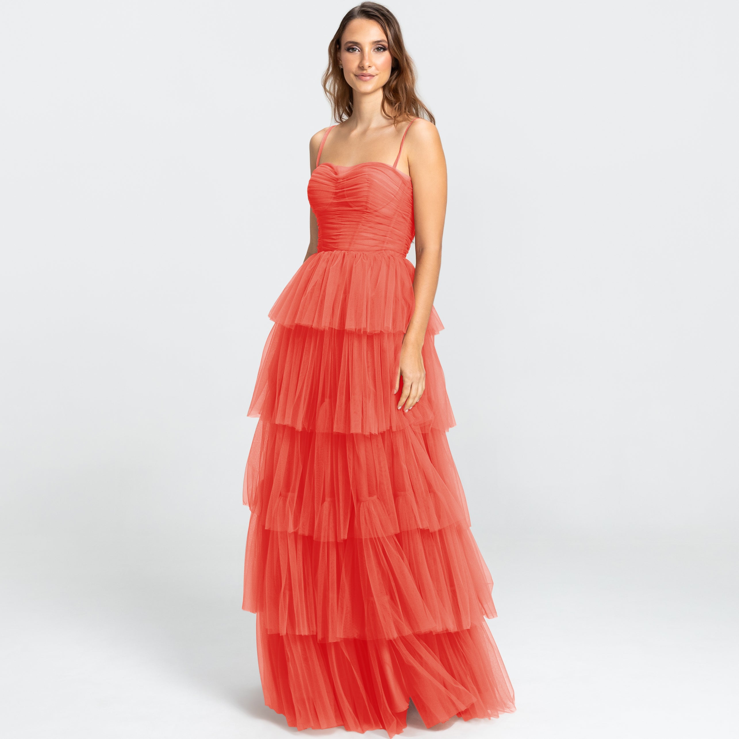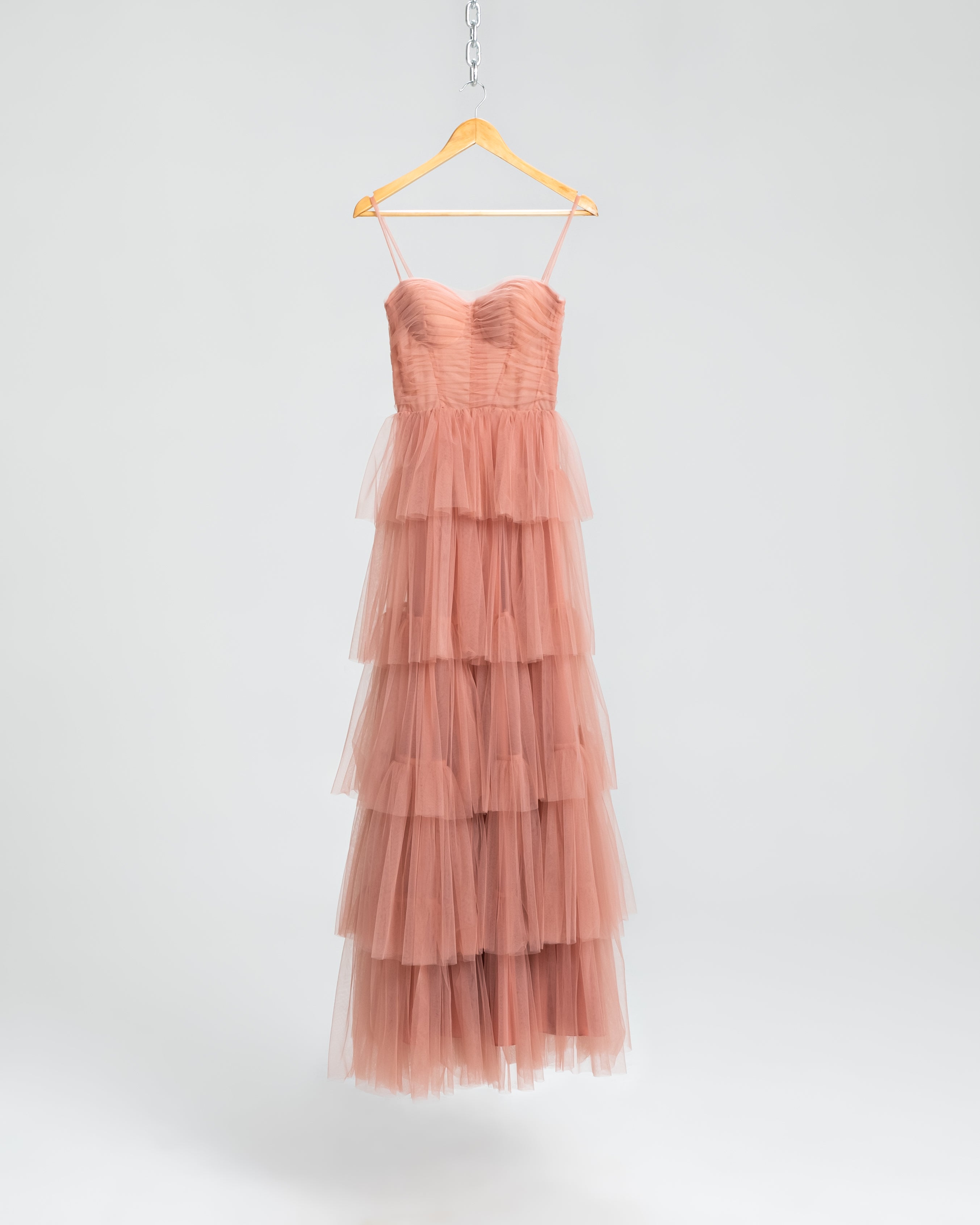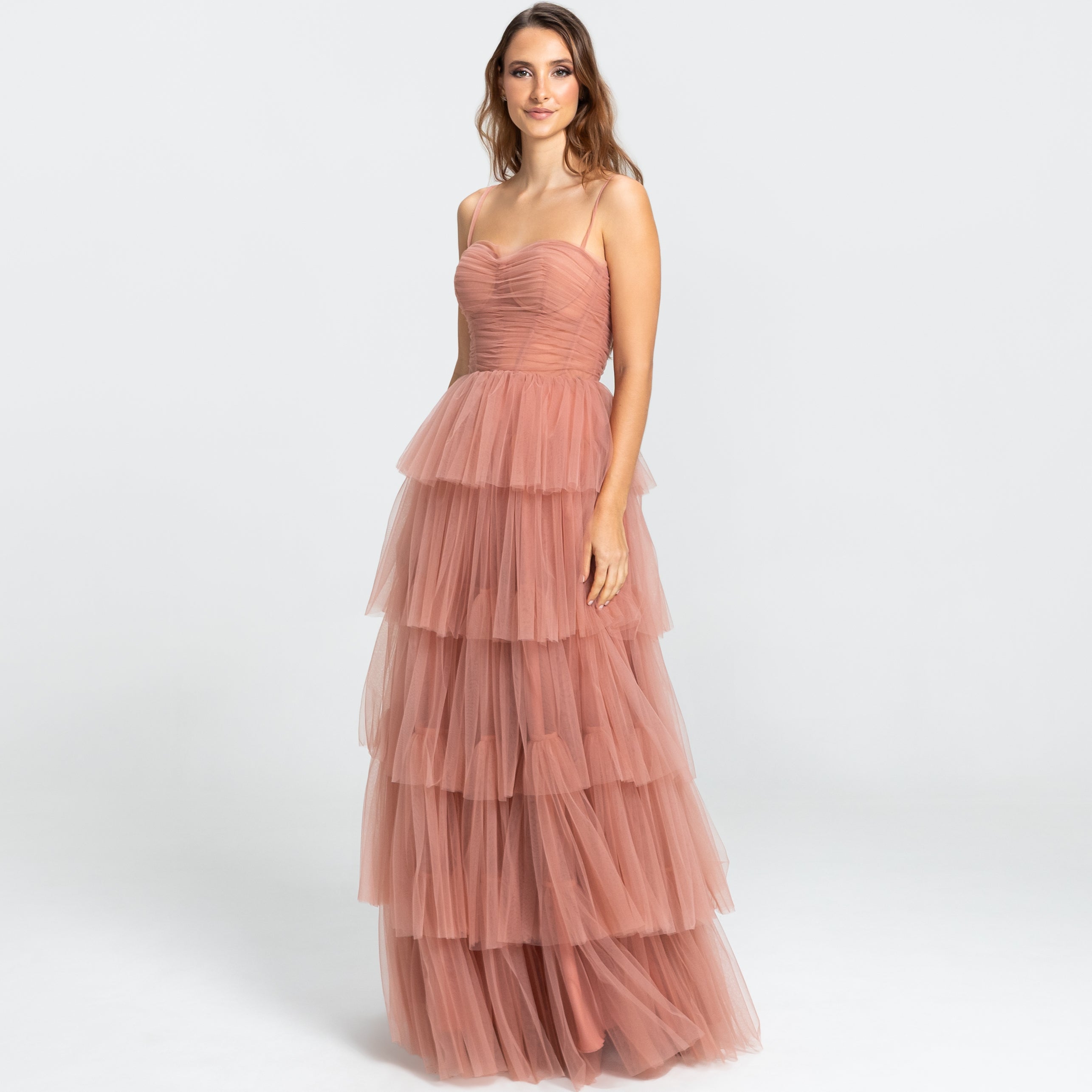 Nossos vestidos longos têm, por padrão, 117 cm de comprimento de saia, medidos a partir da cintura.