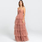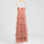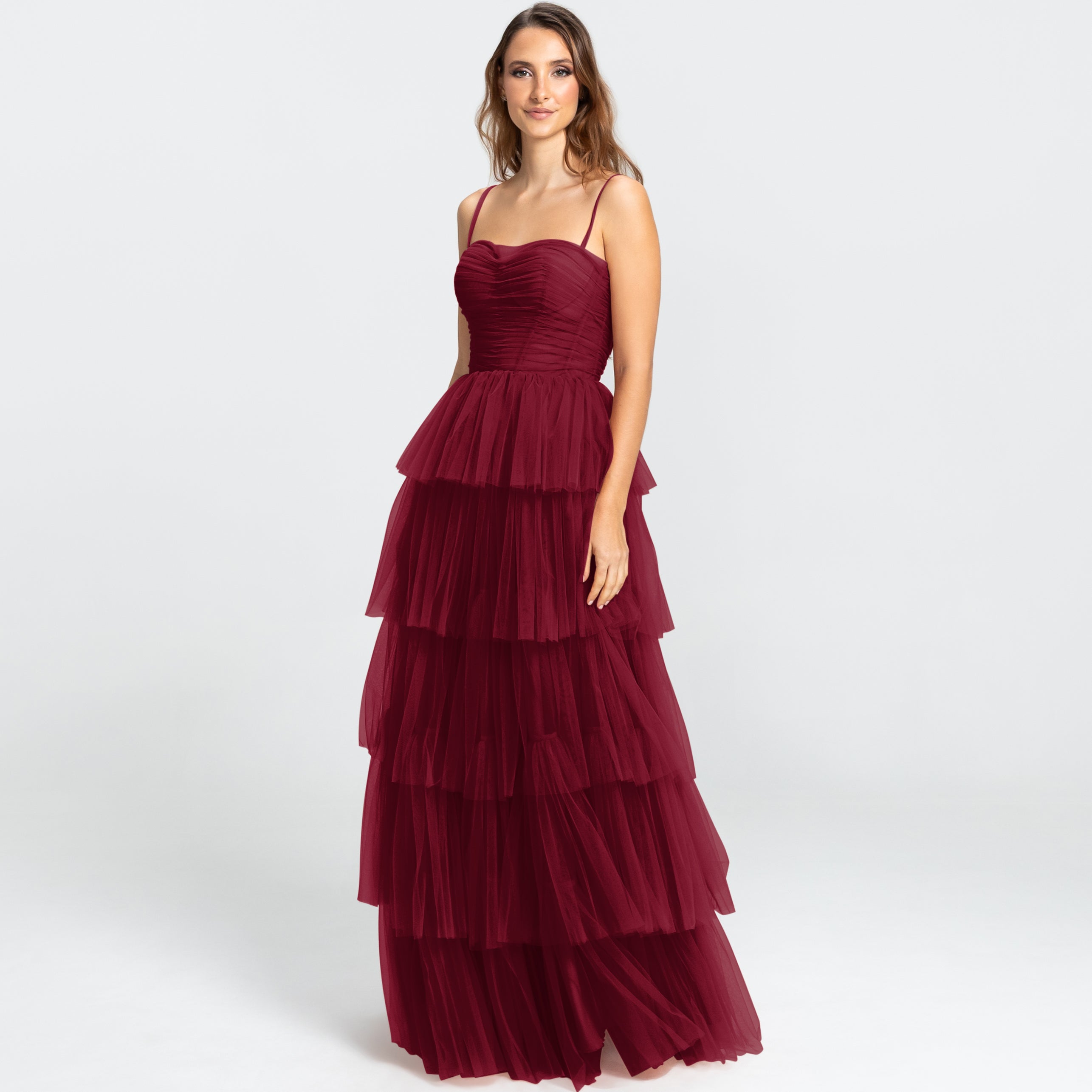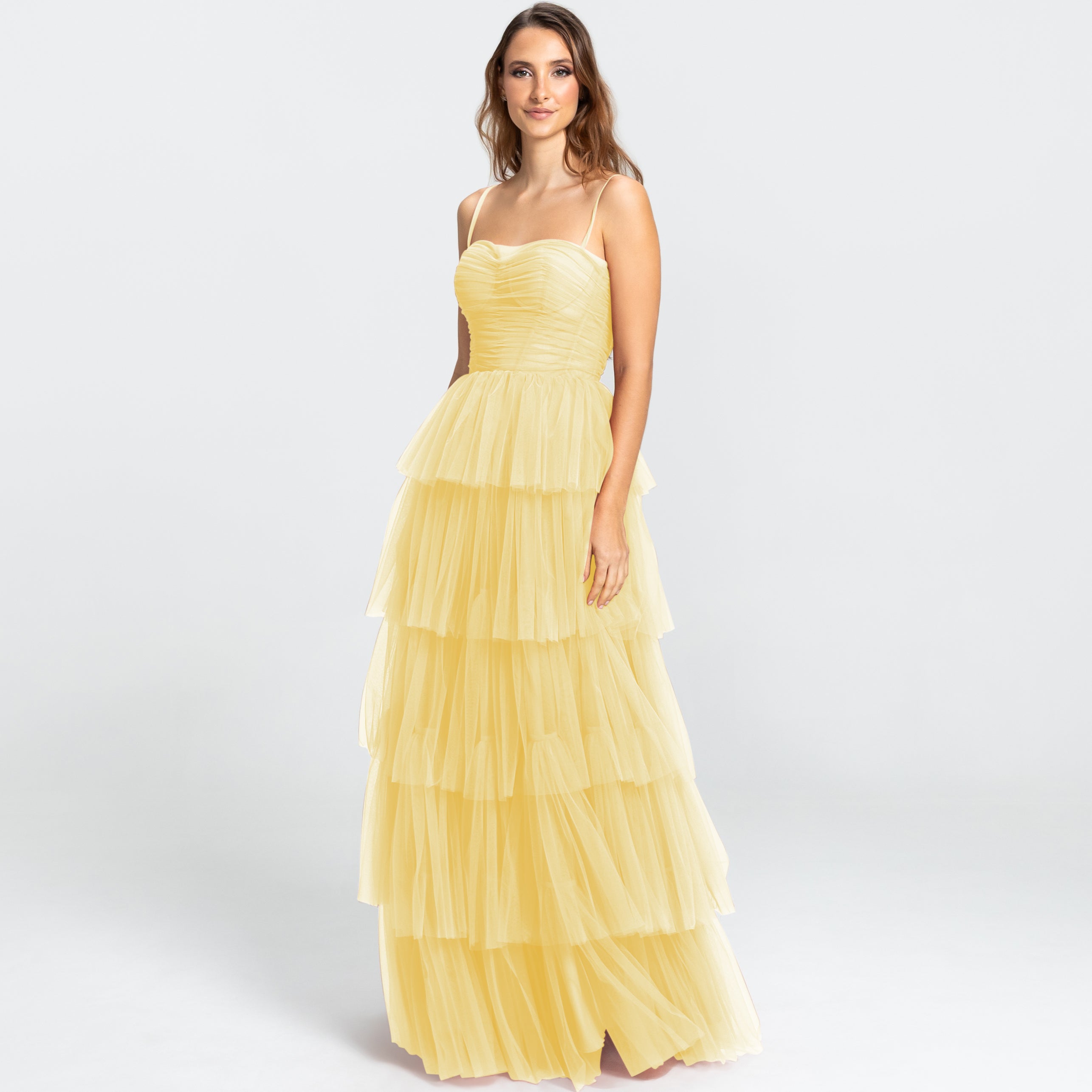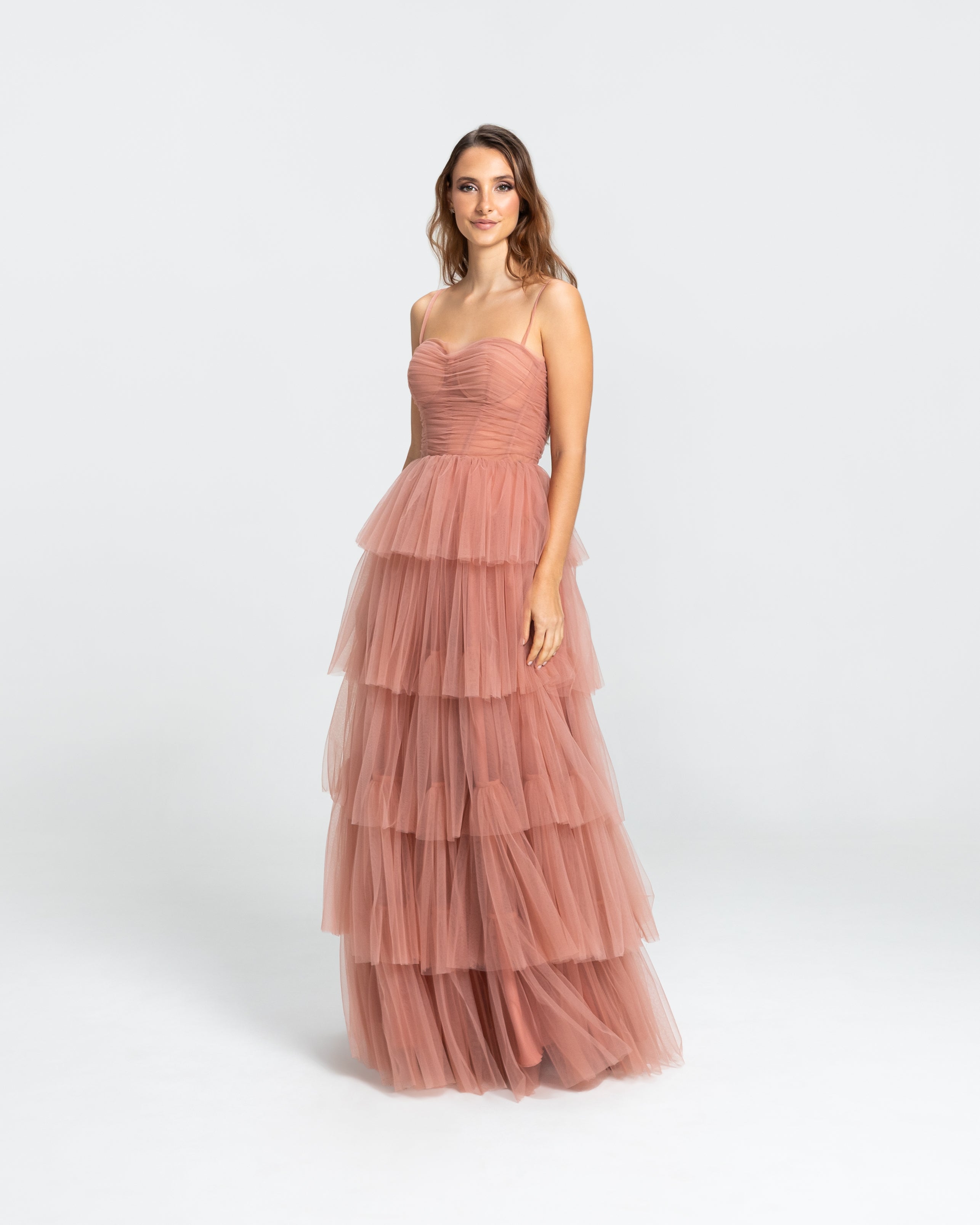 Nossos vestidos longos têm, por padrão, 117 cm de comprimento de saia, medidos a partir da cintura.