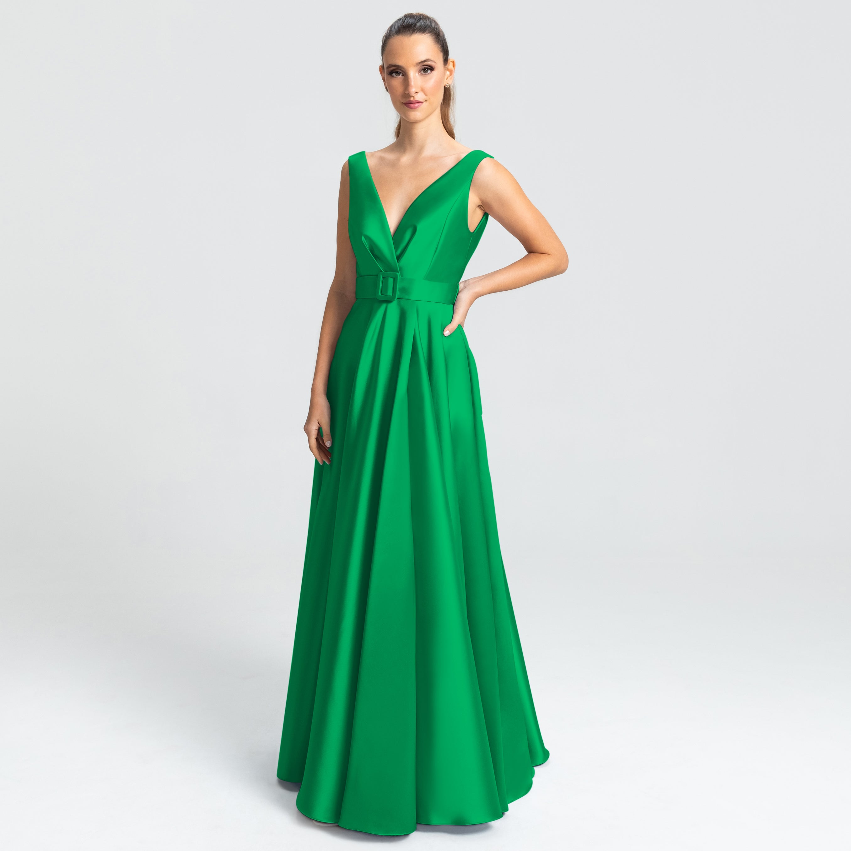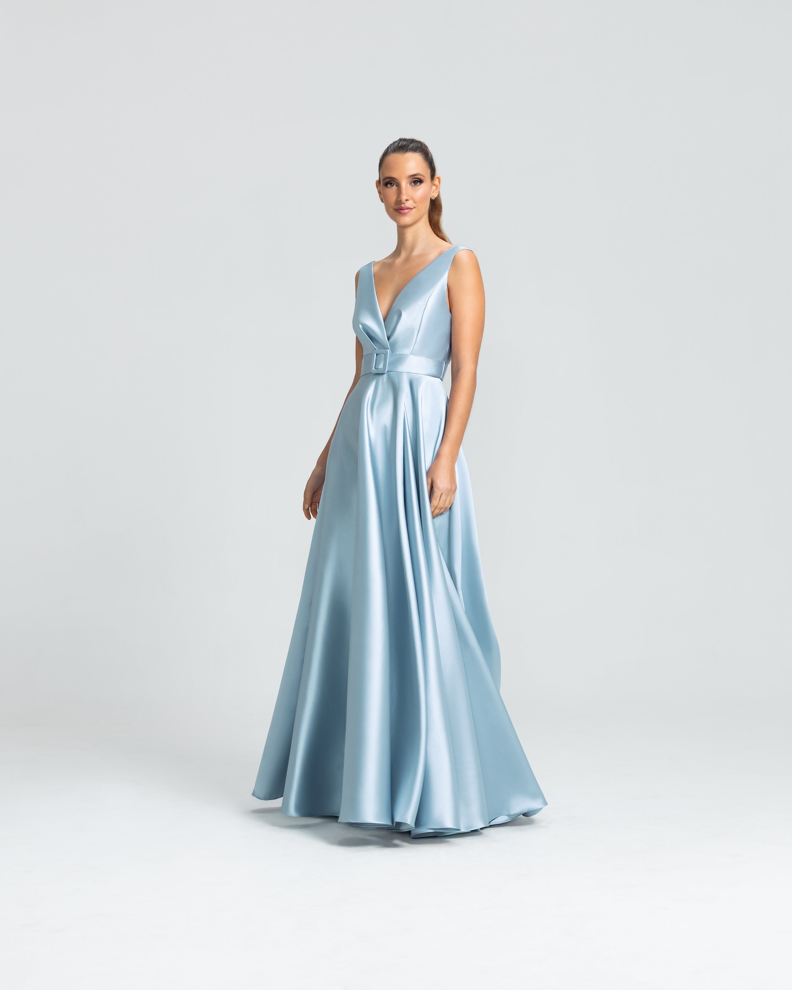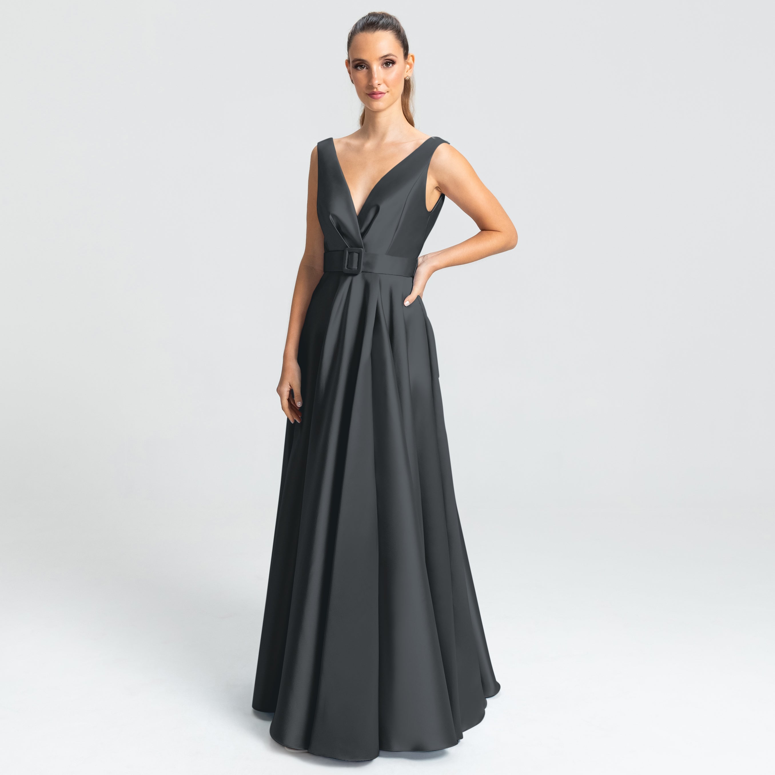 Vestido Longo em Zibeline com Decote Profundo e cinto – REF: EG09/2