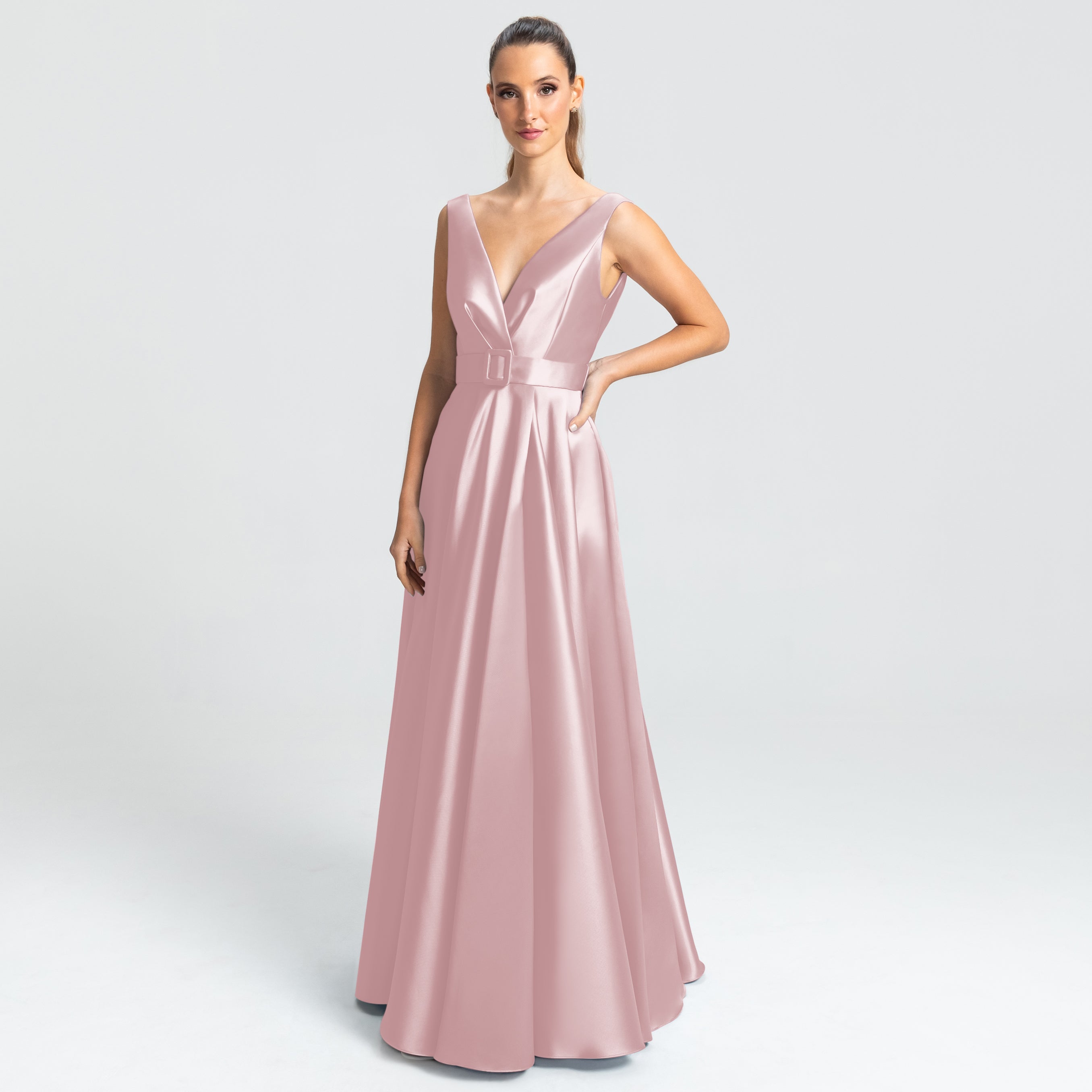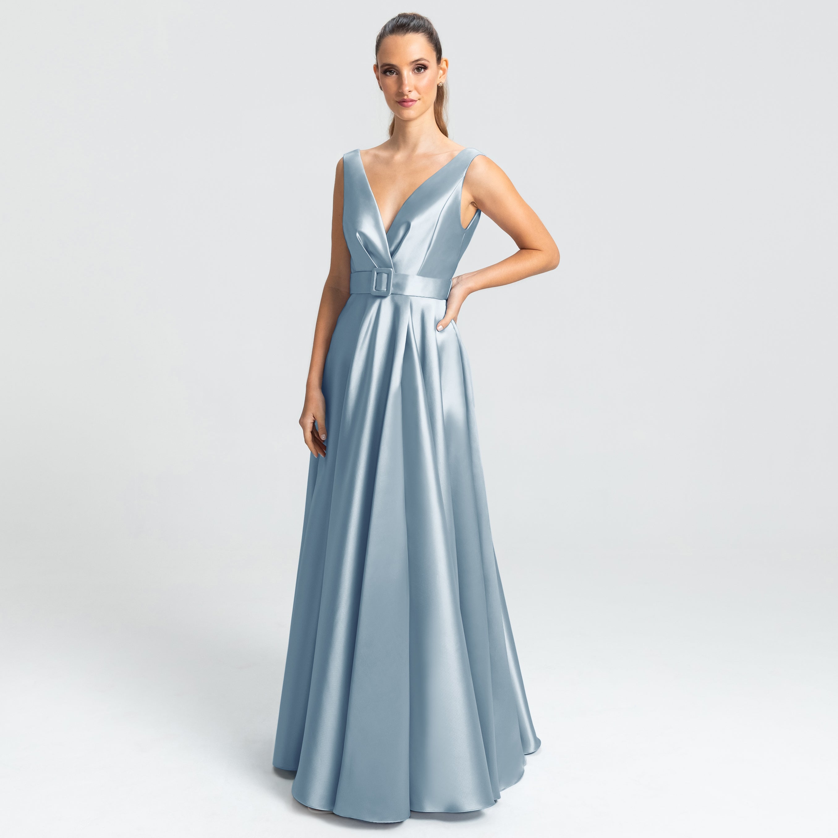 Nossos vestidos longos têm, por padrão, 117 cm de comprimento de saia, medidos a partir da cintura.