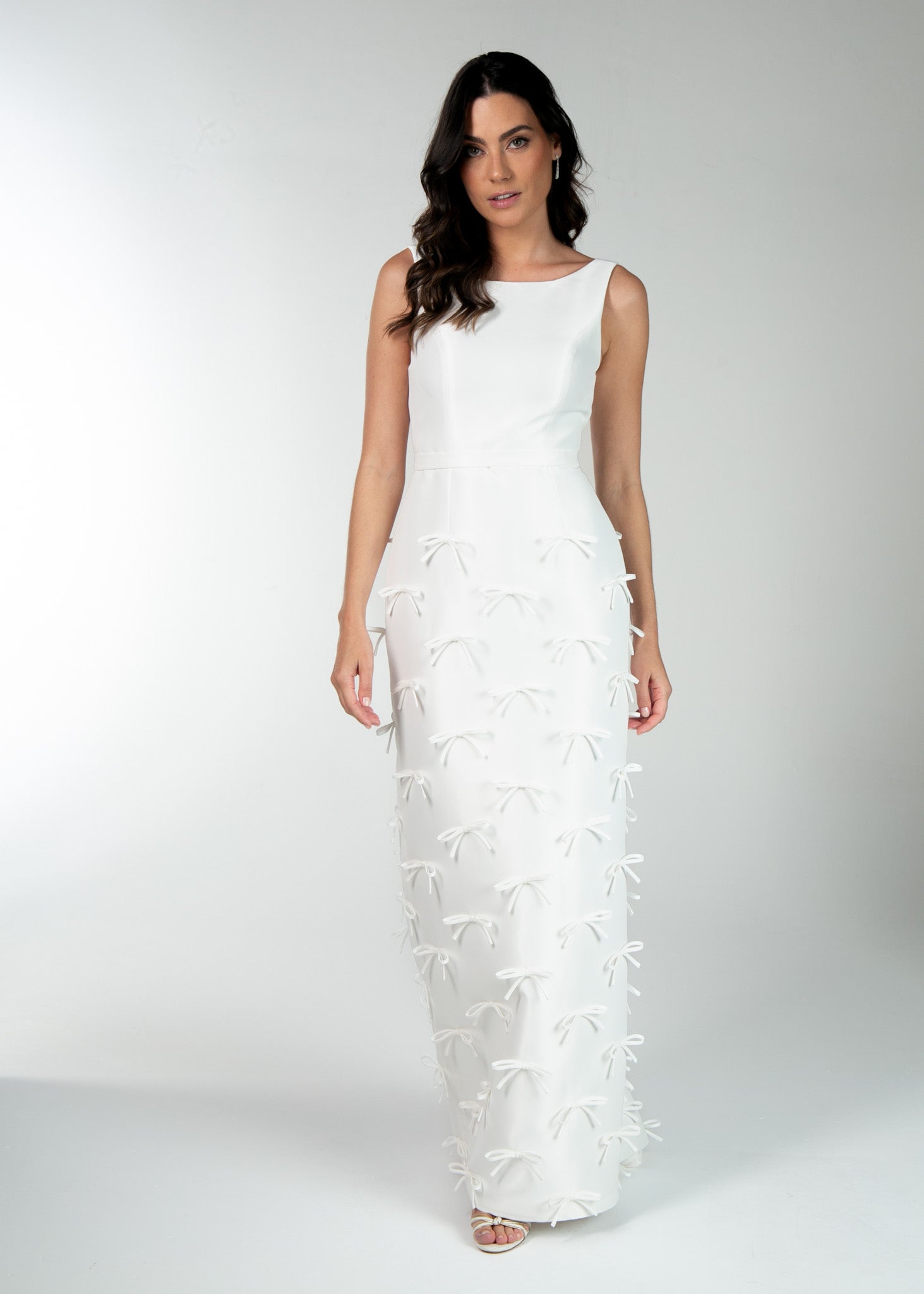 Vestido Longo em Zibeline com Lacinhos Aplicados – REF: OD74