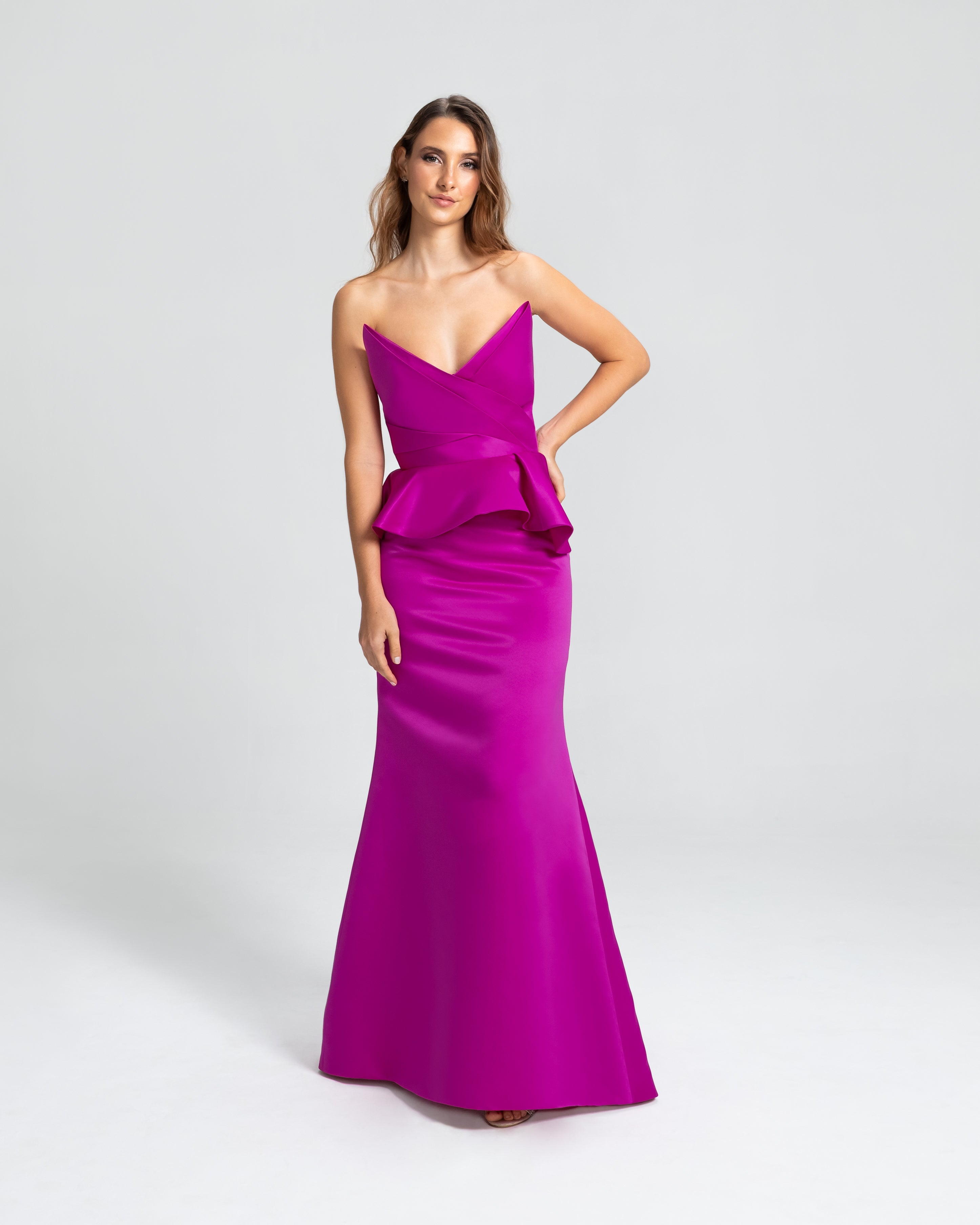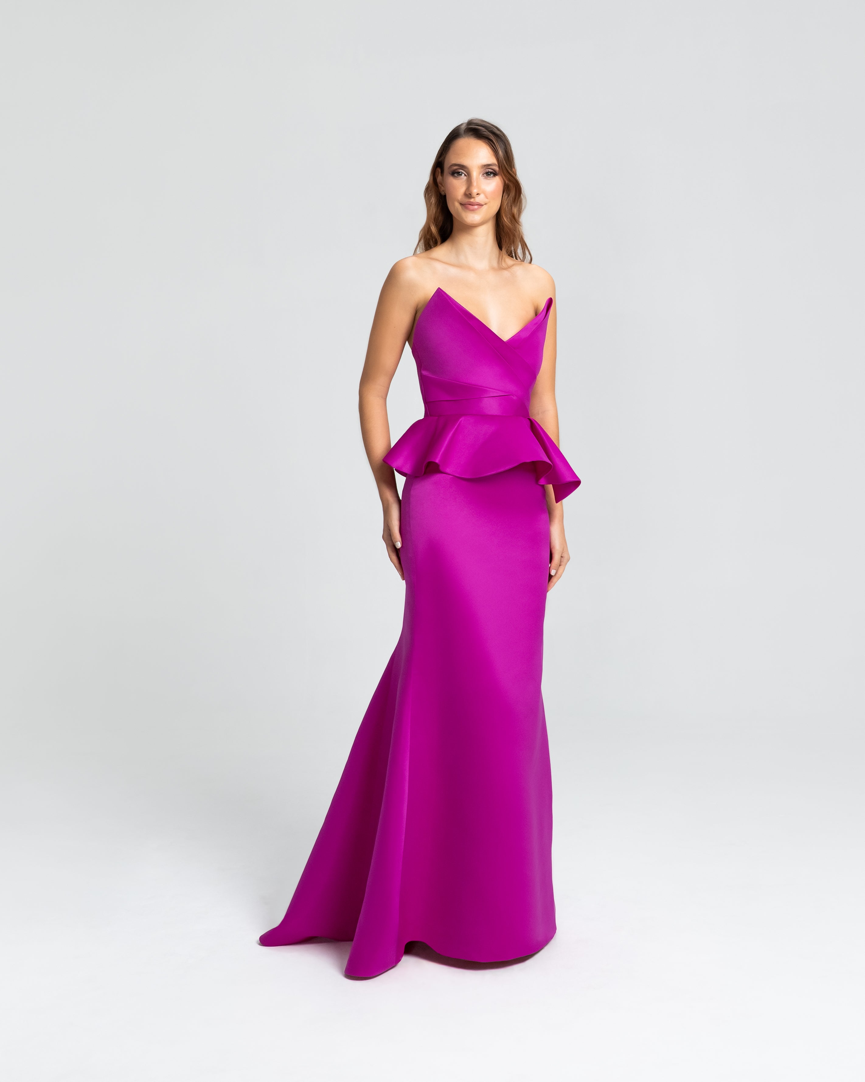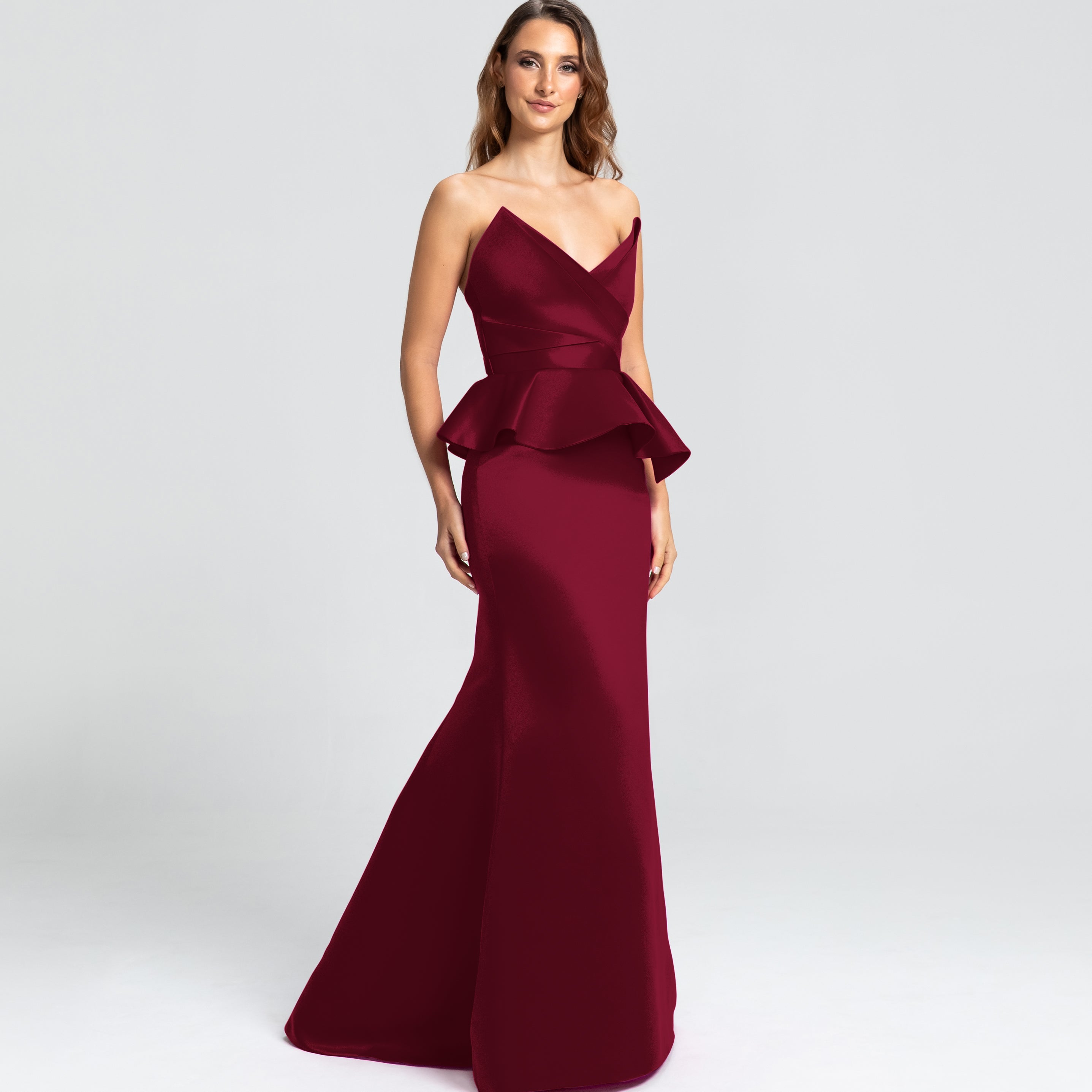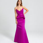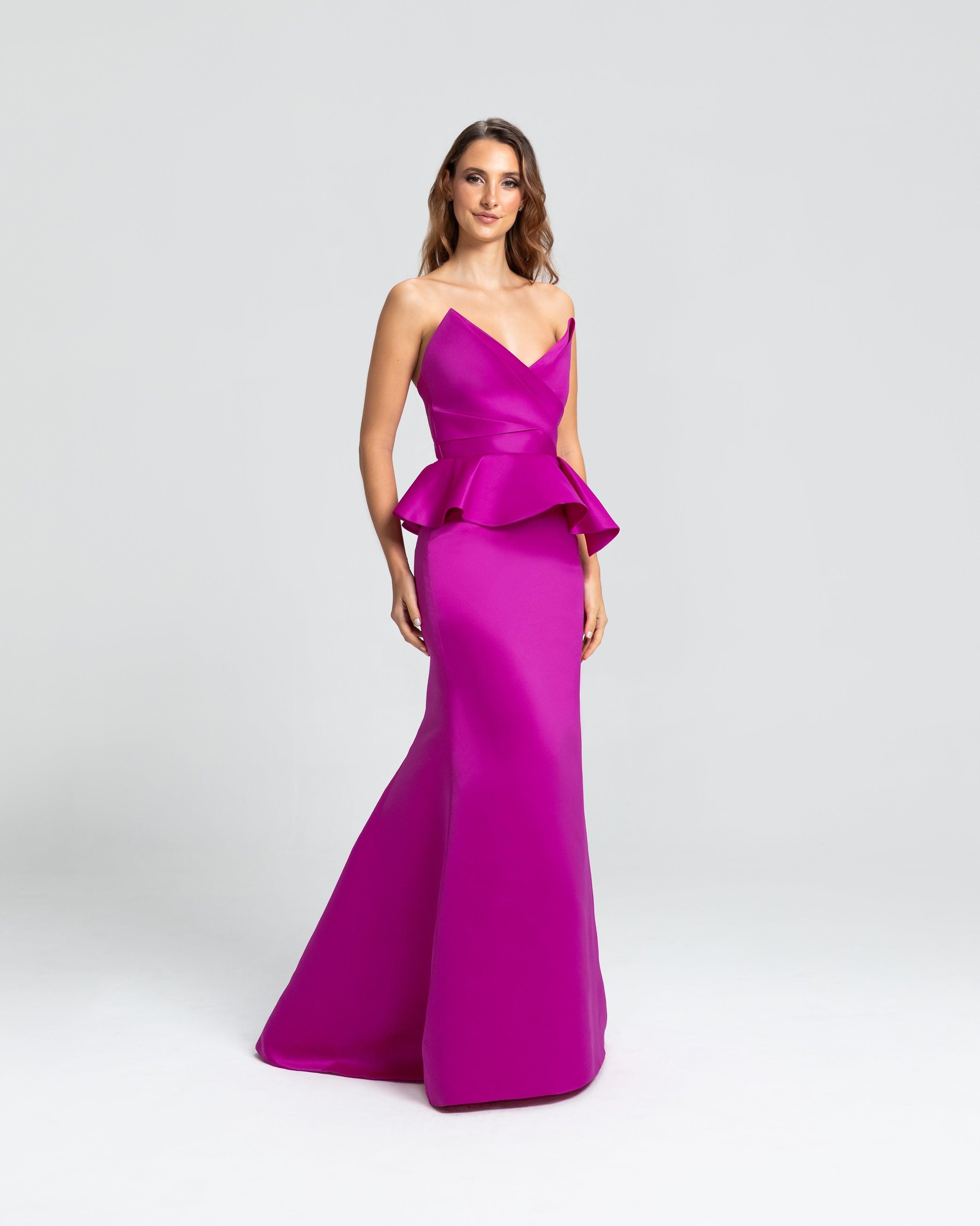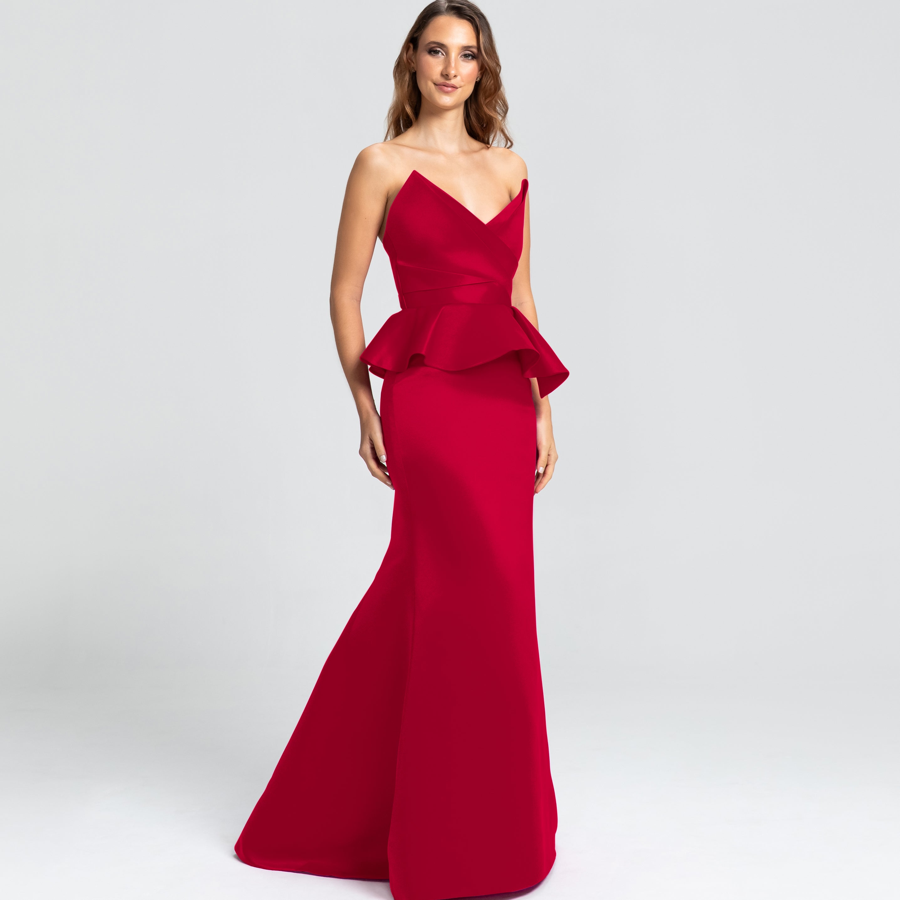 Vestido Longo em Zibeline com Peplum e Decote em Pontas – REF: OD60