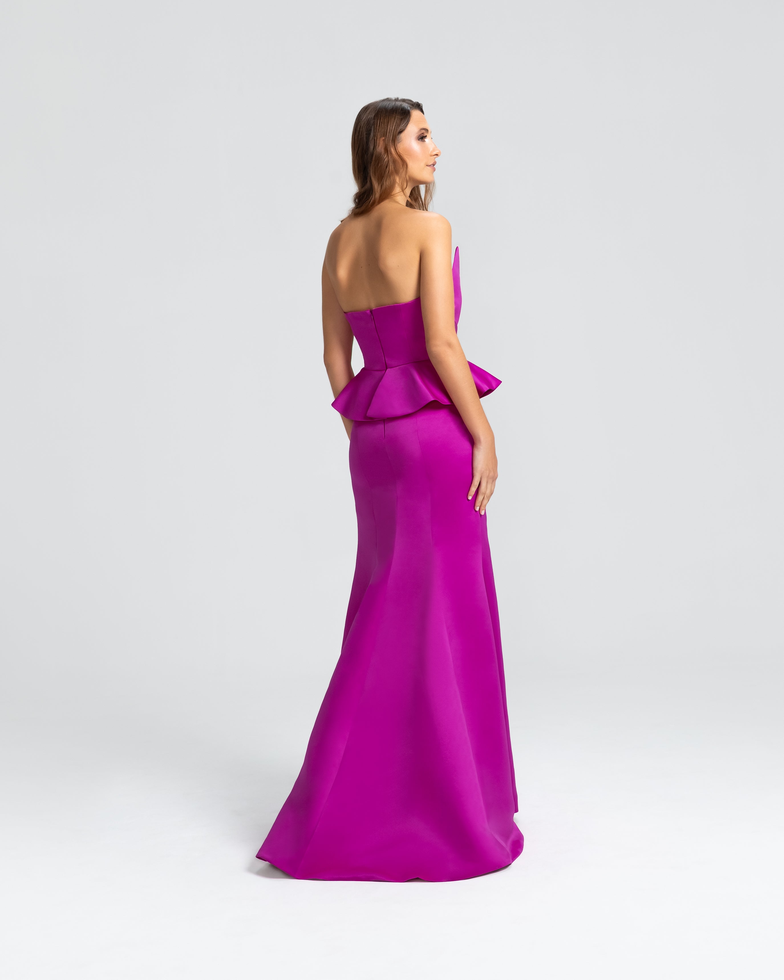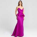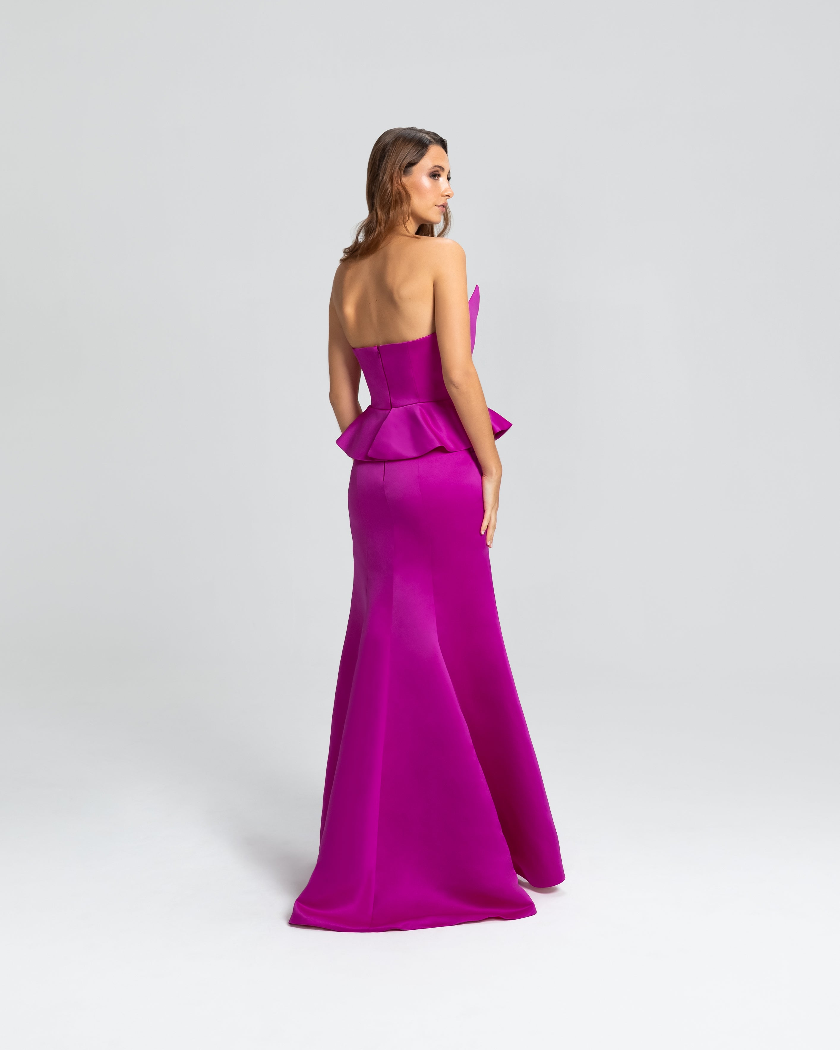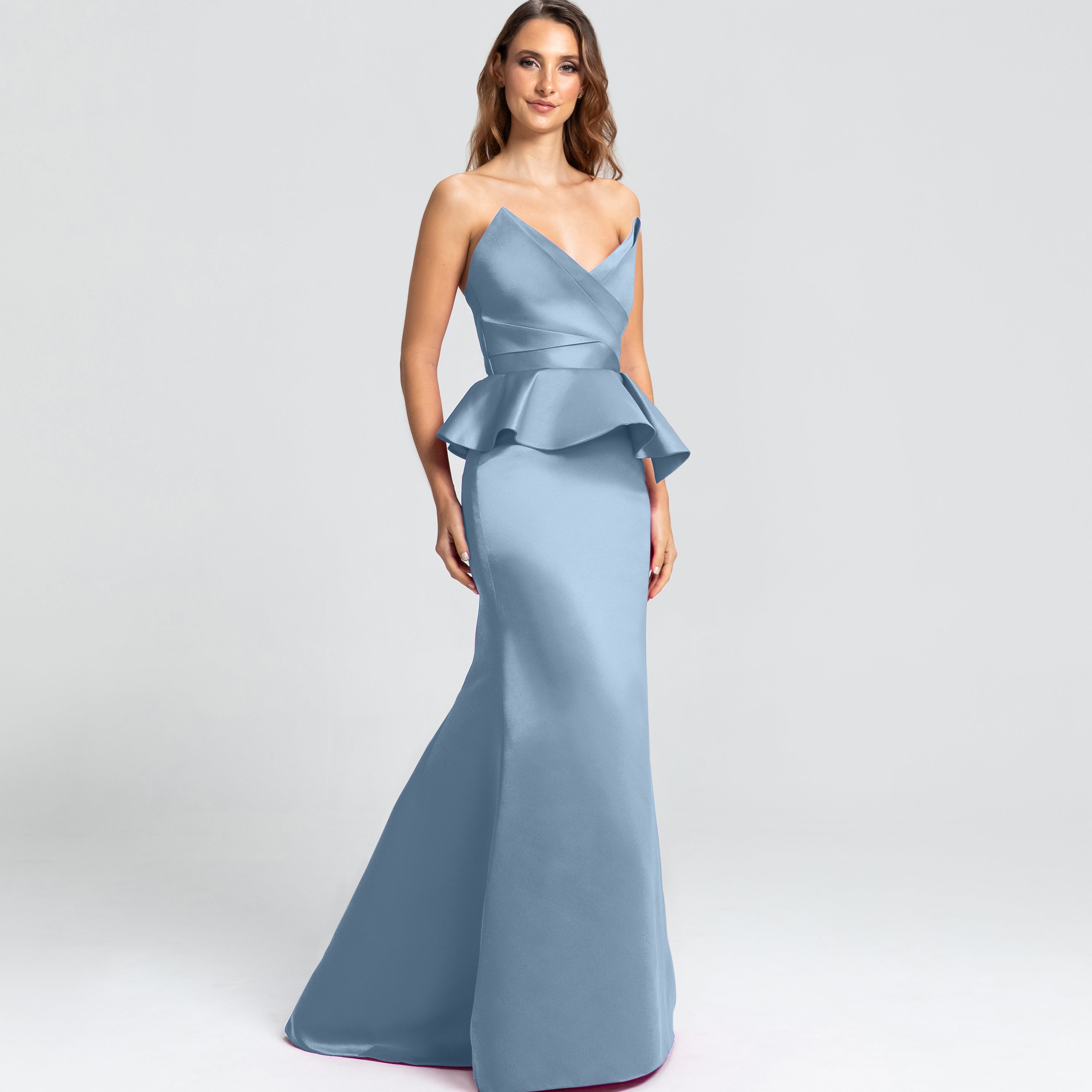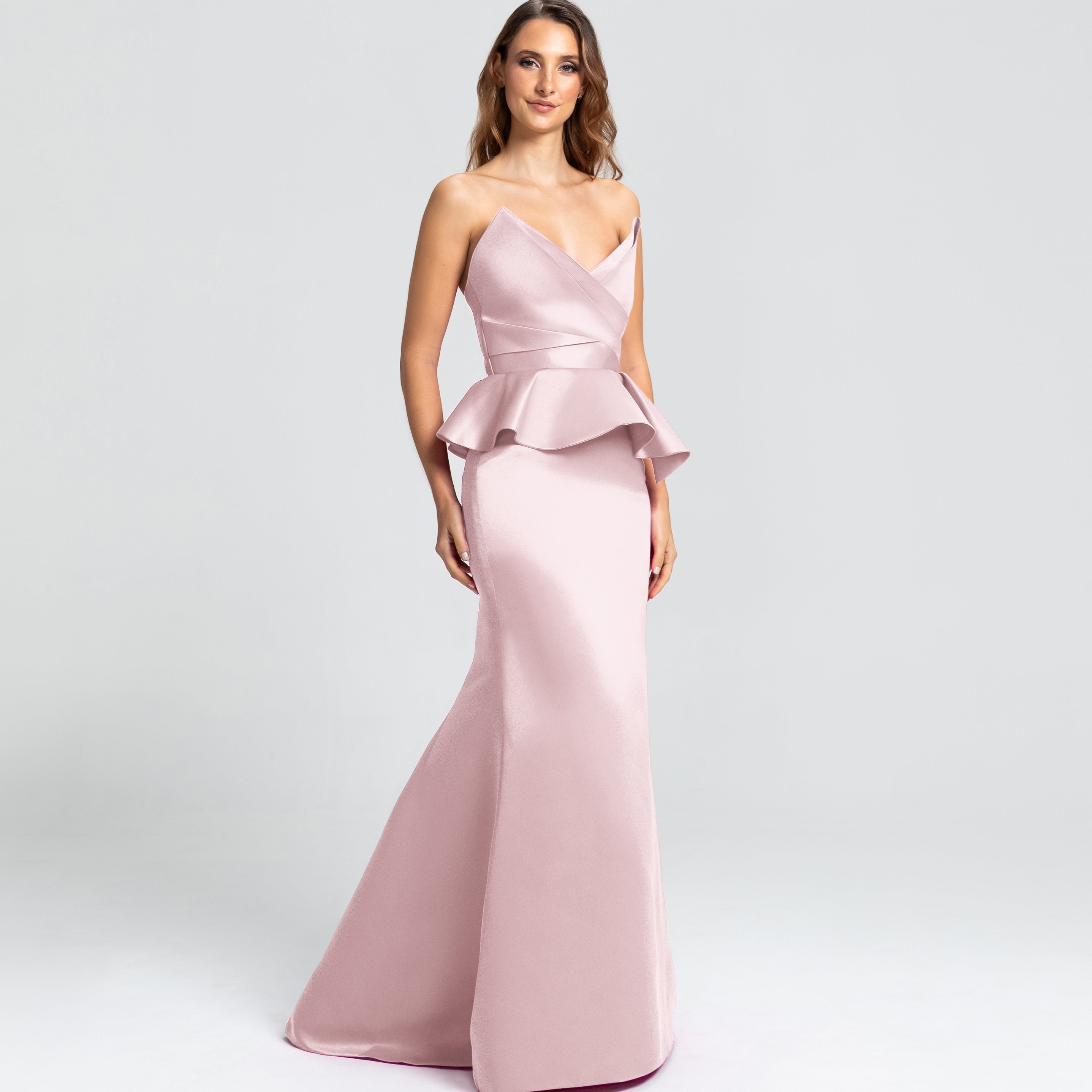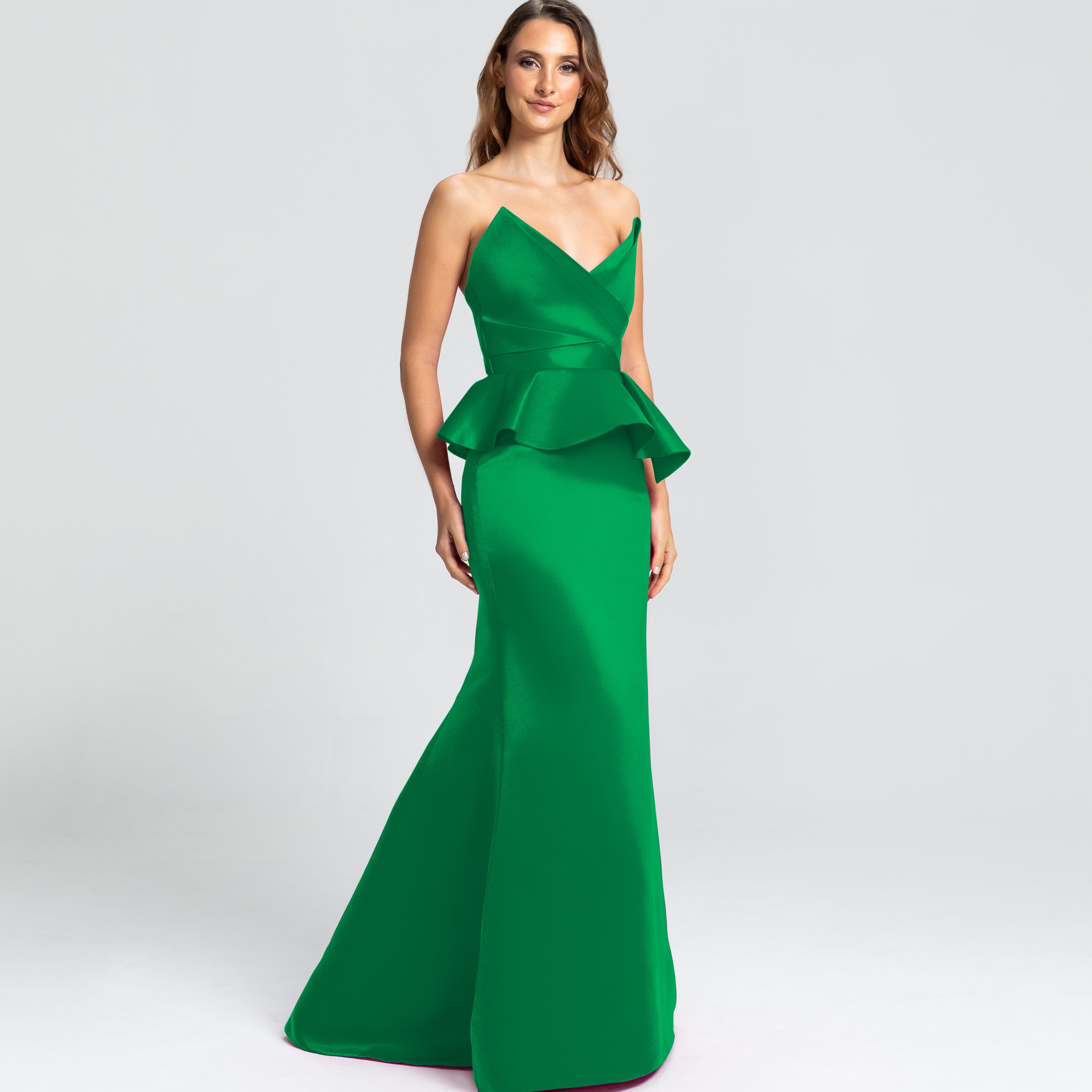 Vestido Longo em Zibeline com Peplum e Decote em Pontas – REF: OD60