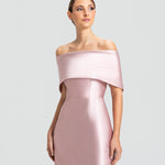 Confeccionado em zibeline, este vestido destaca-se pelo decote ombro a ombro, que deixa o colo em evidencia, com uma pala reta estruturada que contorna o decote com muita sofisticação. O corpo é ajustado e a cintura marcada, a saia é reta com uma leve cauda na parte traseira que acrescenta um toque de drama sutil. Ideal para mulheres elegantes que apreciam um design minimalista e refinado.