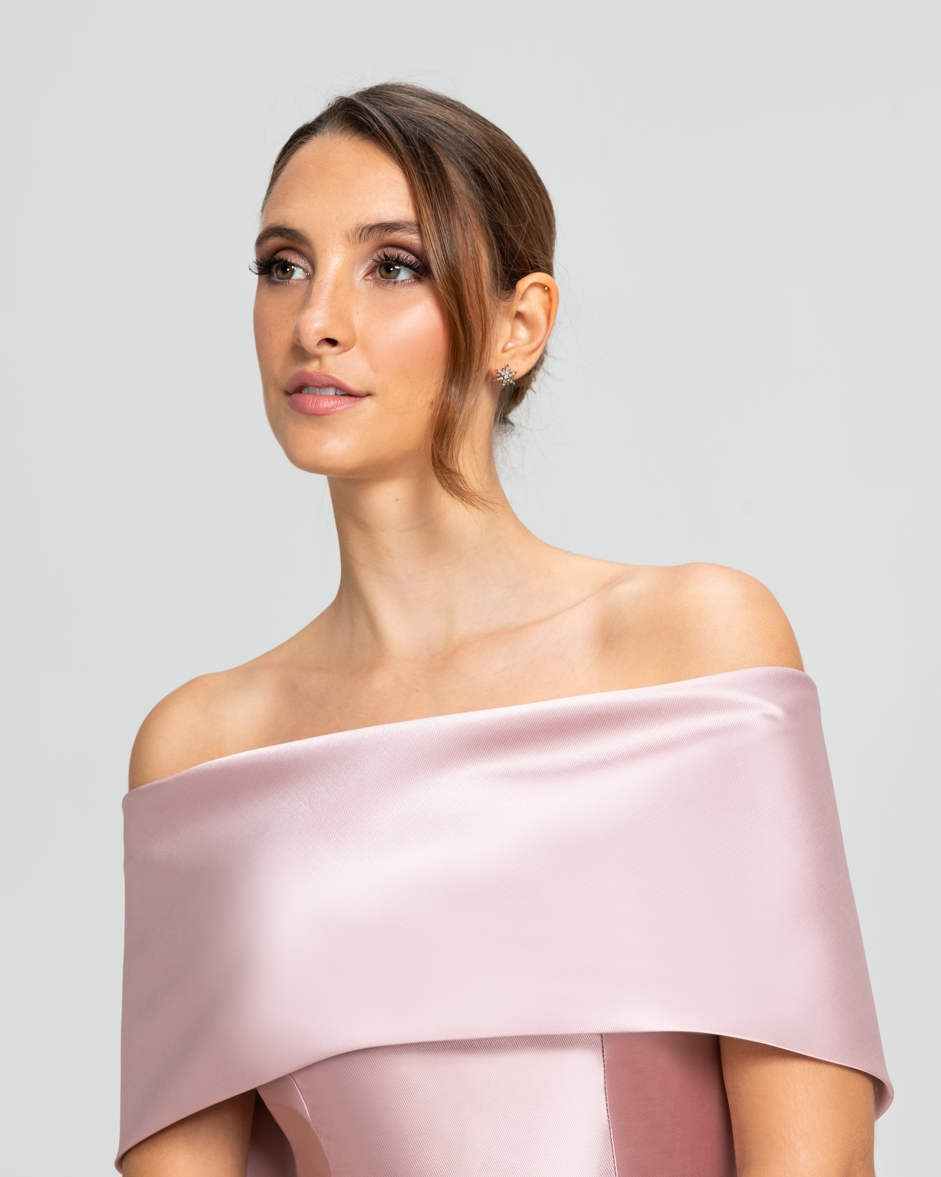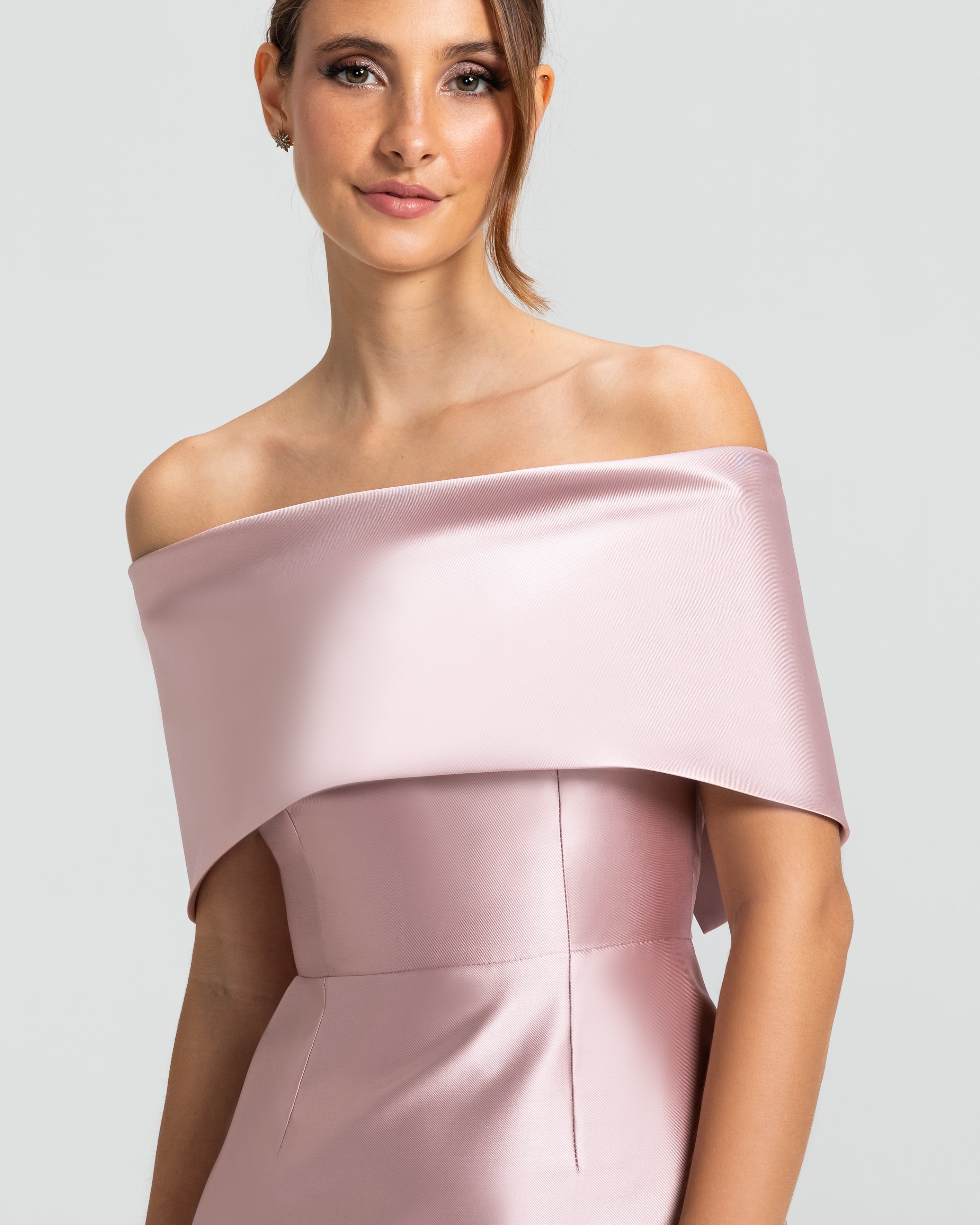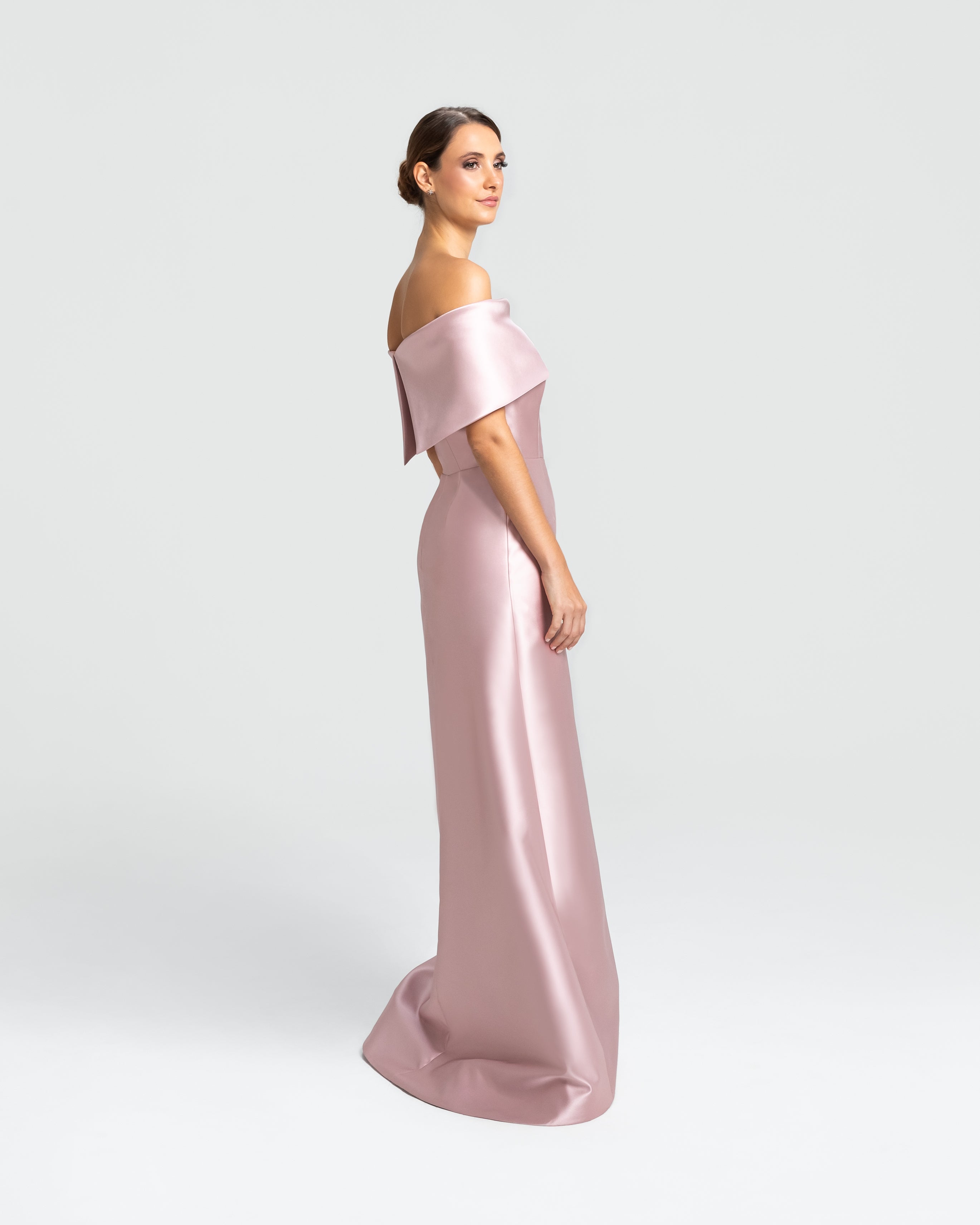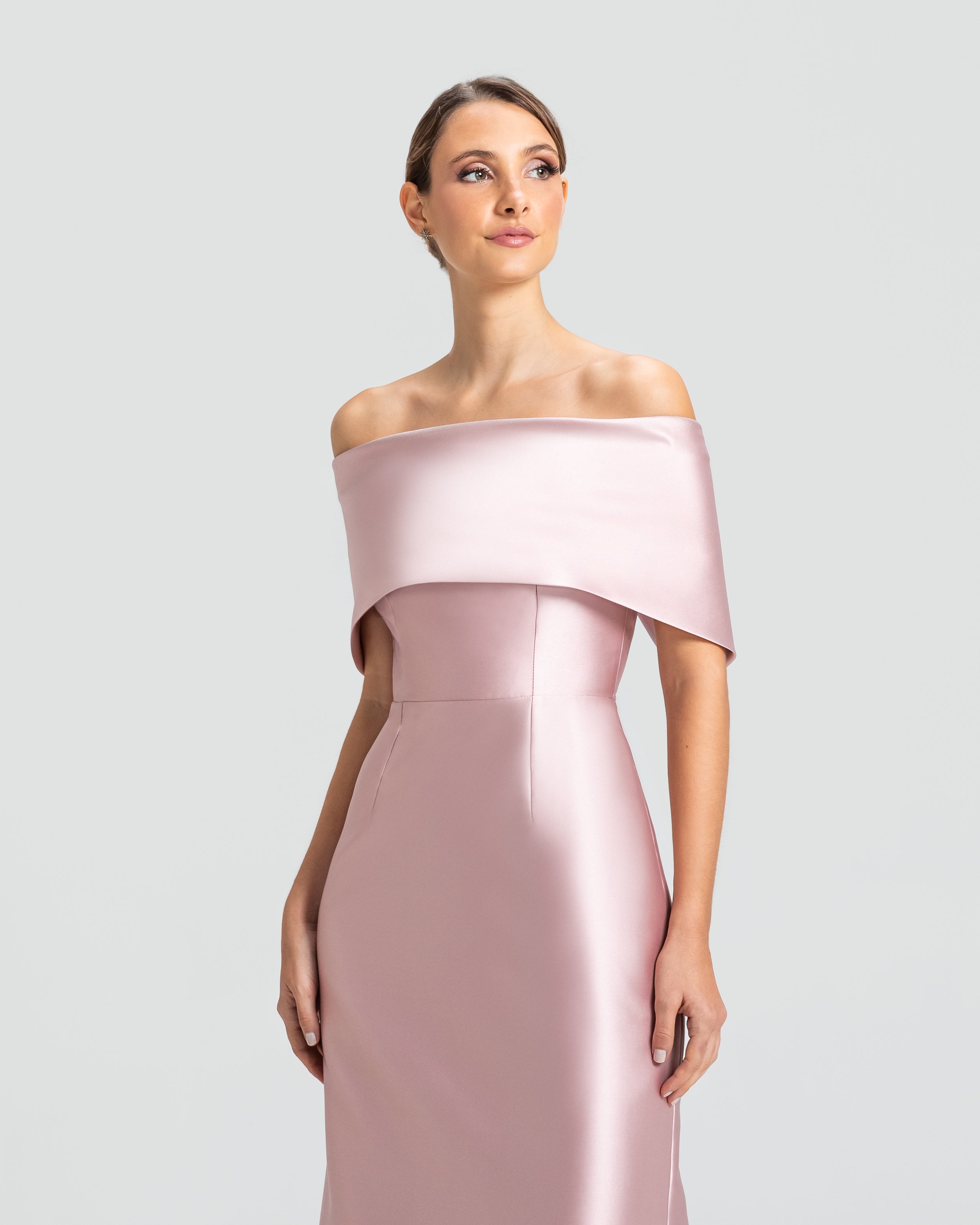 Vestido Longo em Zibeline Ombro a Ombro com Pala Estruturada – REF: OD62