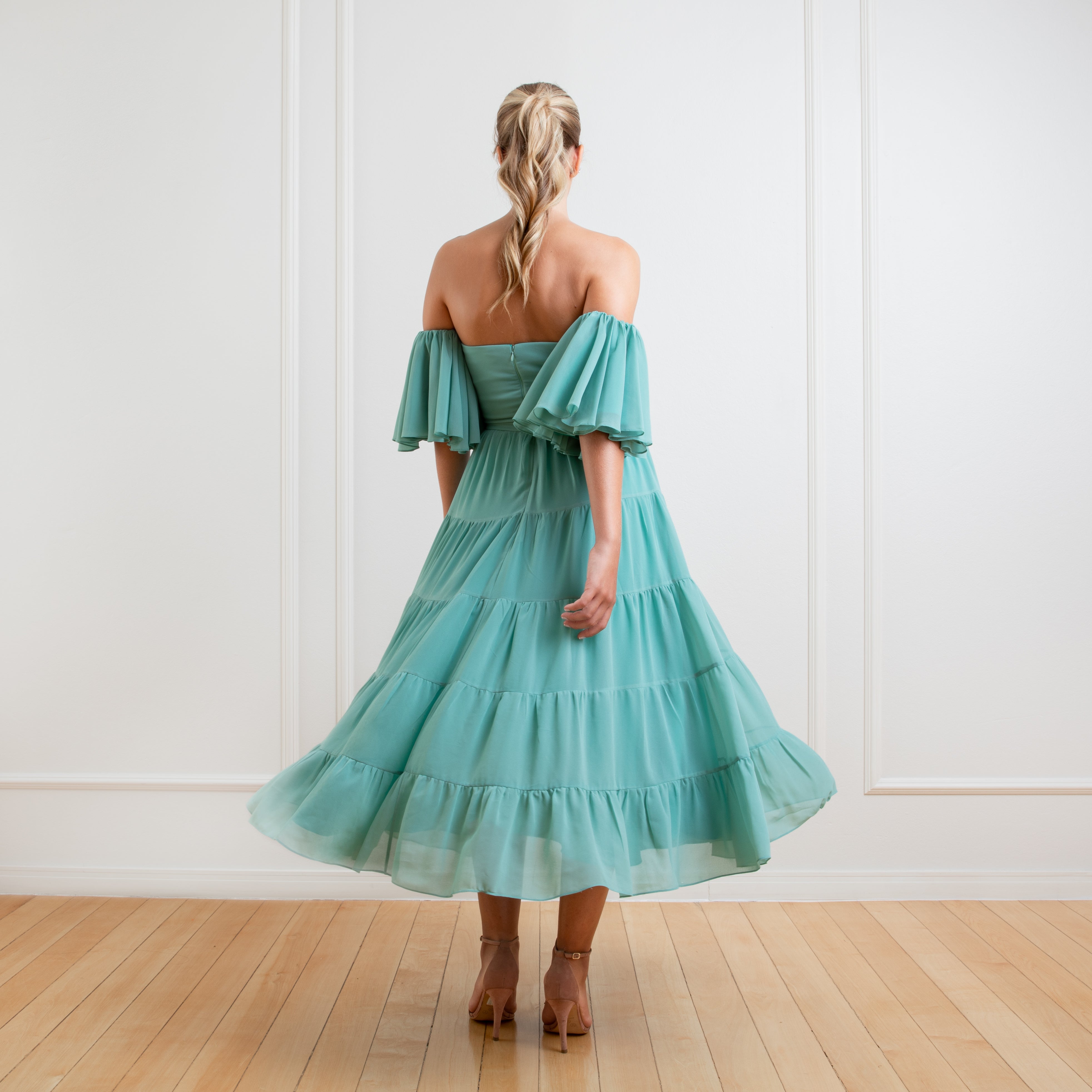 Vestido Midi em Musseline Fluida com Mangas Removíveis – REF: EG01MD