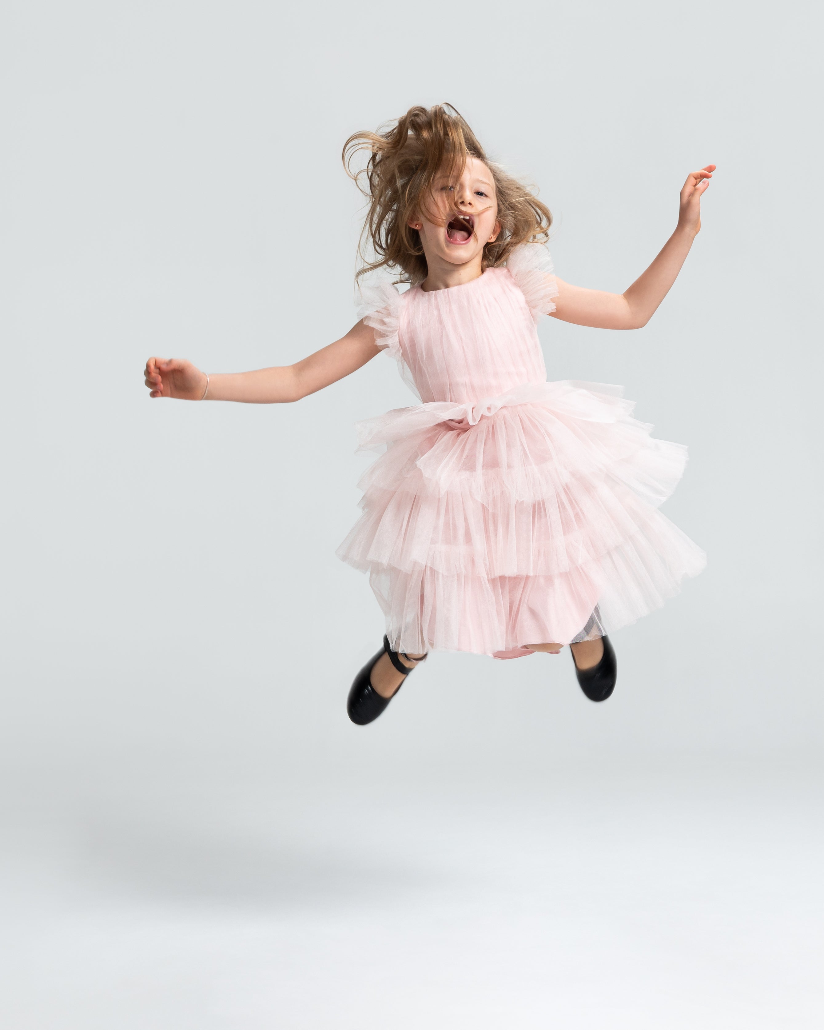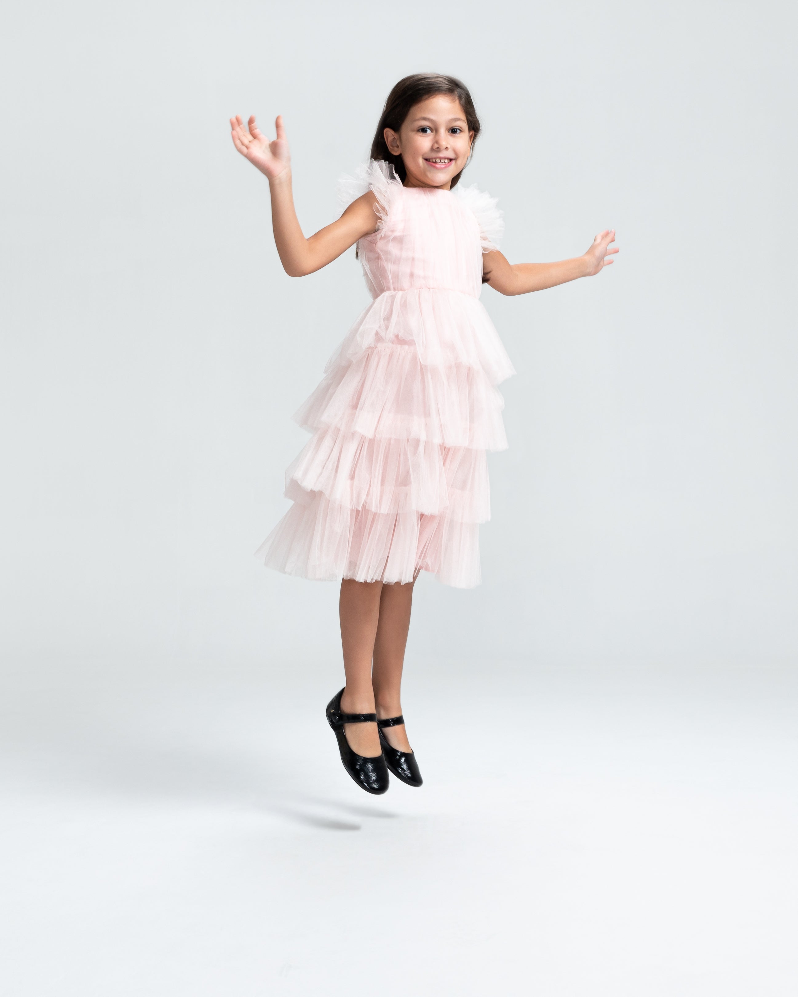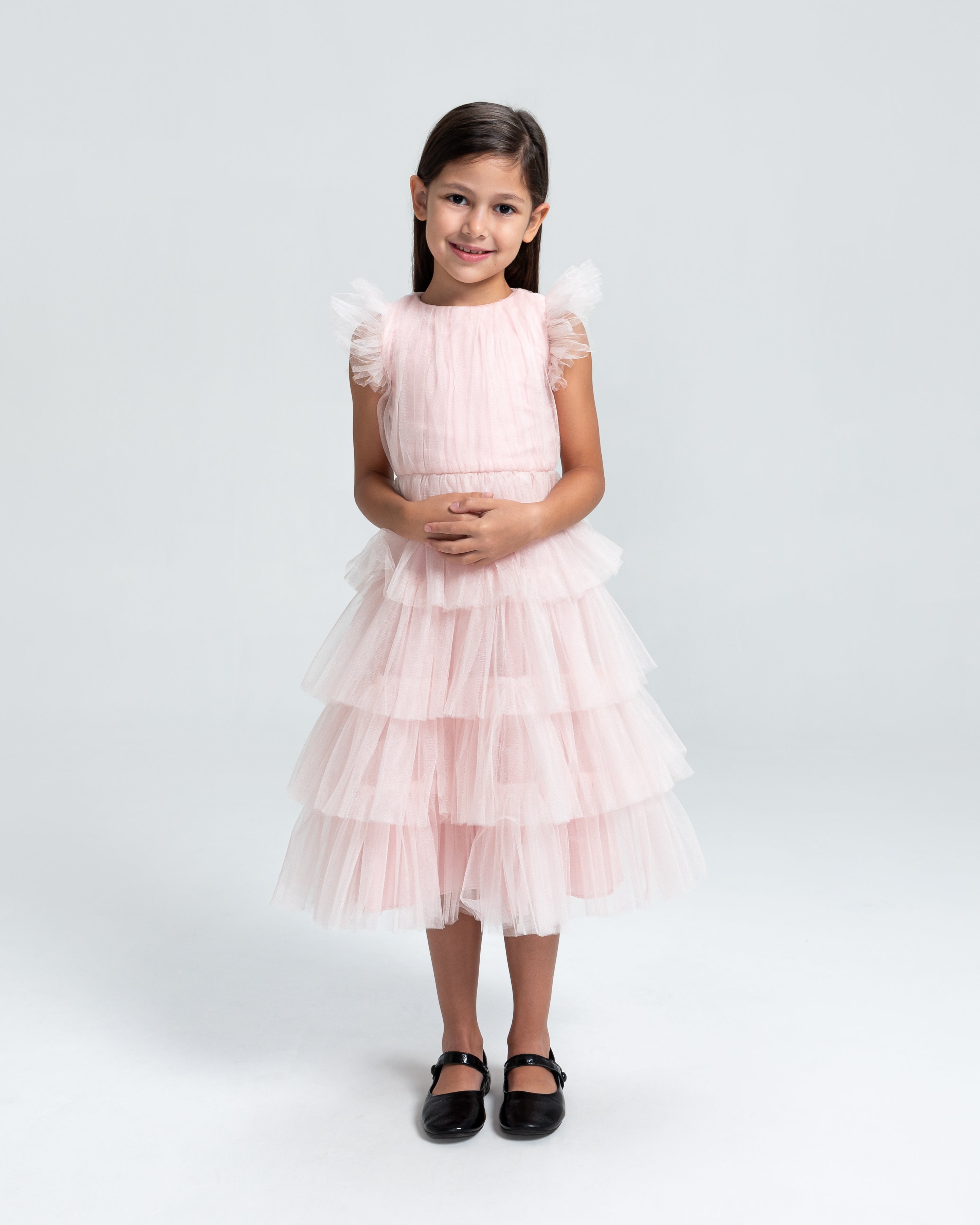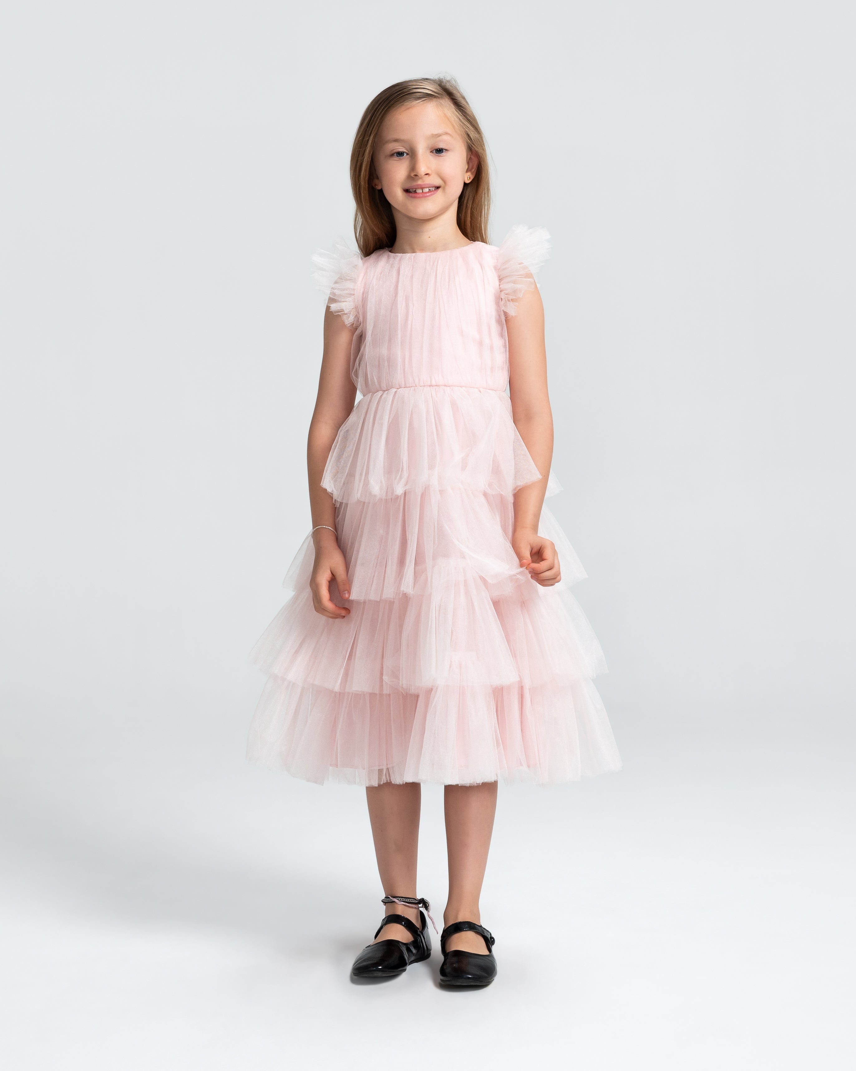 Nossos vestidos longos têm, por padrão, 117 cm de comprimento de saia, medidos a partir da cintura.