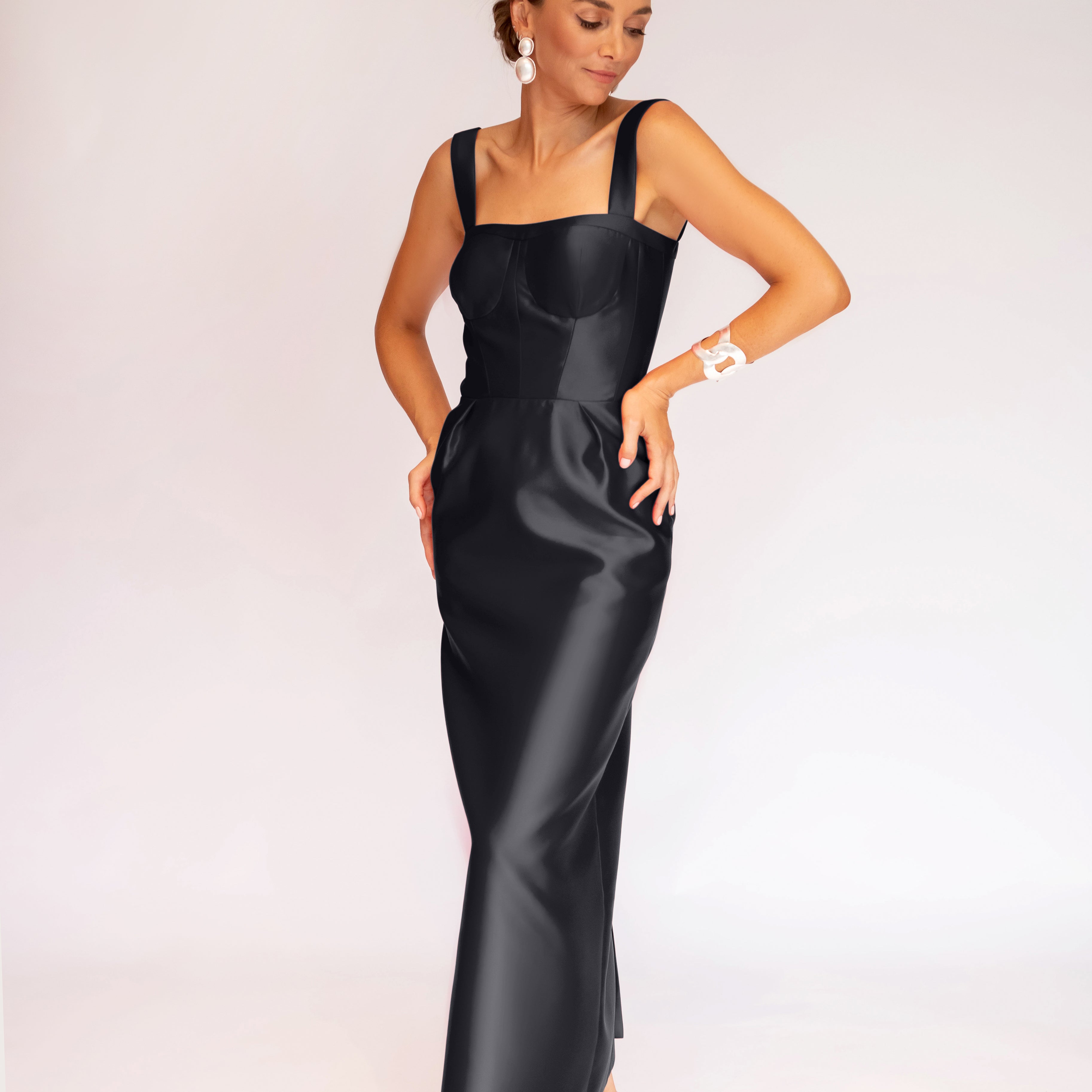 Vestido Midi em Zibeline com Corselet e Bolsos – REF: OD91