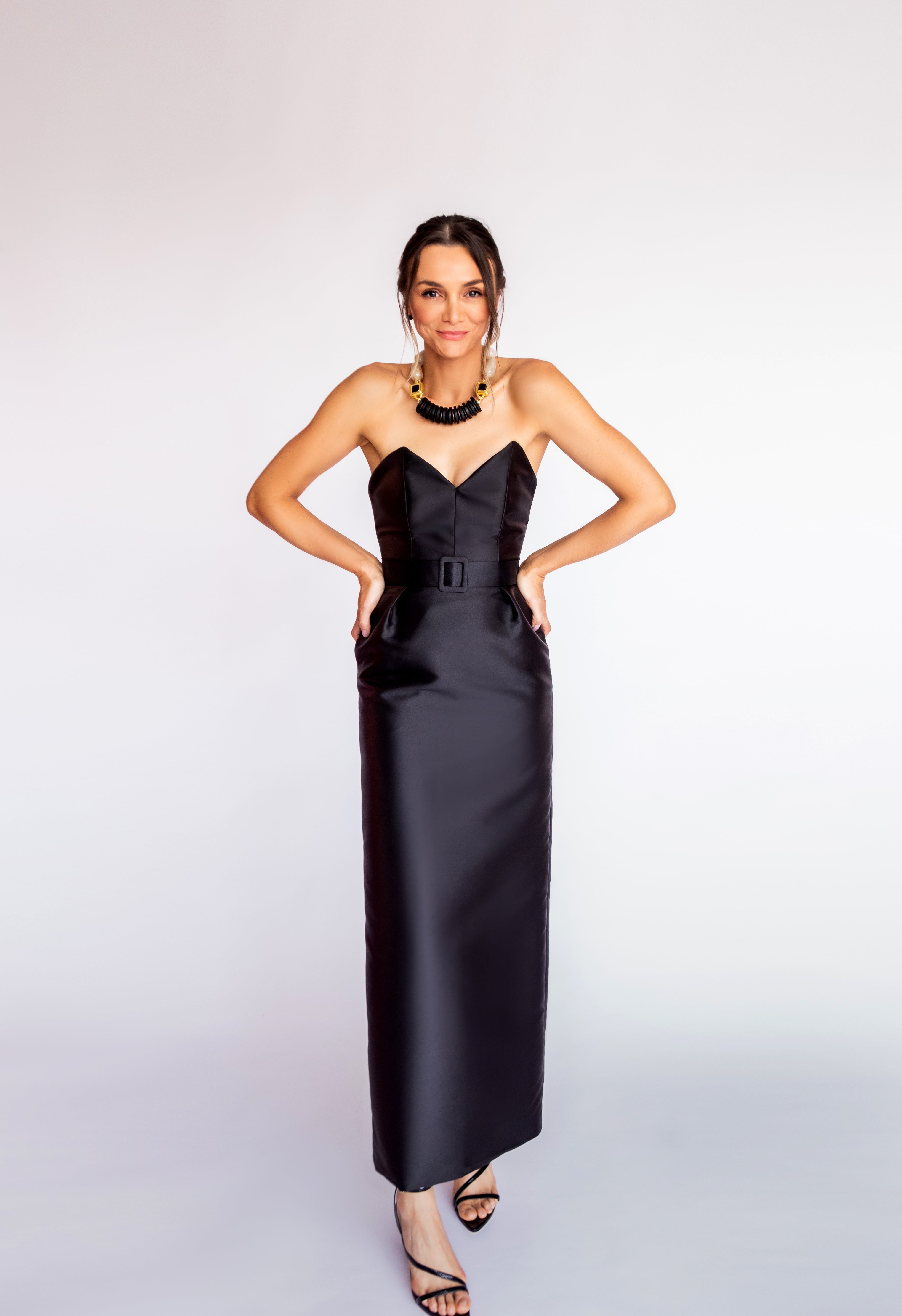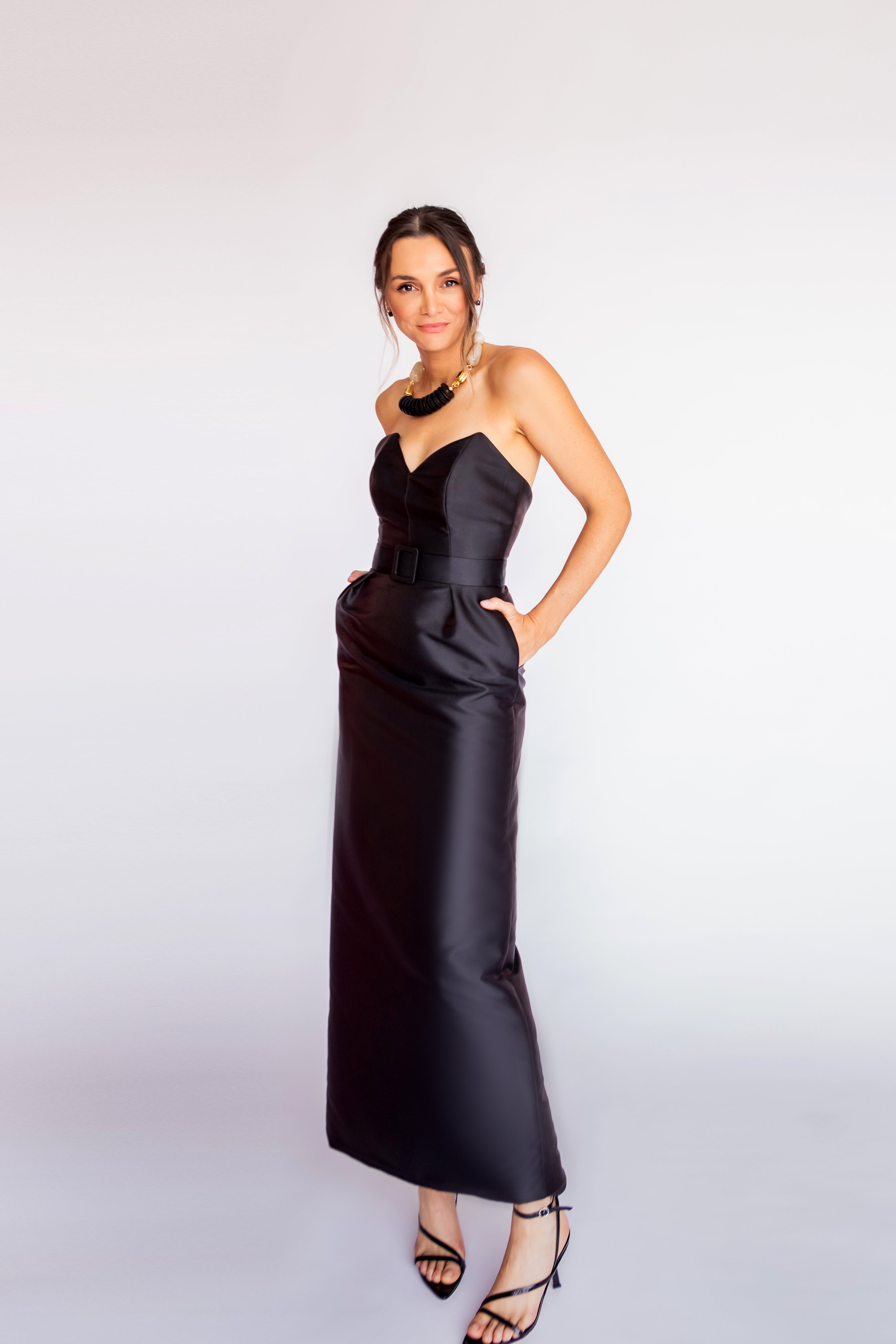 Um tubinho nada básico, feito para ser aquele curinga elegante do guarda-roupa. Confeccionado em zibeline, este vestido midi tomara que caia tem recortes em pontas no busto que trazem um toque moderno e diferenciado ao clássico. A cintura é marcada com cinto forrado, e a saia, com pregas e bolsos, tem o volume ideal para equilibrar conforto e sofisticação. Um modelo versátil que vai te acompanhar com elegância em diversos eventos — sempre impecável, sempre atual.