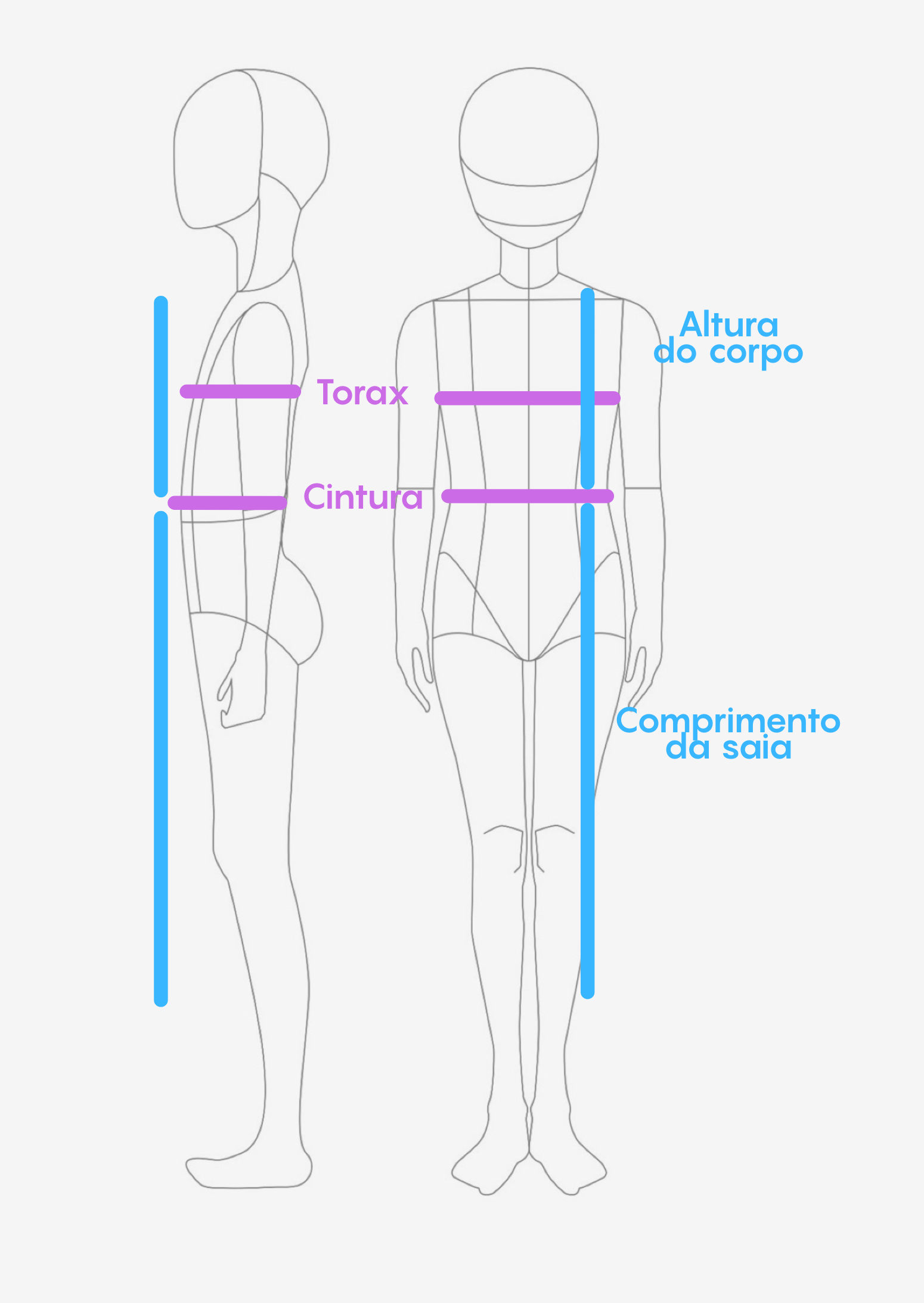 As medidas são simples e rápidas de tirar. Você vai precisar nos enviar: