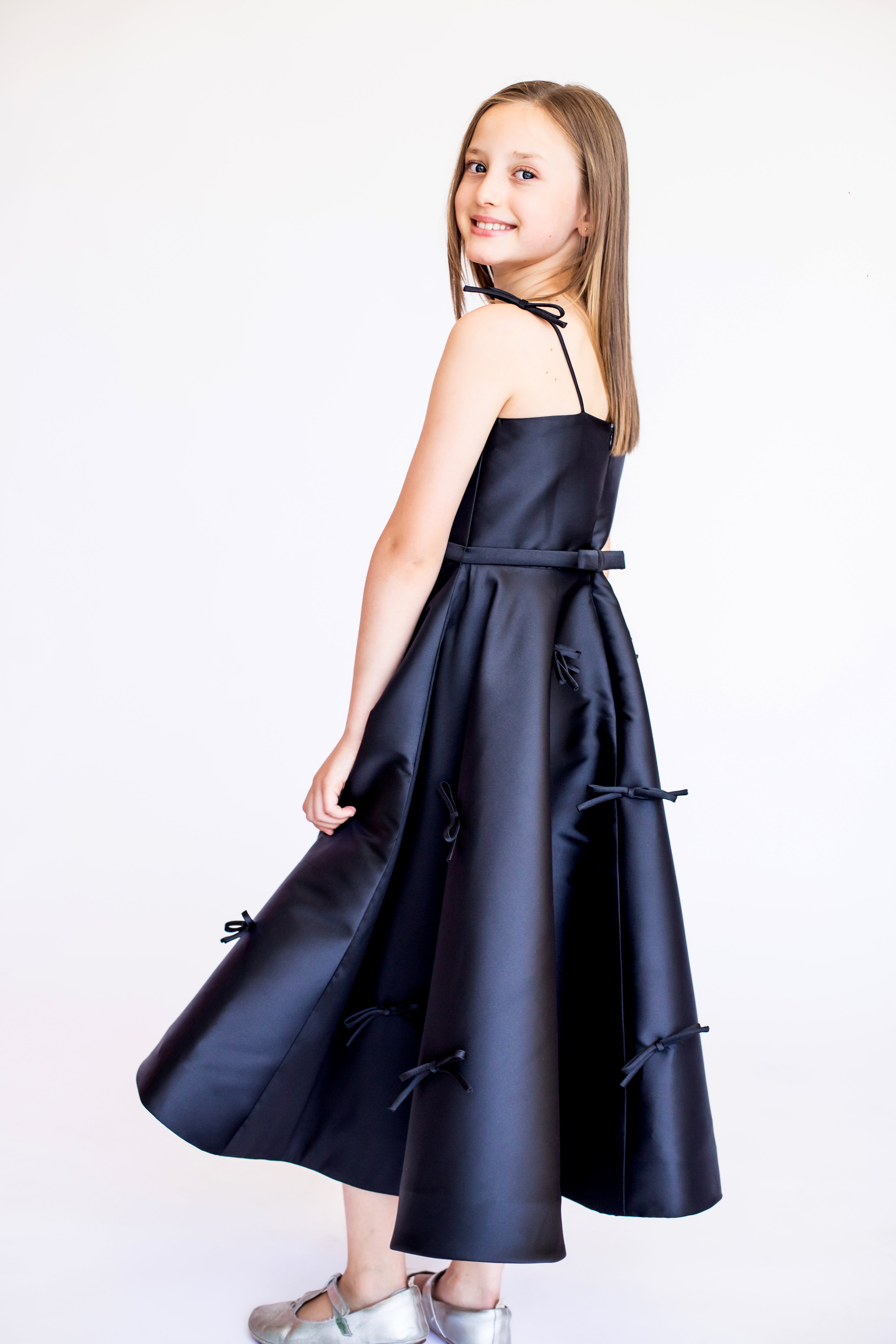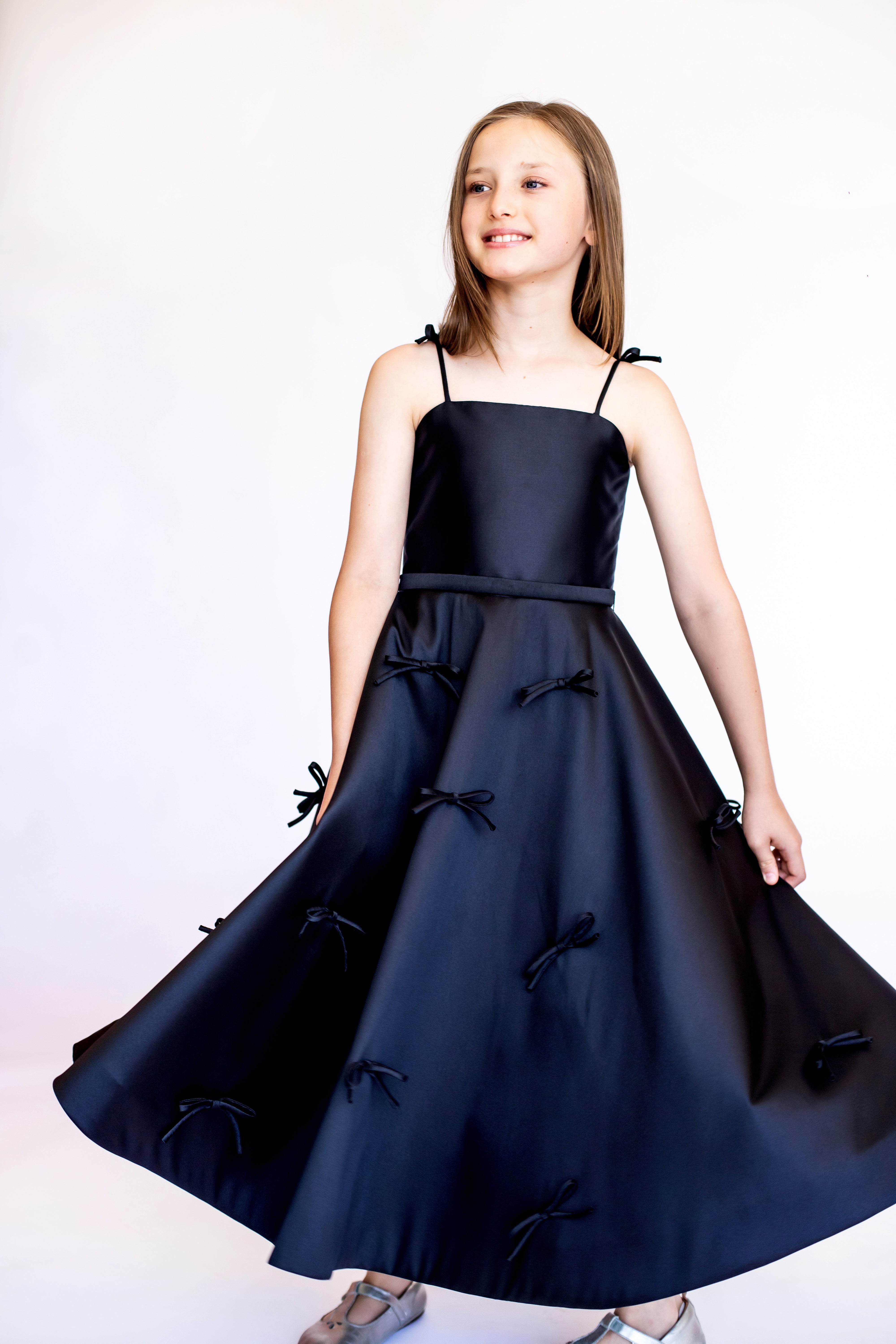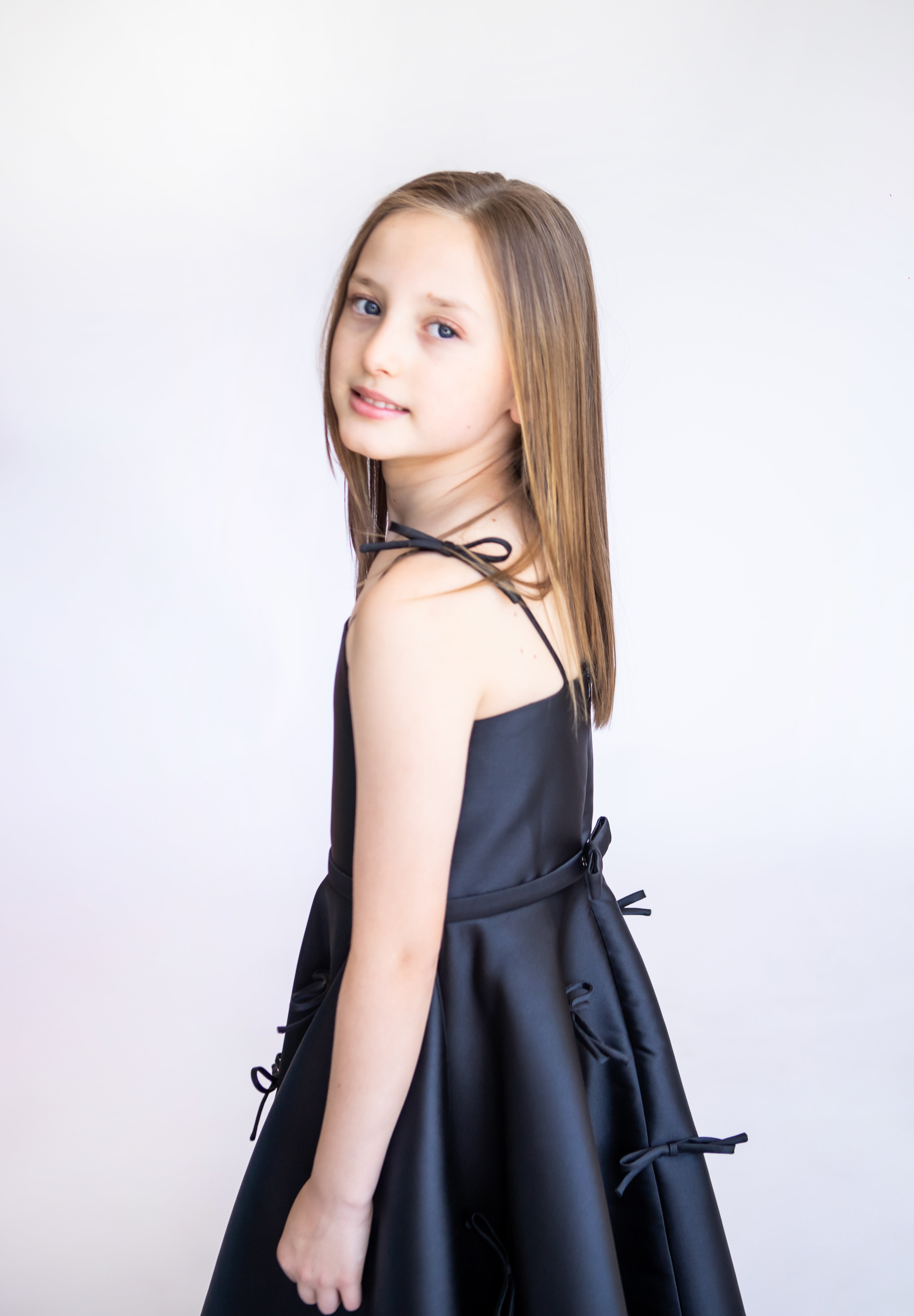 Os vestidos Kids foram criados para meninas que já sabem caminhar e ainda não possuem o corpo desenvolvido como o de uma mulher, pois os modelos não têm curvas de busto ou cintura.