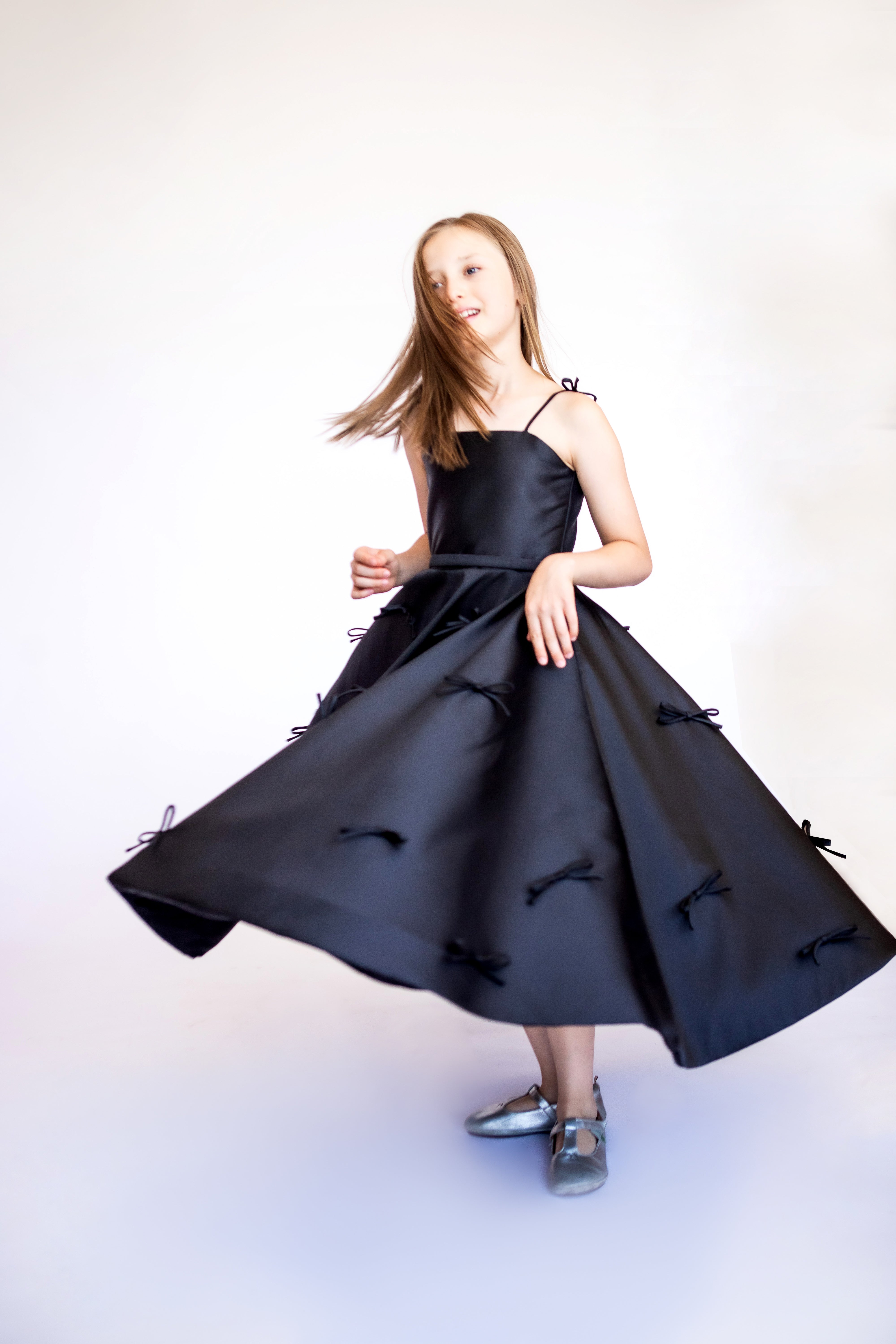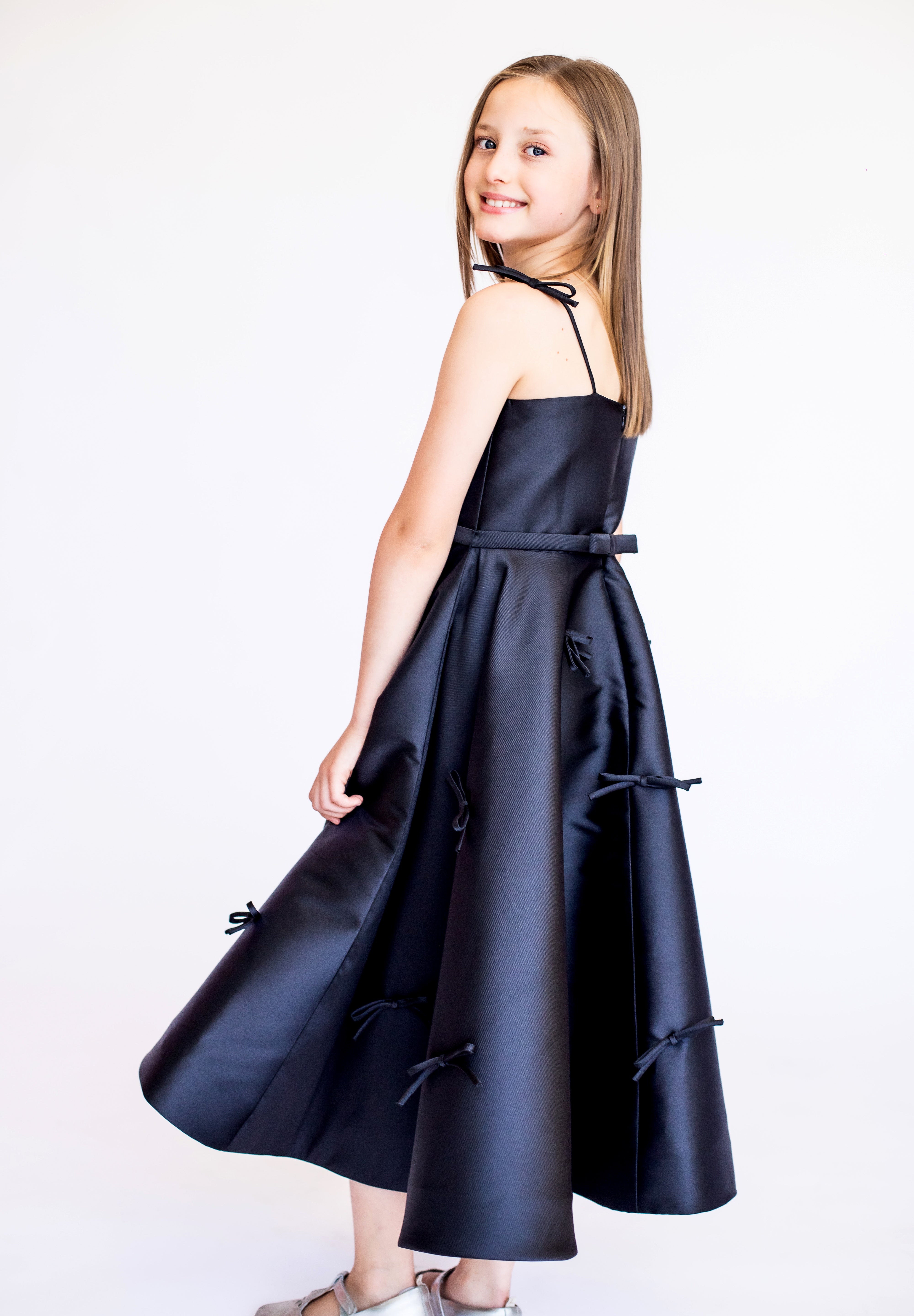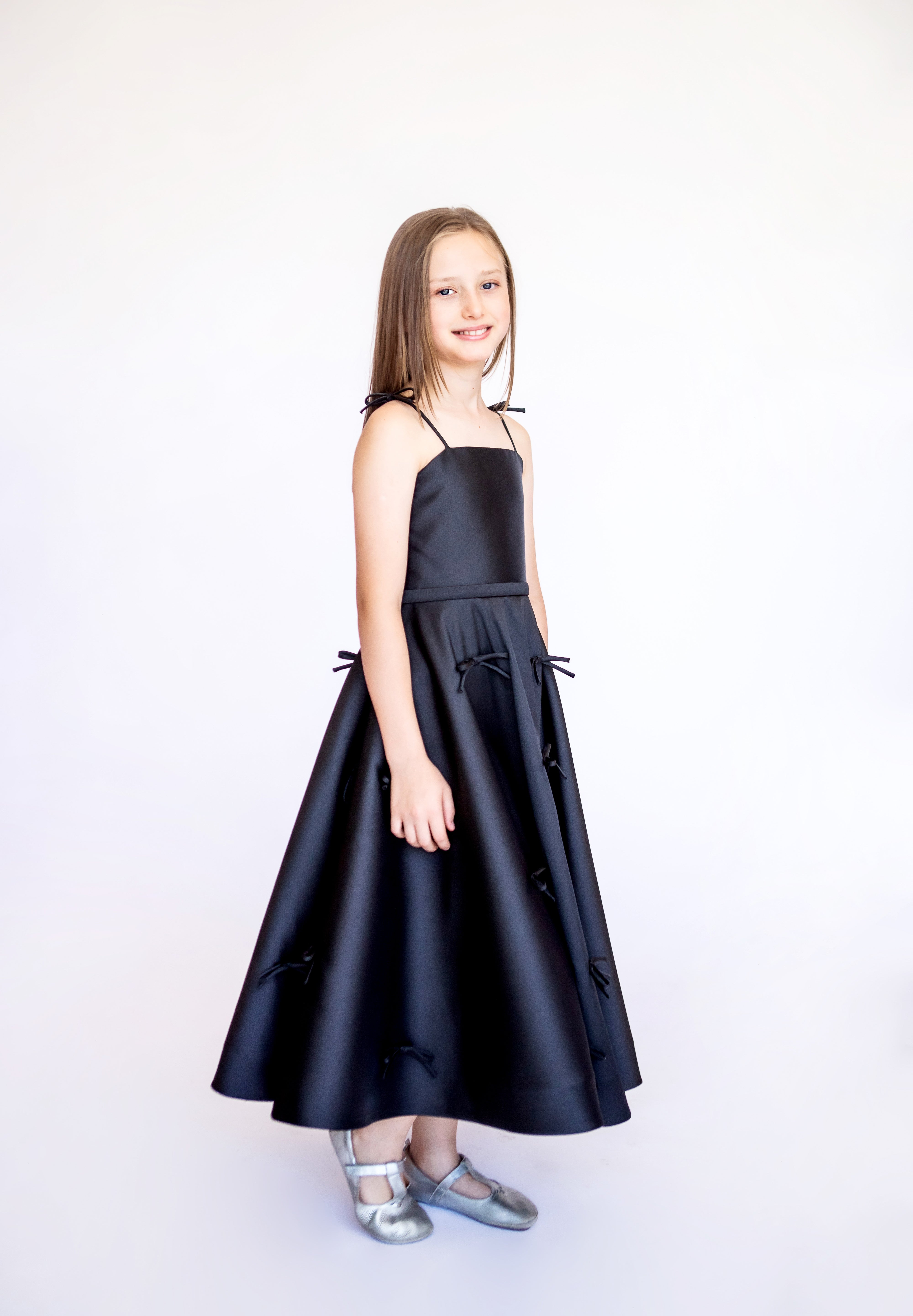 Os vestidos Kids foram criados para meninas que já sabem caminhar e ainda não possuem o corpo desenvolvido como o de uma mulher, pois os modelos não têm curvas de busto ou cintura.