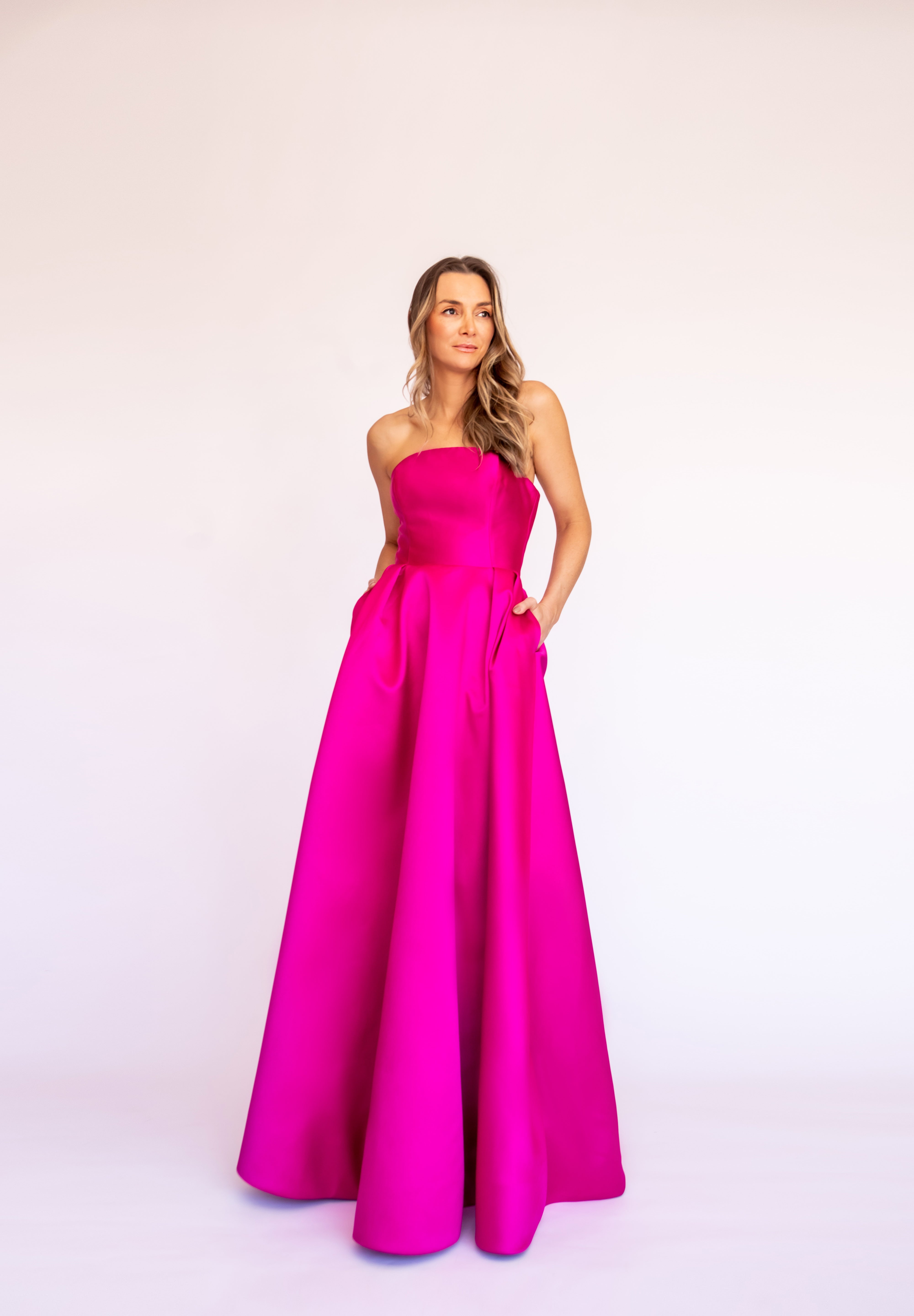 Vestido Longo em Tafetá Tomara que Caia com Laços Estruturados – REF: OD81