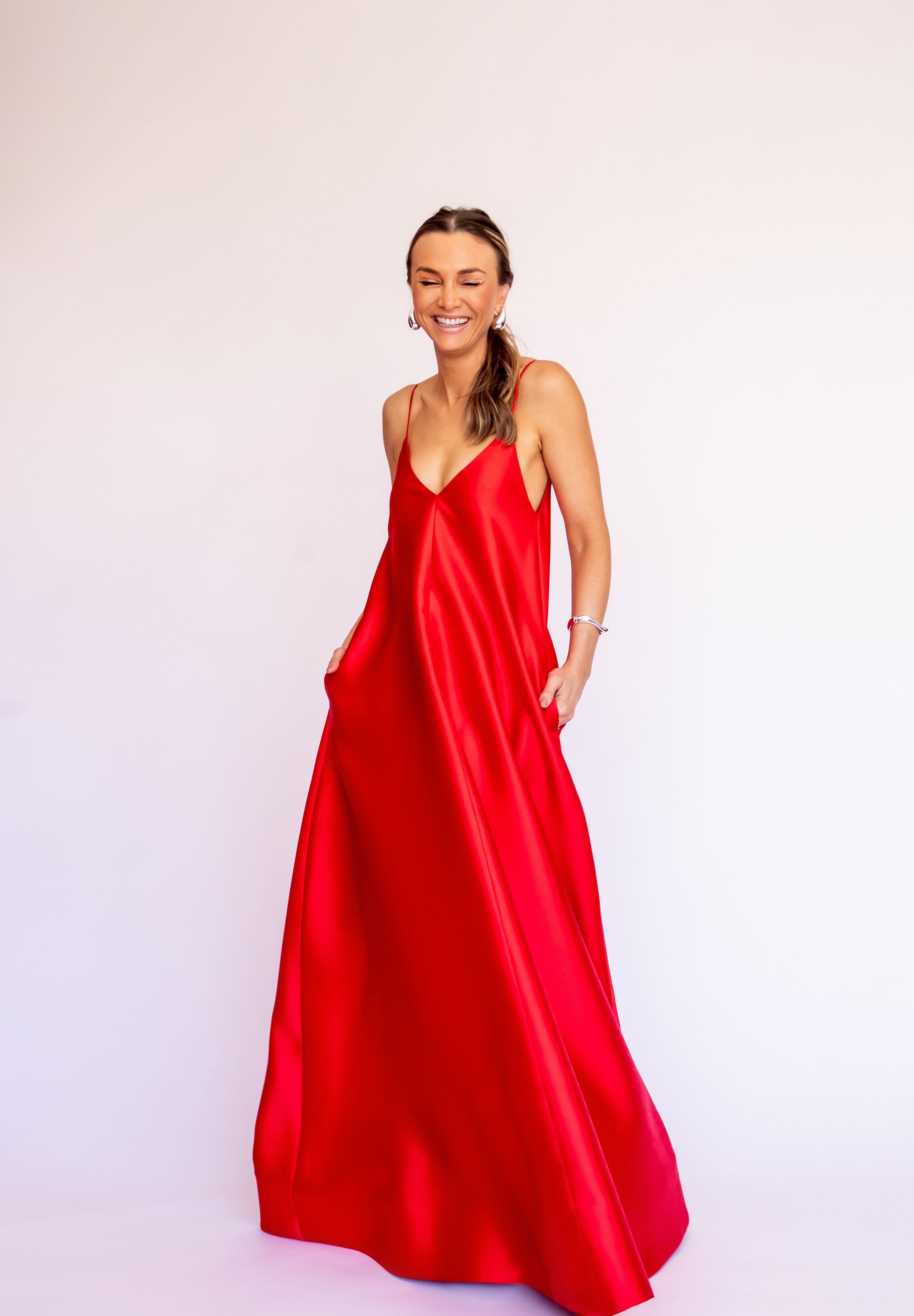 Vestido Longo em Tafetá Assimétrico com Saia Mullet – REF: EG42