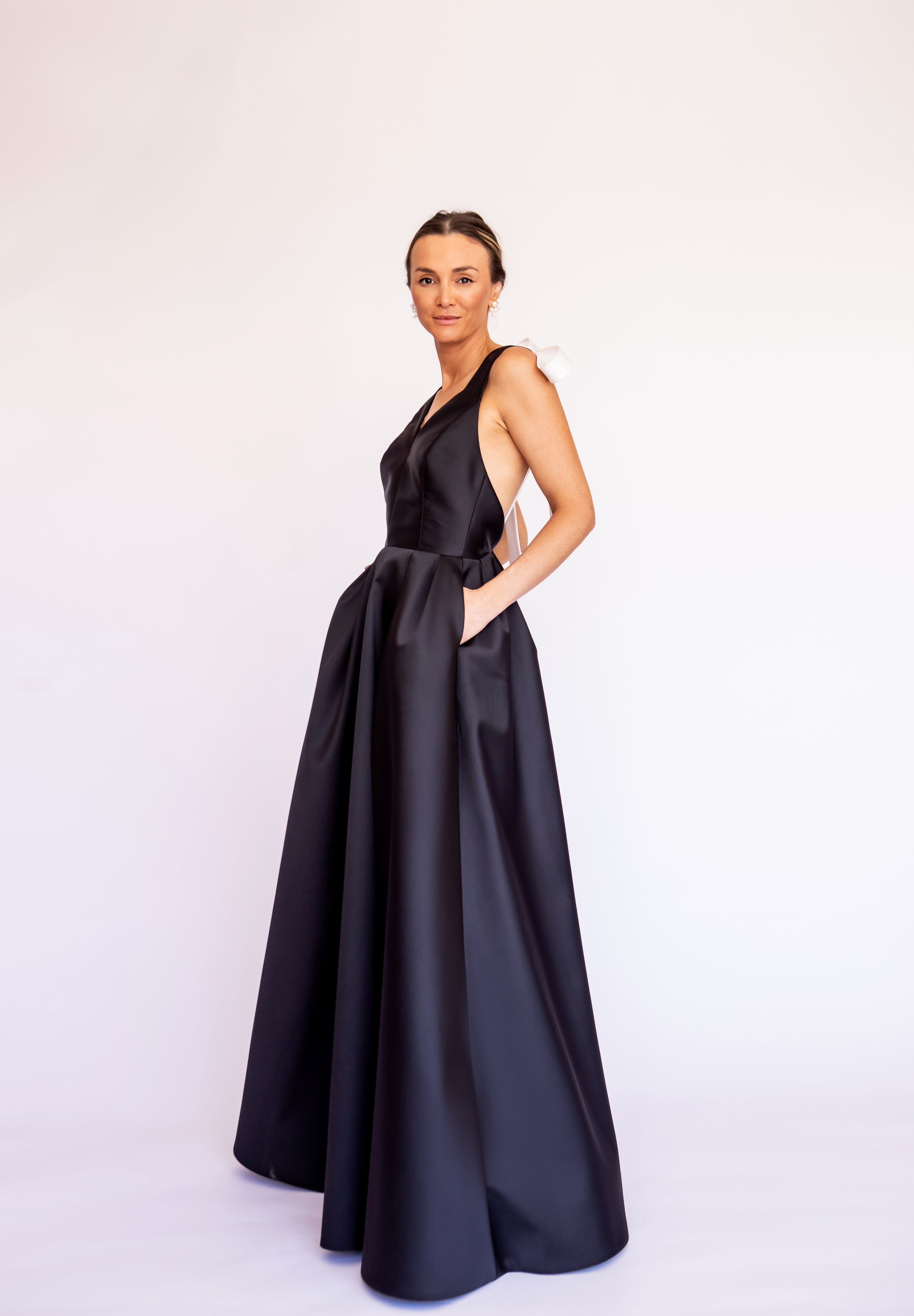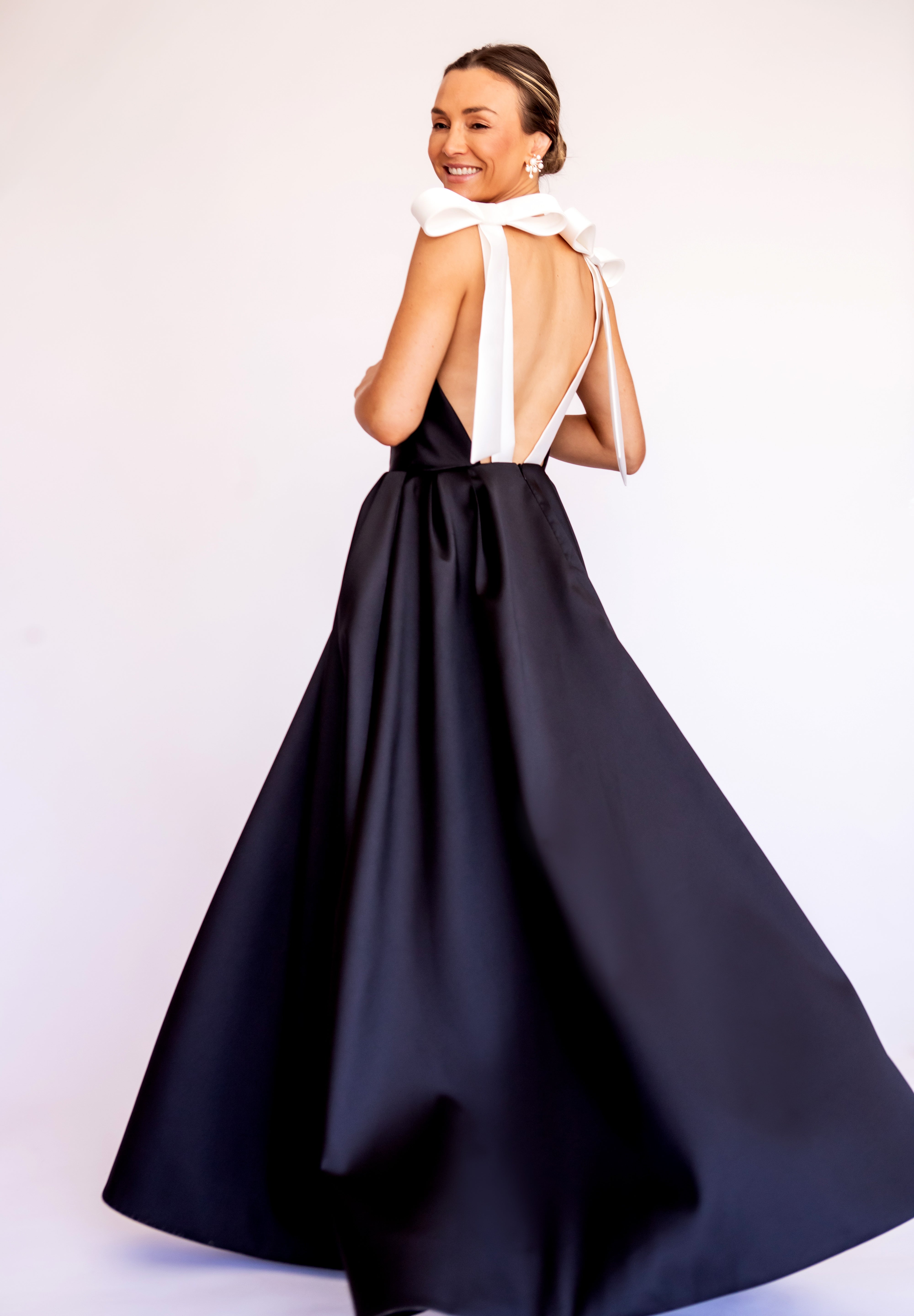 Vestido Longo em Zibeline Bicolor com Laços Imponentes – REF: OD101
