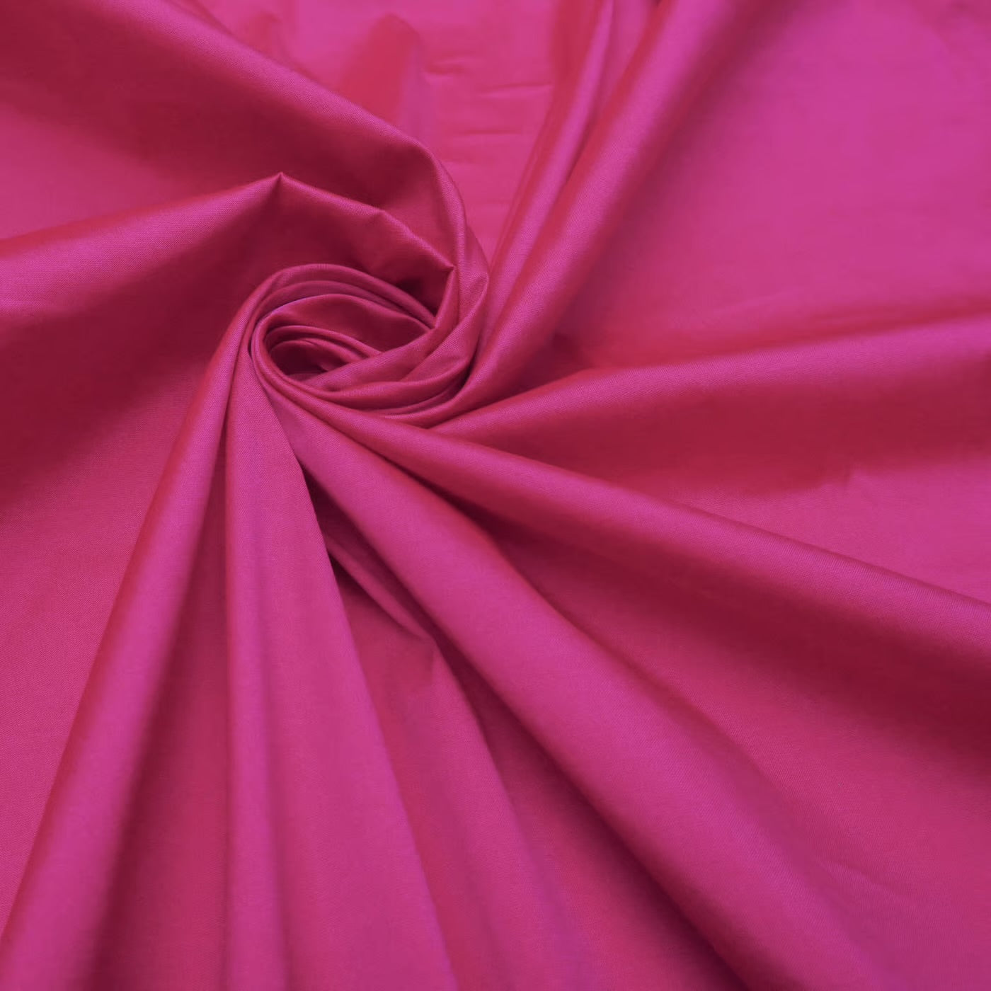 Icônico e sofisticado, o tafetá é um tecido encorpado, com leve brilho e um toque levemente crocante. Seu caimento estruturado permite modelagens dramáticas, como saias amplas e pregas marcadas, enquanto sua leveza garante conforto. Dependendo da iluminação, pode apresentar um efeito de brilho, adicionando um charme extra ao look. Perfeito para quem deseja sofisticação com um toque de requinte. Com uma elegância atemporal, adapta-se a diferentes ocasiões, do coquetel ao grande evento.