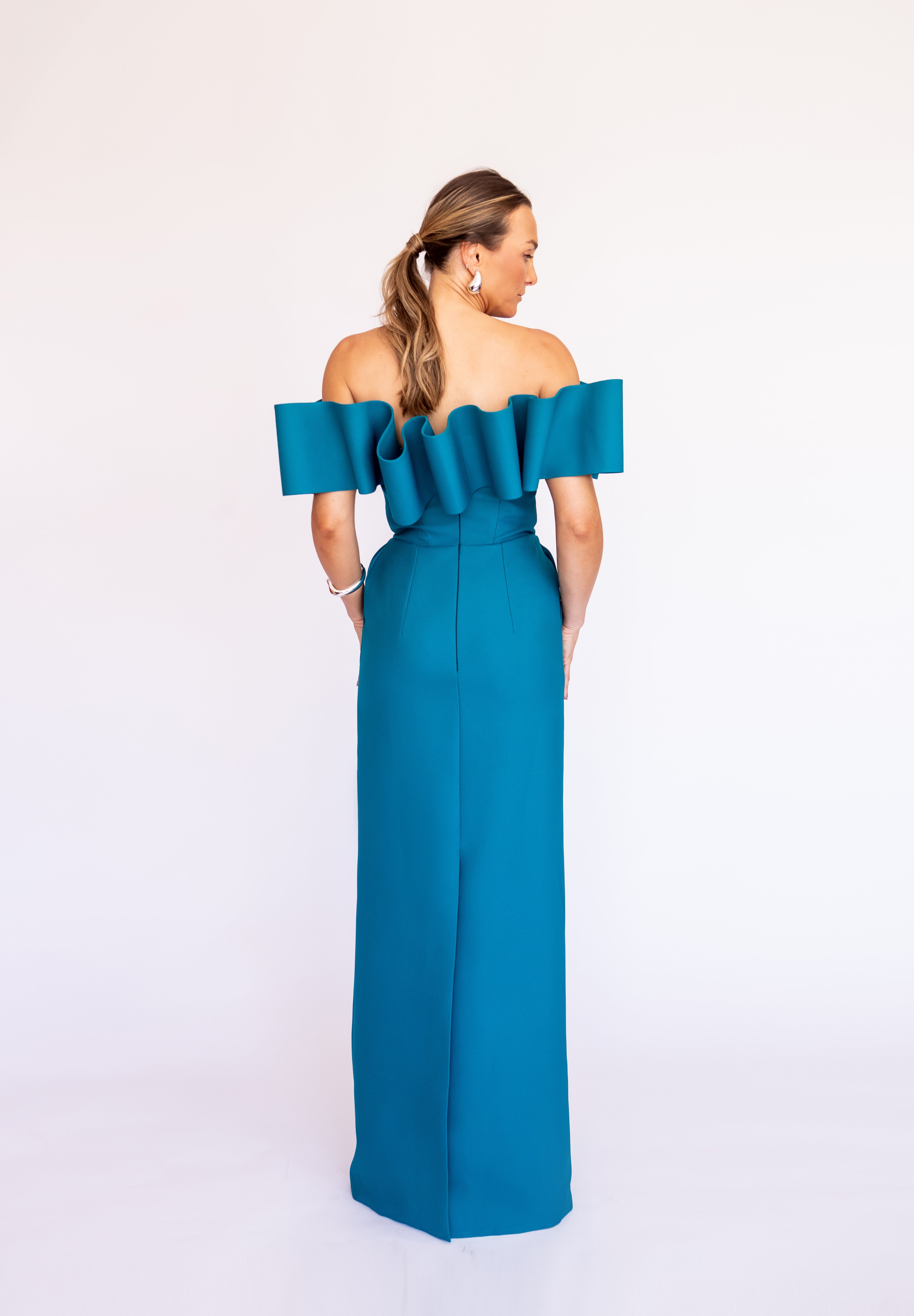 Vestido Longo em Crepe com Ondas Esculturais Removíveis – REF: OD94_LONGO